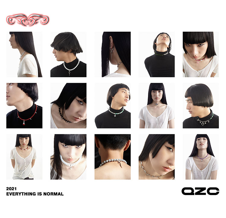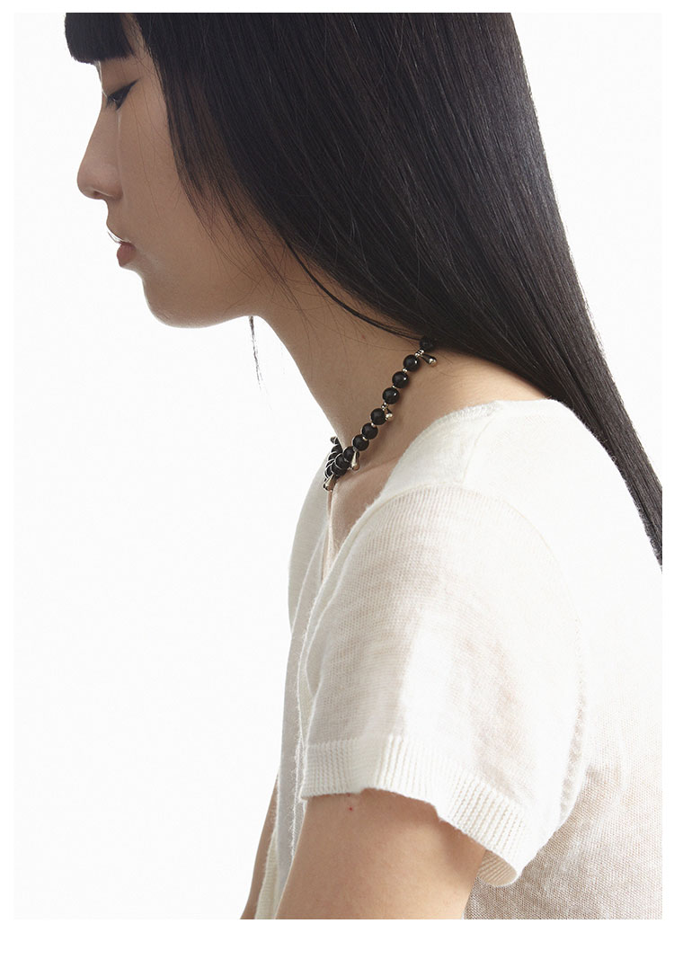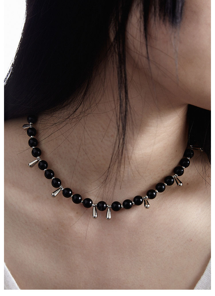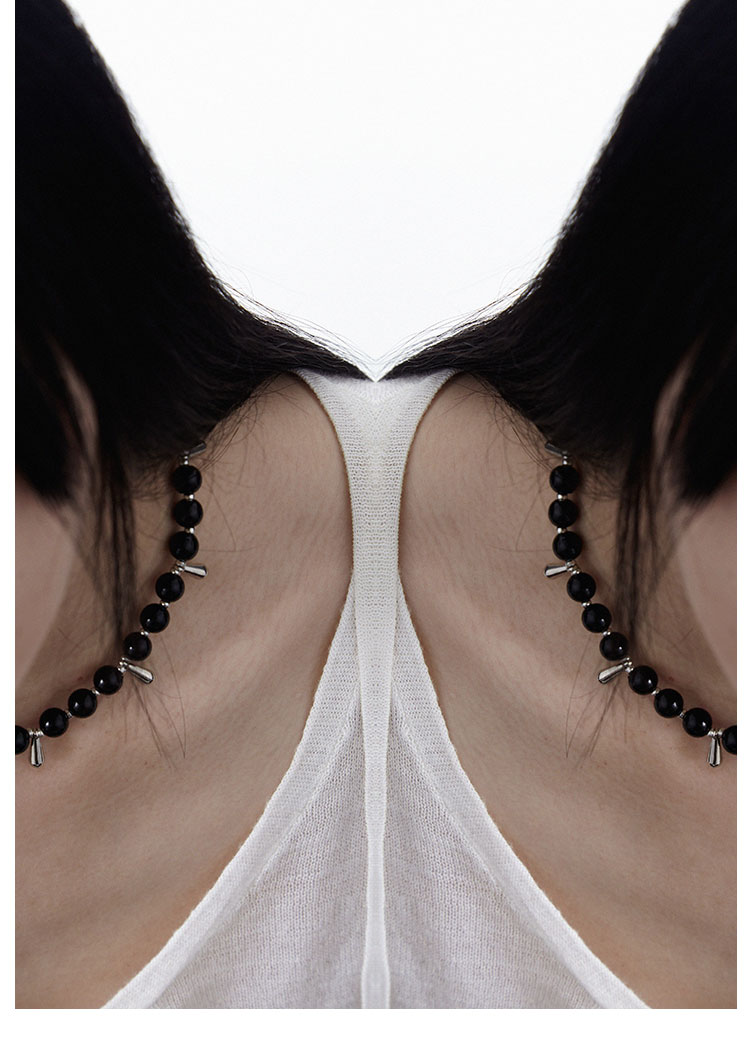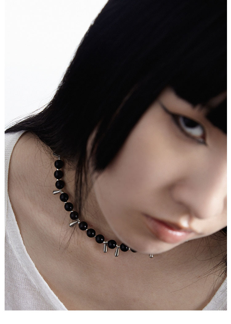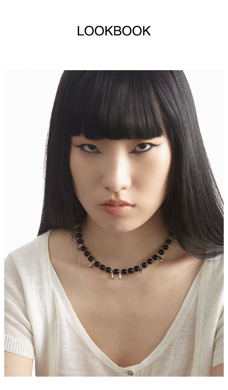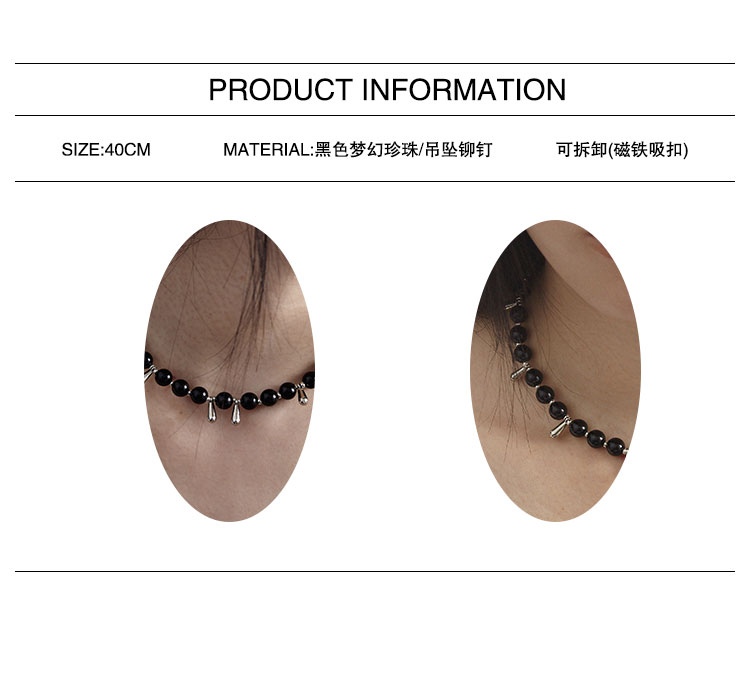 QZC2000 朋克暗黑风梦幻珍珠铆钉吊坠串珠磁铁吸扣项链男女同款