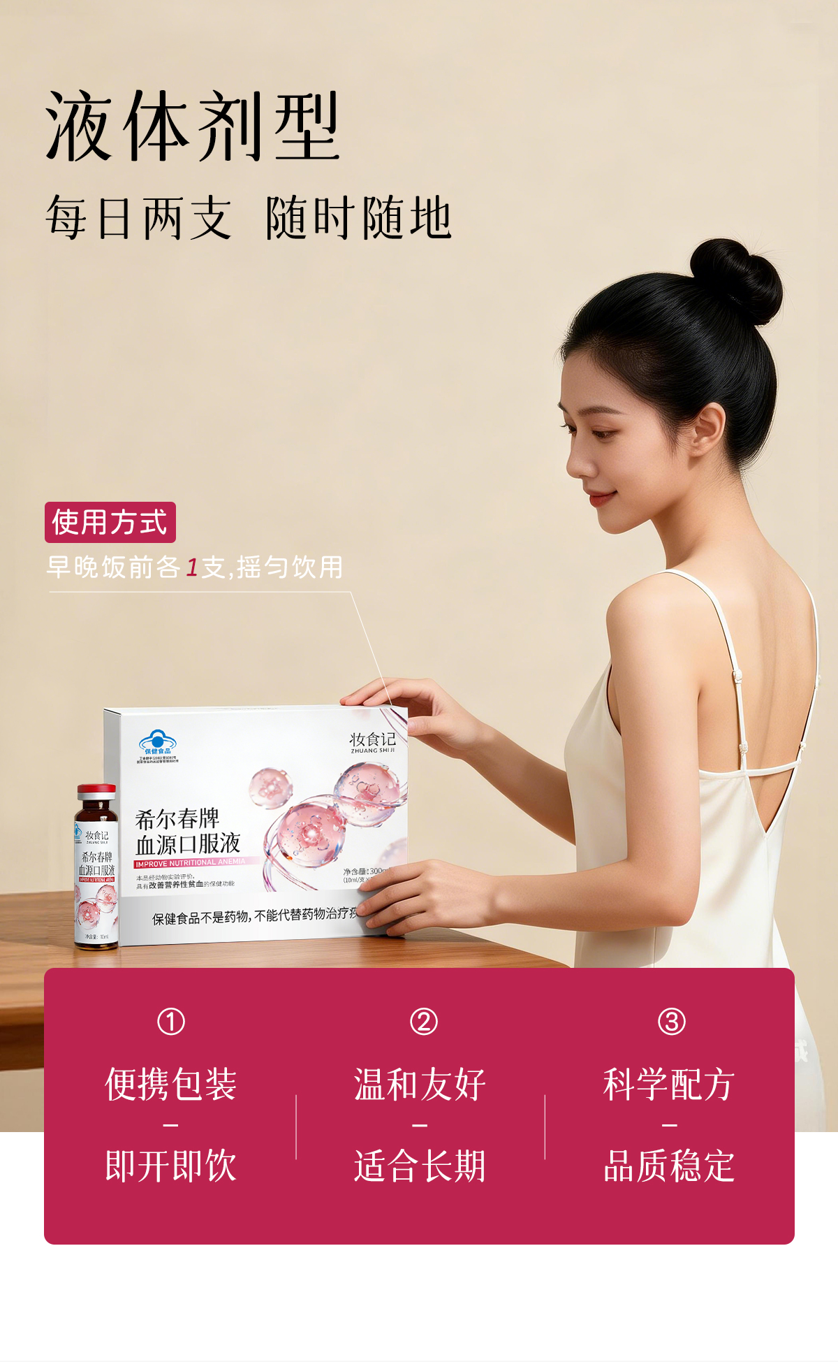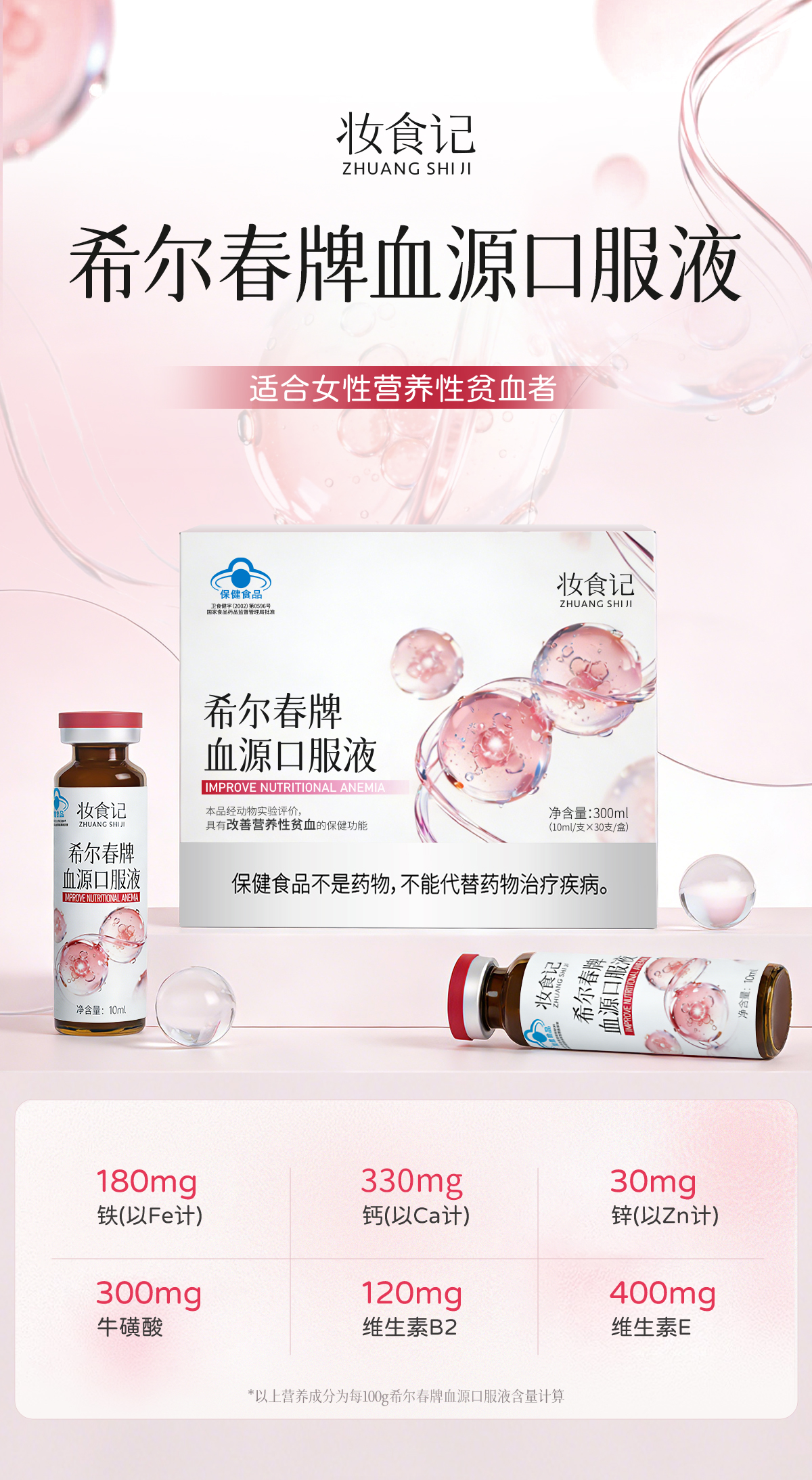 妆食记 希尔春牌血源口服液300ml(10ml*30支)改善营养性贫血