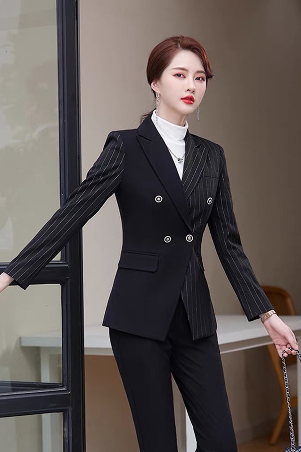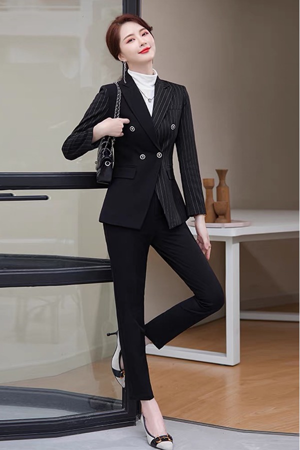 ELLA JADE 雅黑条纹拼接西装套装 14664