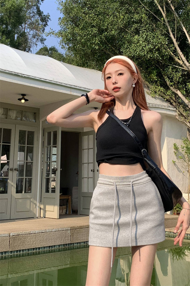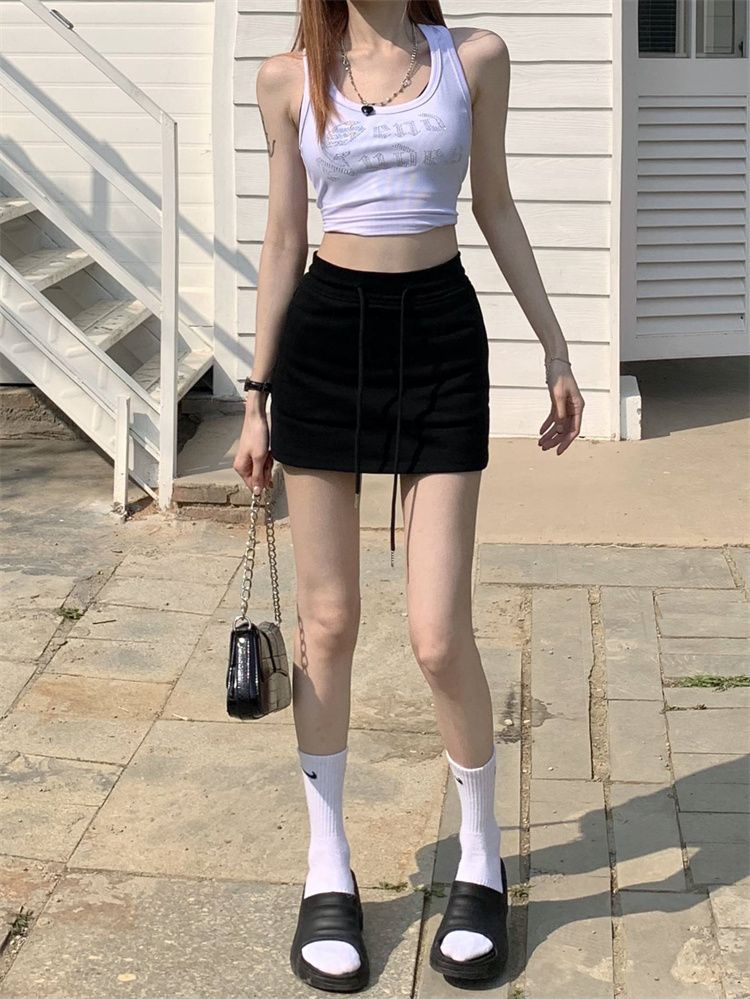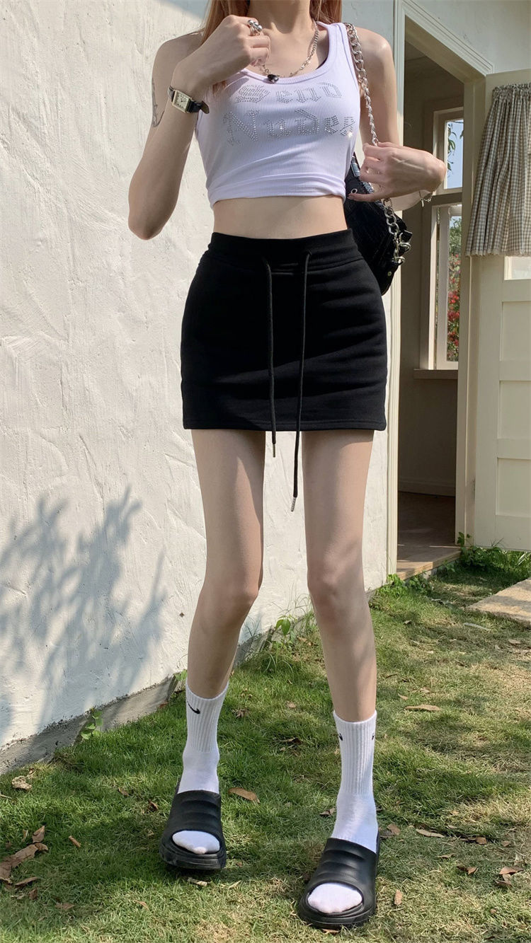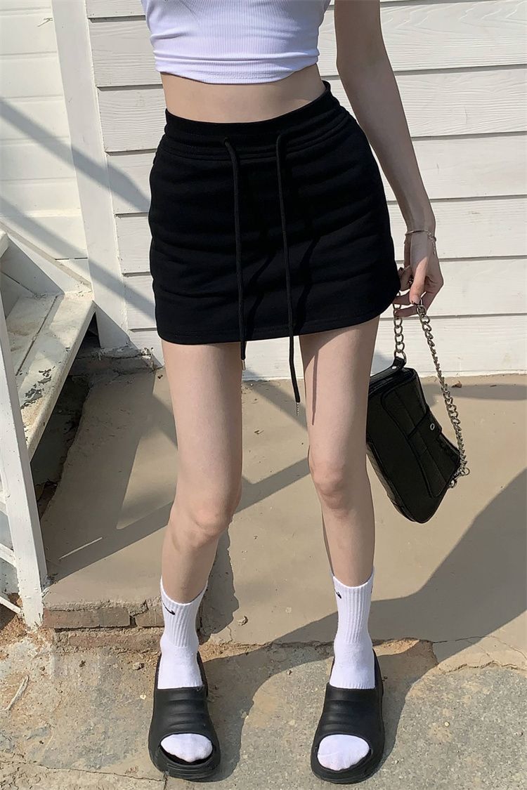 【百搭显瘦!纯色半身裙女】高腰+抽绳,显苗条又舒适;A字裙摆,既轻盈又凸显腿部线条;松紧短裙卫裤,让你随性又利落!