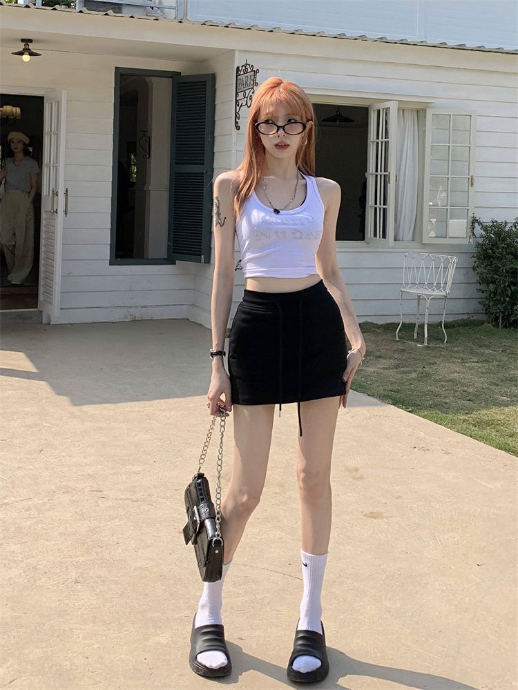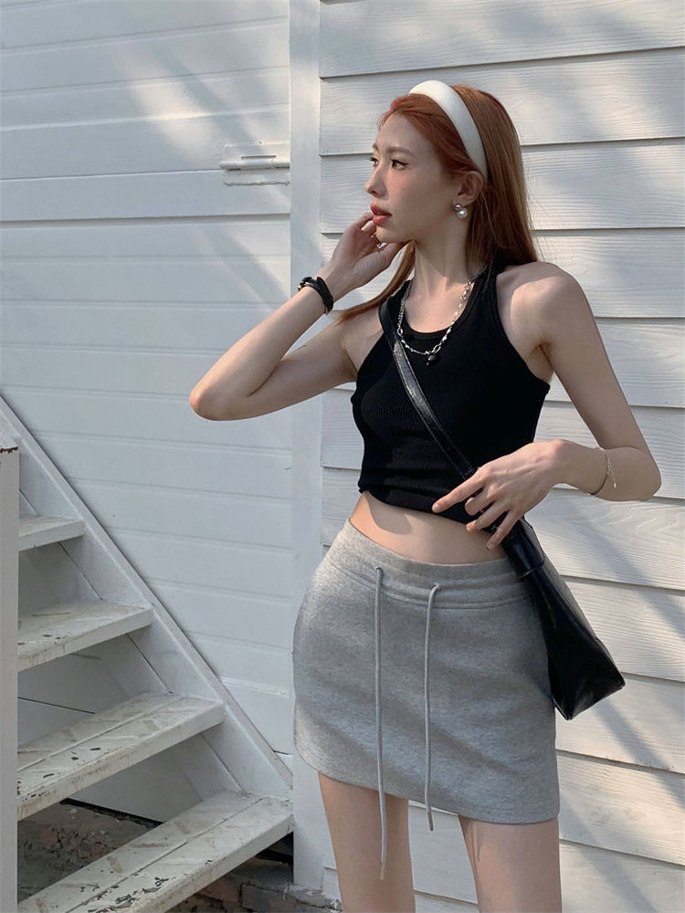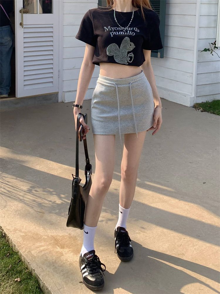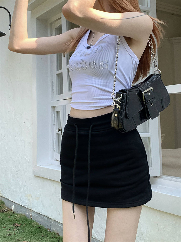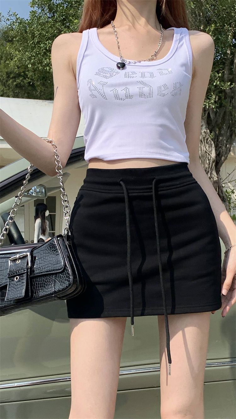 【百搭显瘦!纯色半身裙女】高腰+抽绳,显苗条又舒适;A字裙摆,既轻盈又凸显腿部线条;松紧短裙卫裤,让你随性又利落!