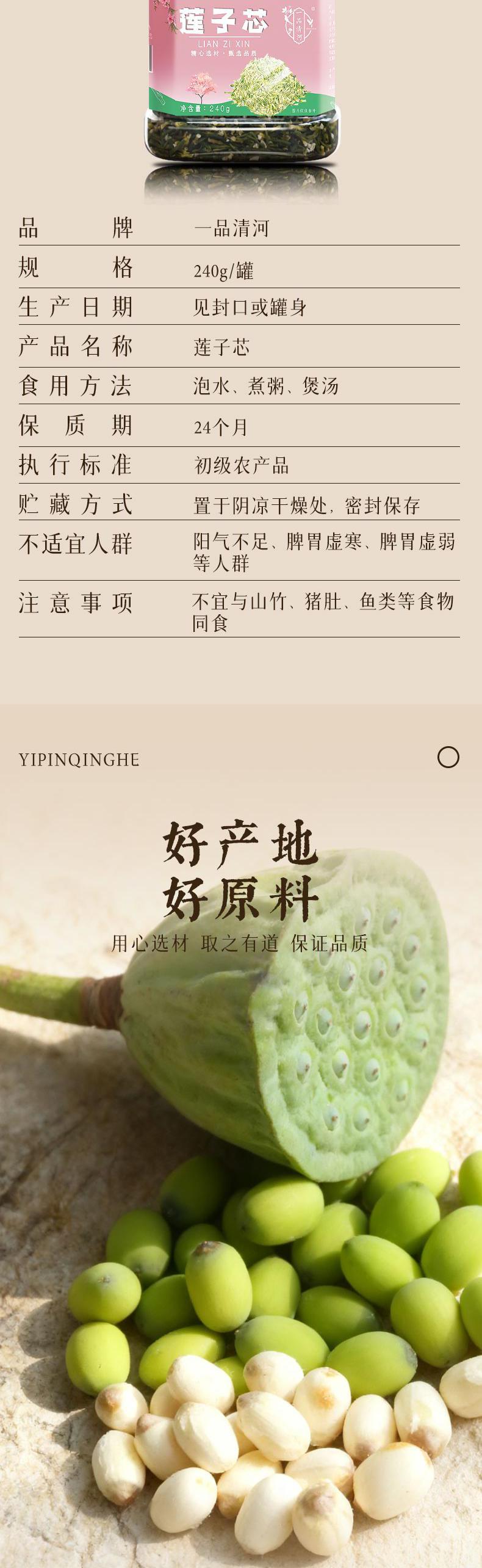 【自营】一品清河 莲子芯240g多巴胺罐装莲心去芯莲子湘莲 YPQHLZX240G