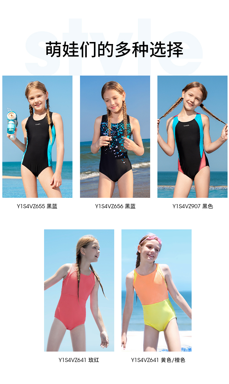 骆驼儿童泳衣女童温泉泳装小女孩连体游泳衣公主中大童宝宝紧身衣Y1S4VZ656