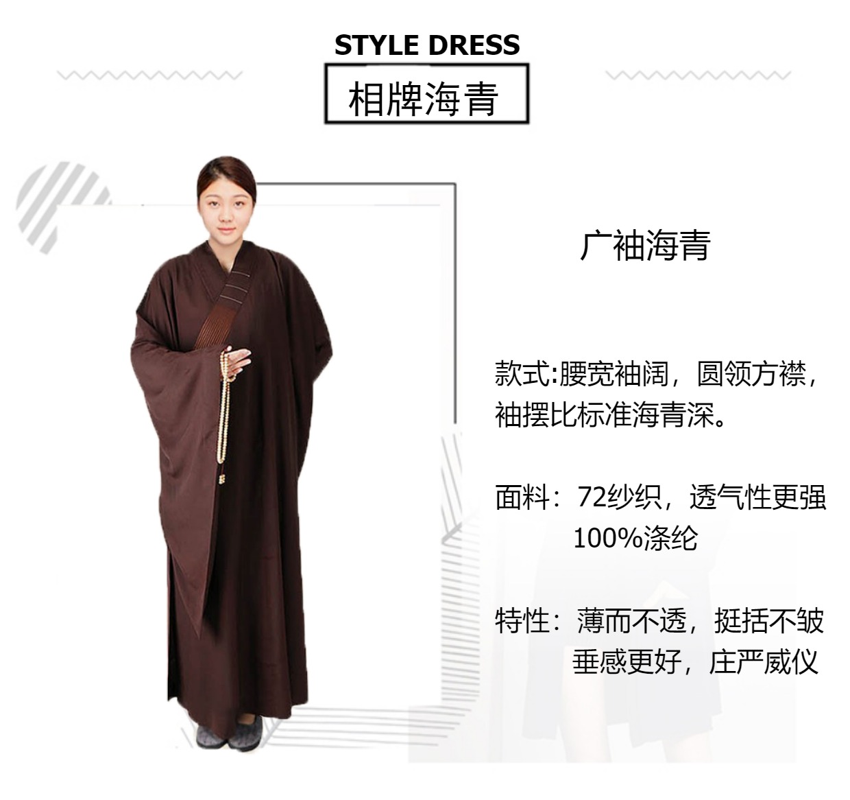【相牌】广袖海青居士服女男同款 诵经法会海清僧服 送海青袋
