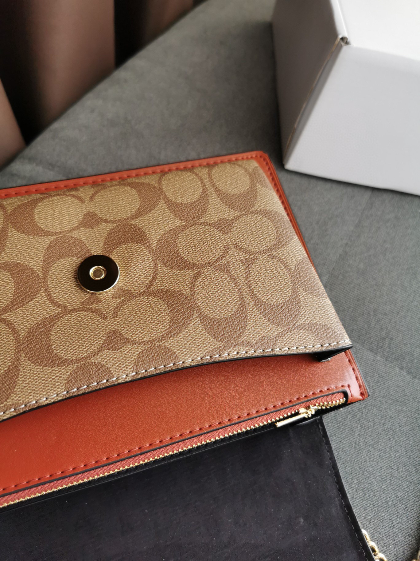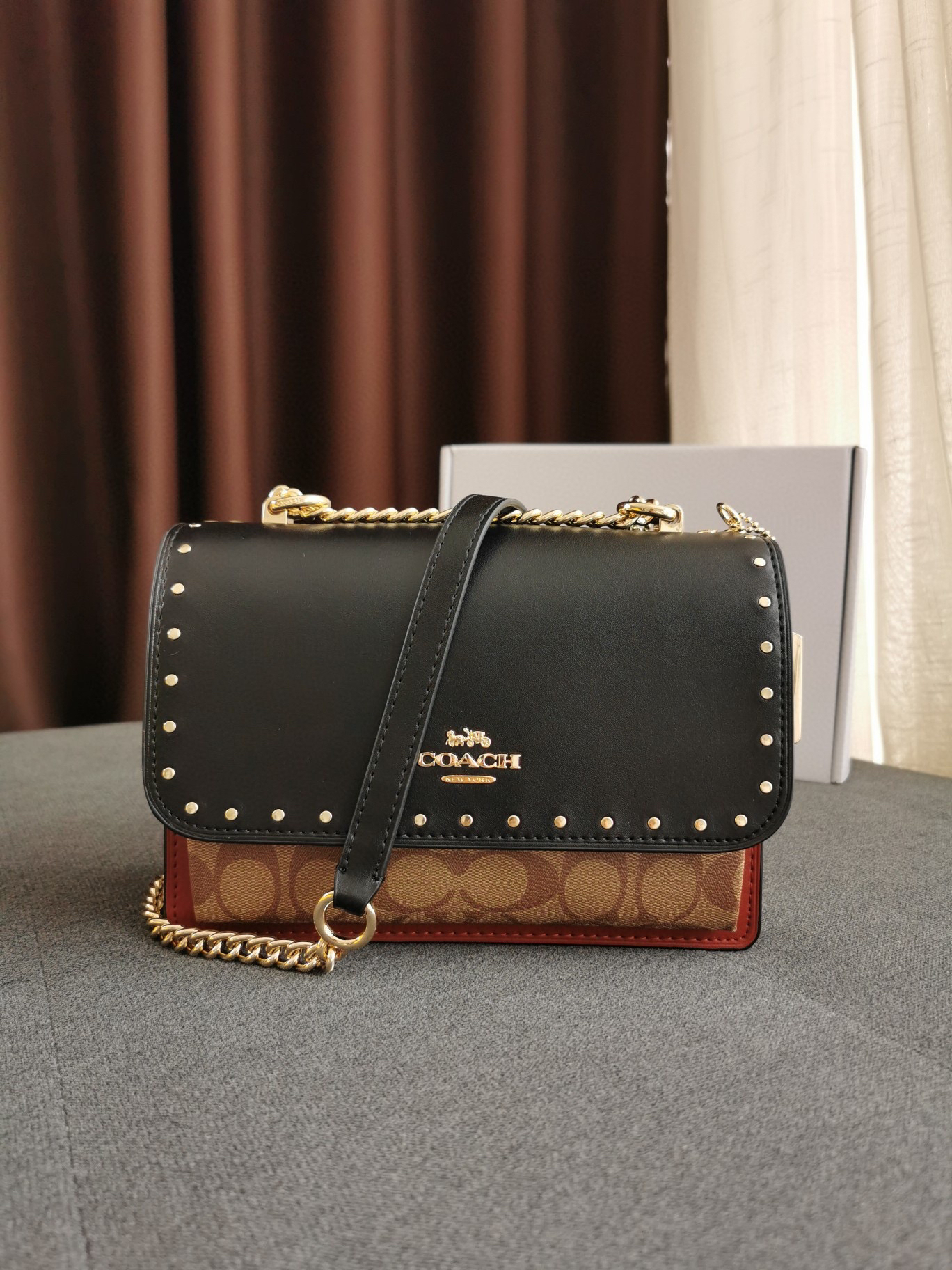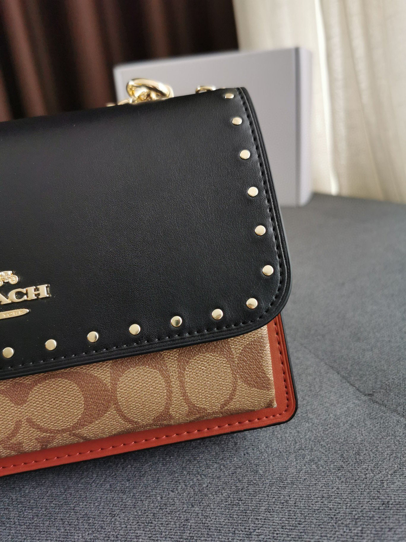 细节实拍/黑棕配色Coach Klare风琴包
