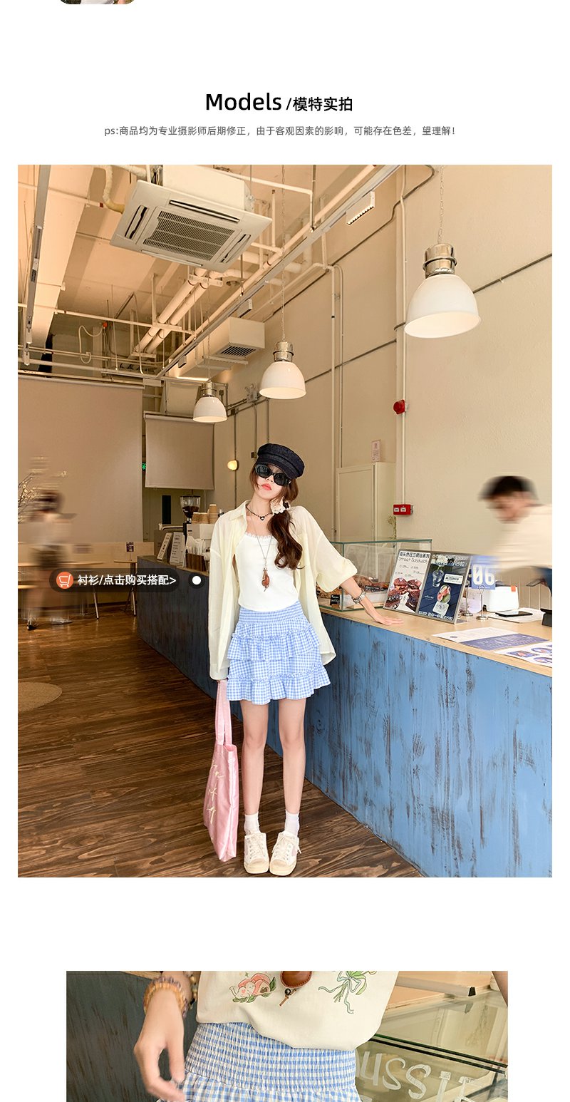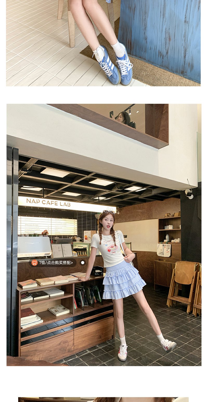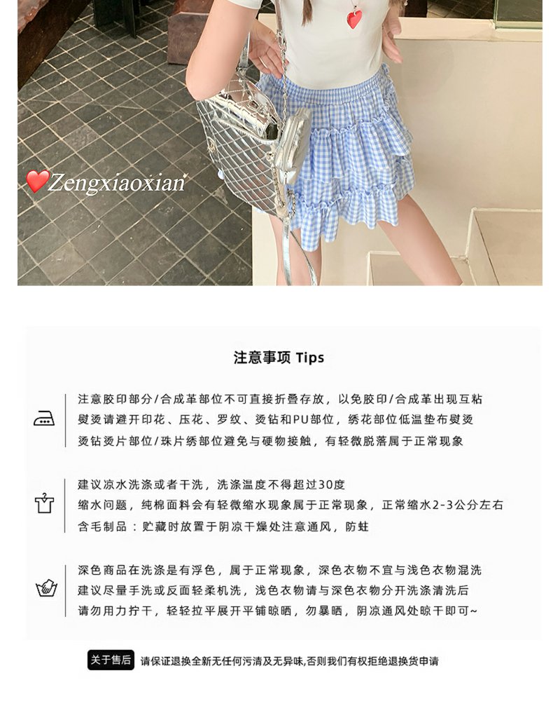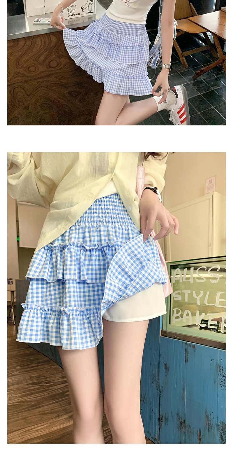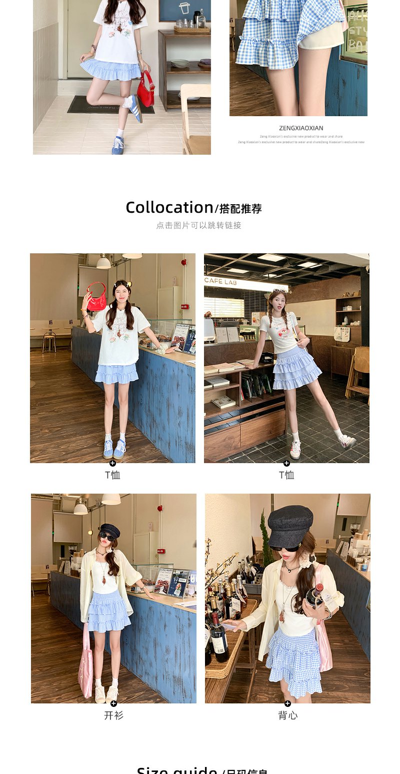 <曾小咸推荐>韩系甜美蓝格高腰显瘦蛋糕裙A字半身裙