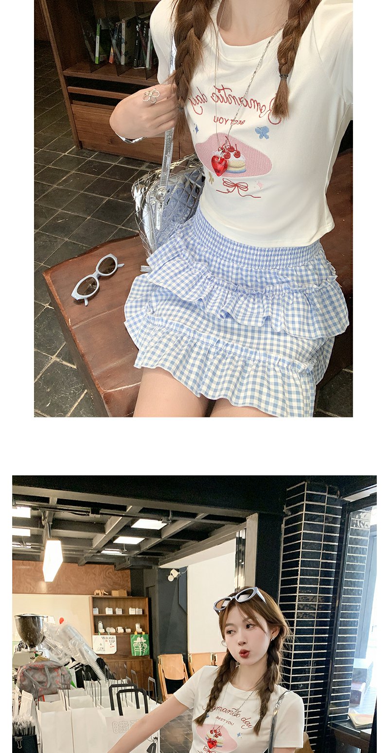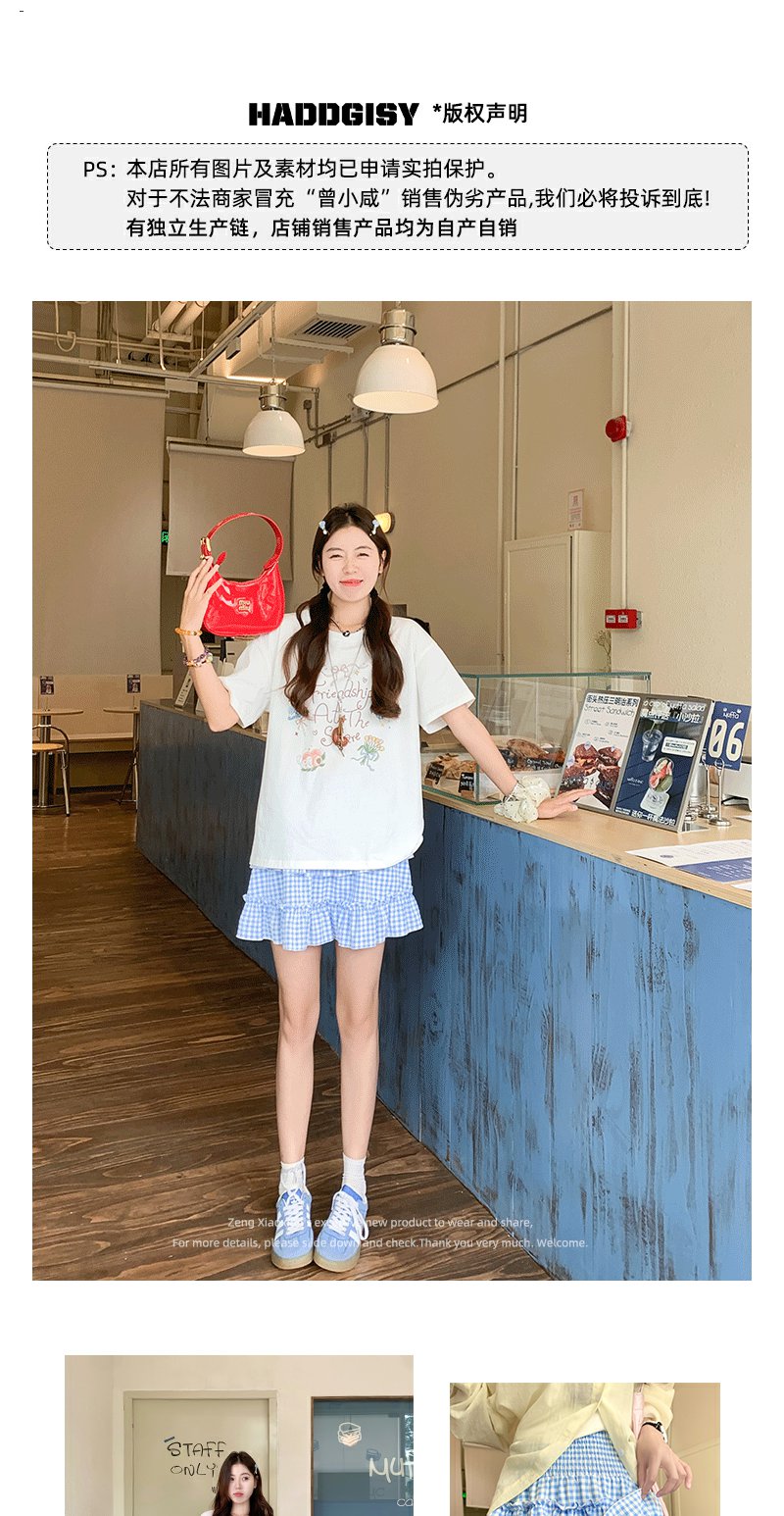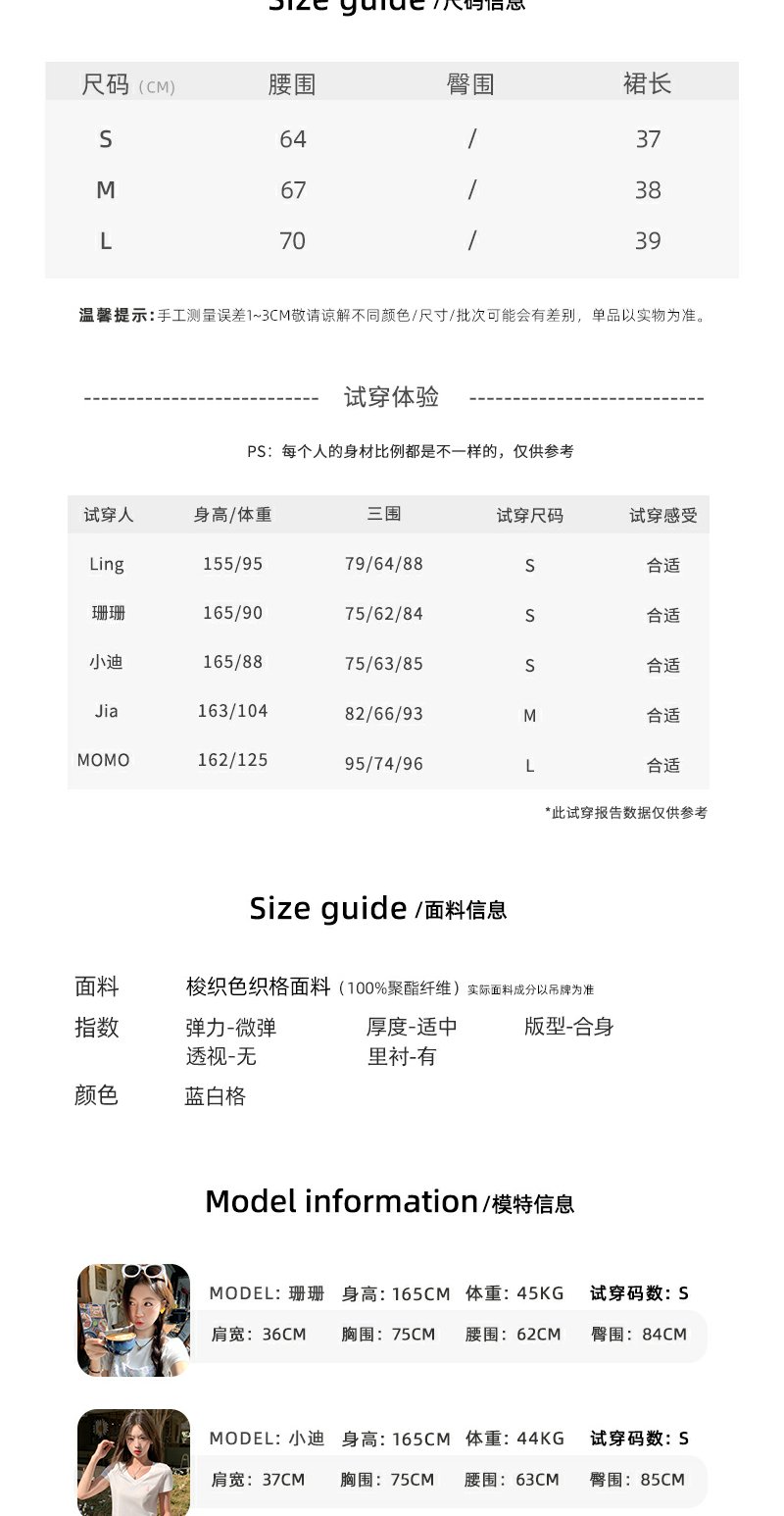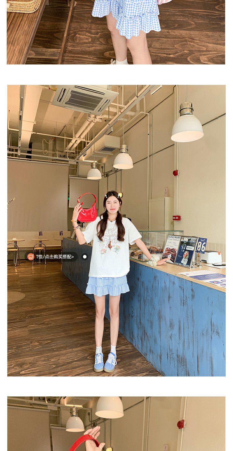 <曾小咸推荐>韩系甜美蓝格高腰显瘦蛋糕裙A字半身裙