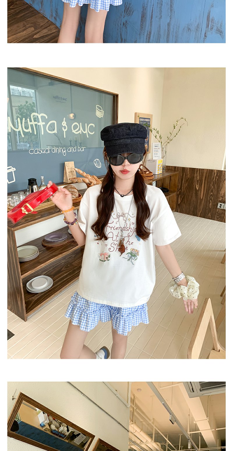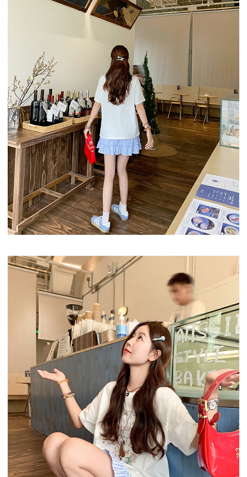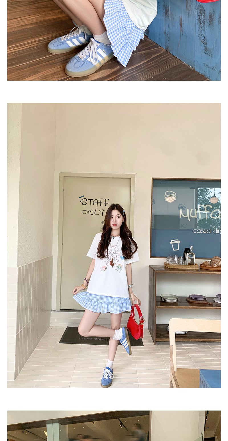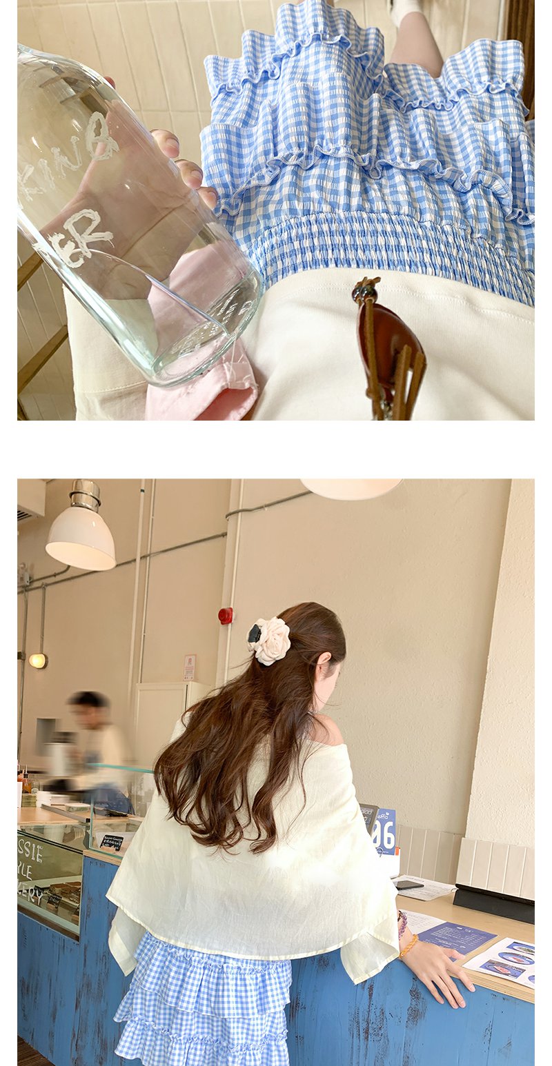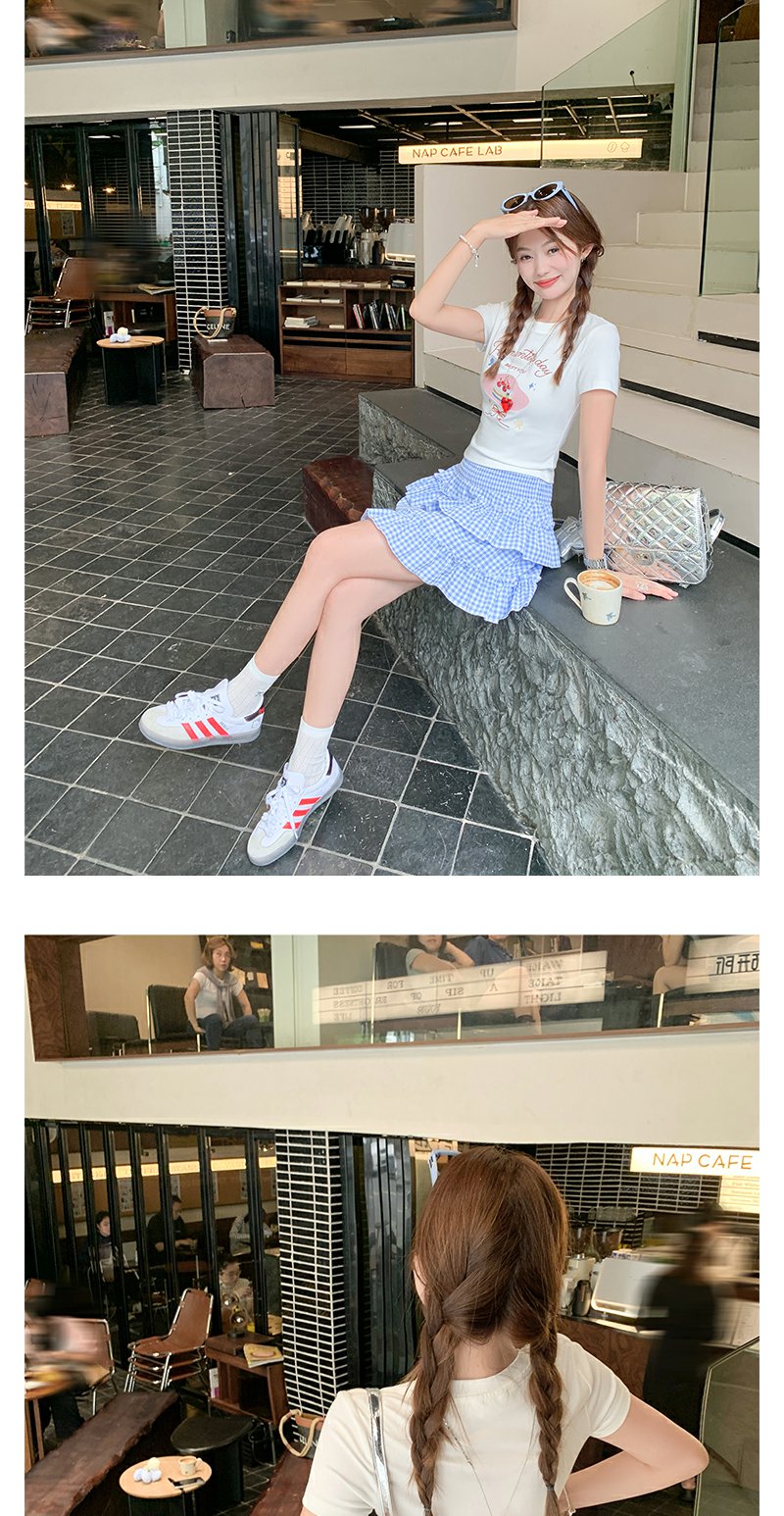 <曾小咸推荐>韩系甜美蓝格高腰显瘦蛋糕裙A字半身裙