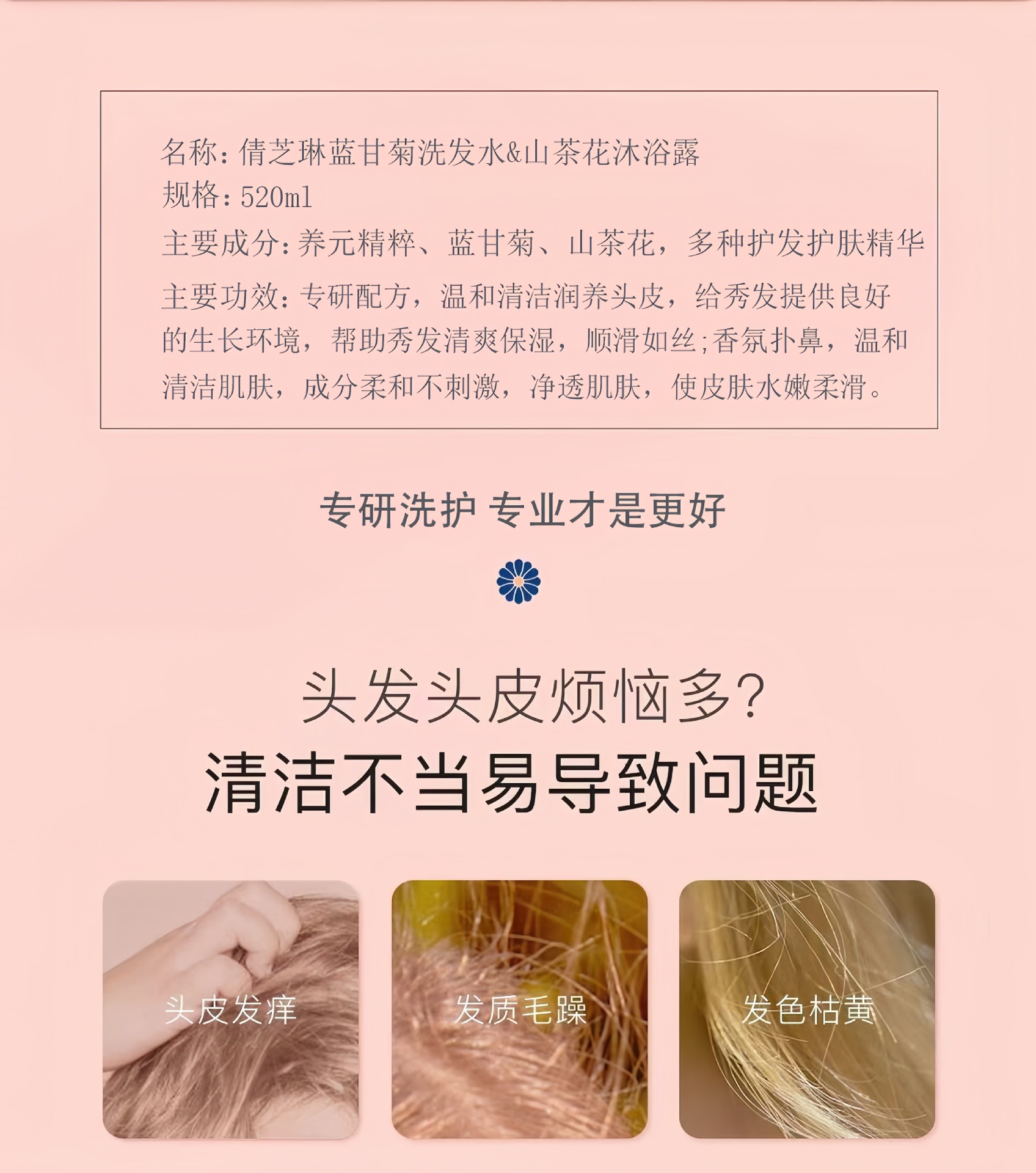【速抢!拍1发2!蓝甘菊×山茶花香氛CP🔥】温和养护+深层清洁&山茶花沐浴露,520ml大容量买1送1,给肌肤和秀发双重宠爱💙🌸
