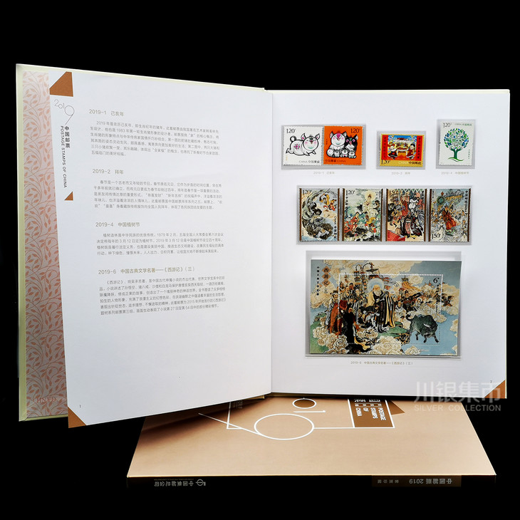 年册包括2019年所有发行过的邮票和小型张,还包含了特别发行的生肖猪赠送版和小本票。