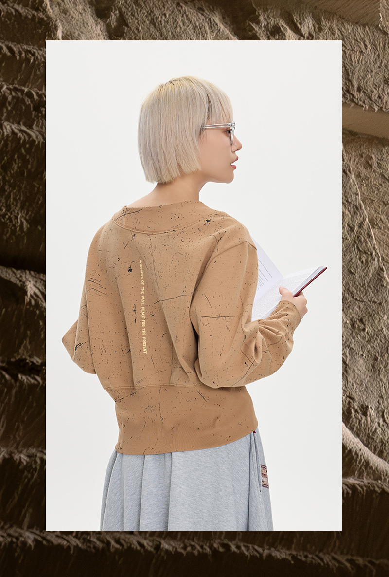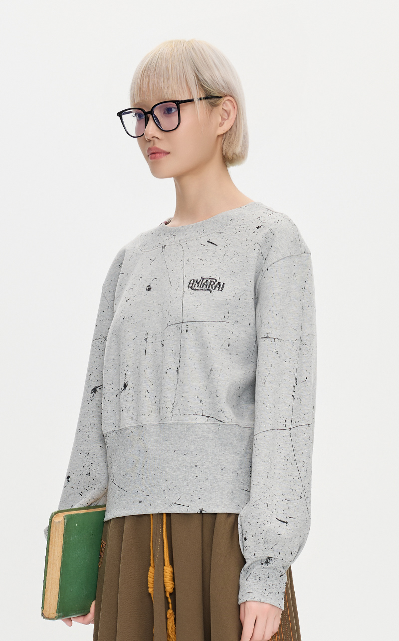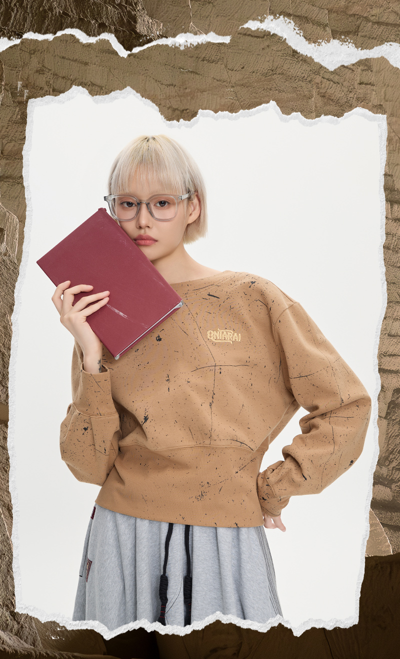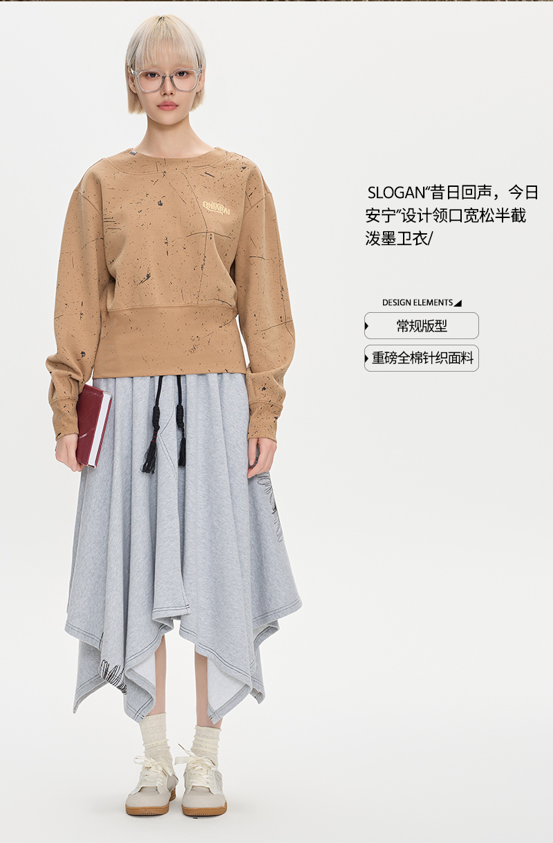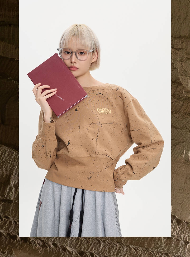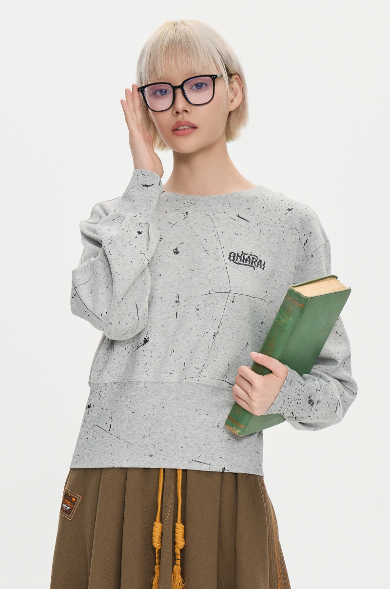 ONIARAI/鬼洗25秋冬黑标新品领口宽松半截卫衣女 A240015