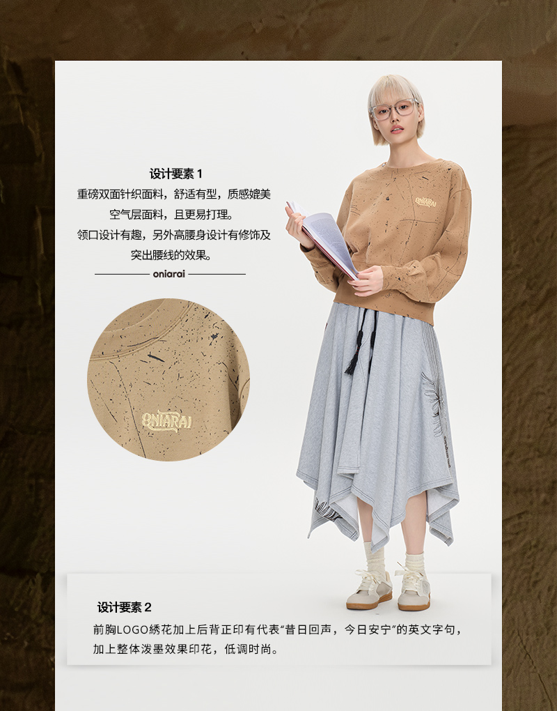 - ONIARAI品牌以鬼洗、地藏小王、日本蓝三个系列组成,鬼洗拥有独特的品牌文化图腾、夸张的图案设计、个性化的搭配,表达出潮人自我格调,制造话题、创造独特个性与生活态度。