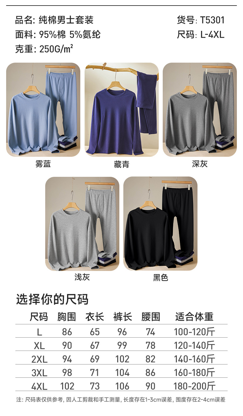 男女纯棉磨毛保暖套装