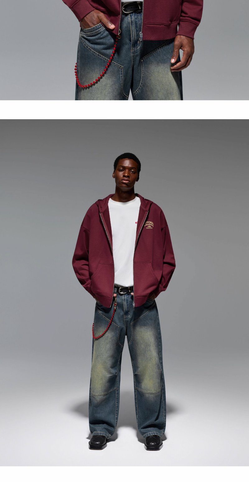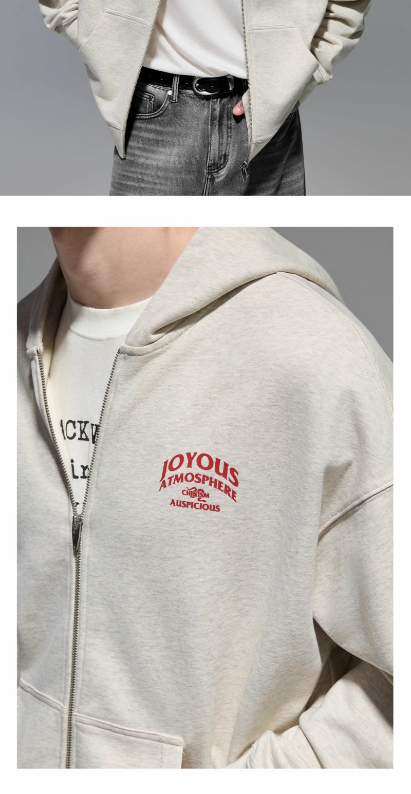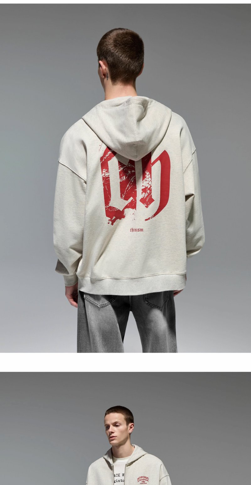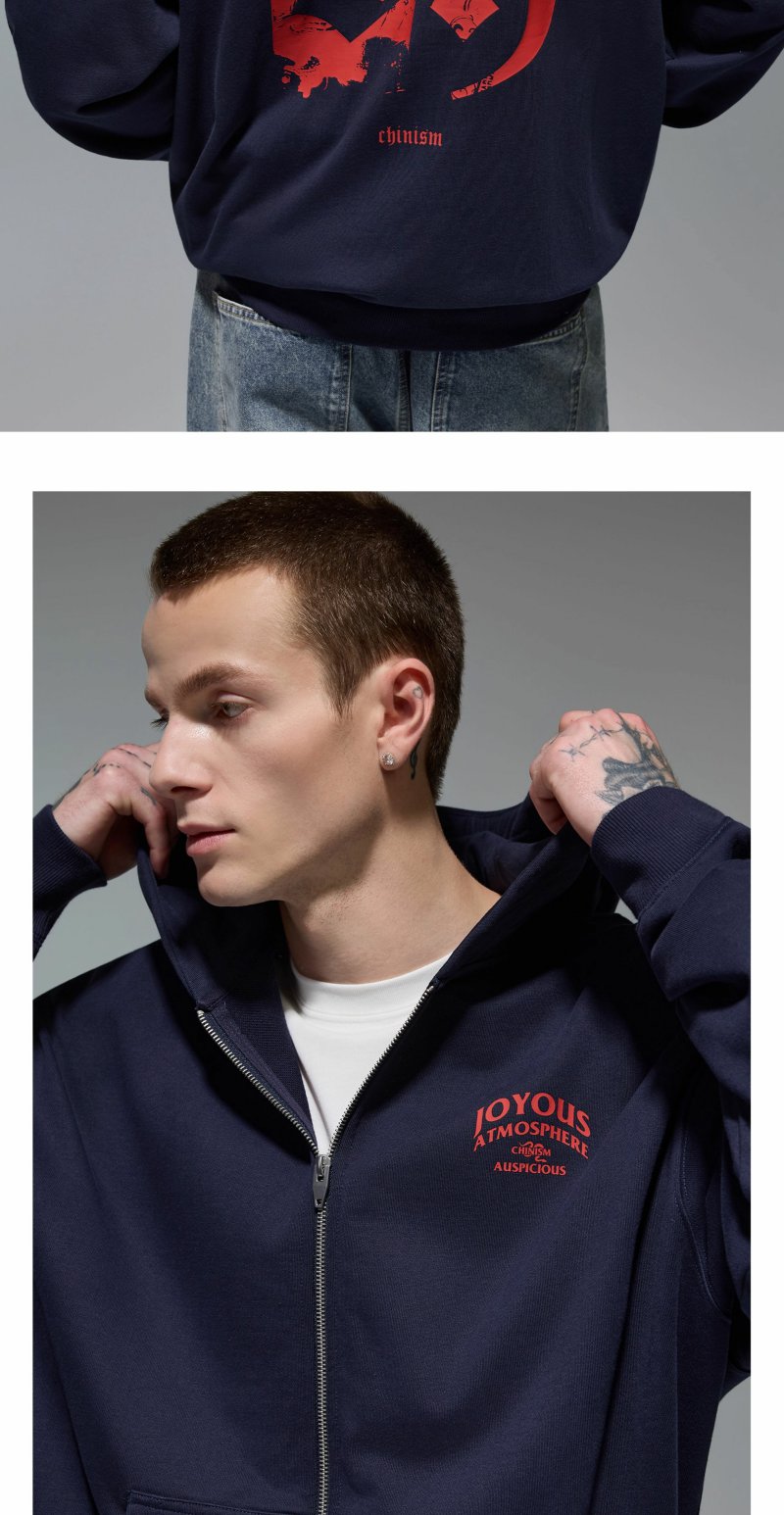 CHINISM赤尘 美式重磅连帽开衫卫衣男秋季纯棉潮流宽松拉链外套