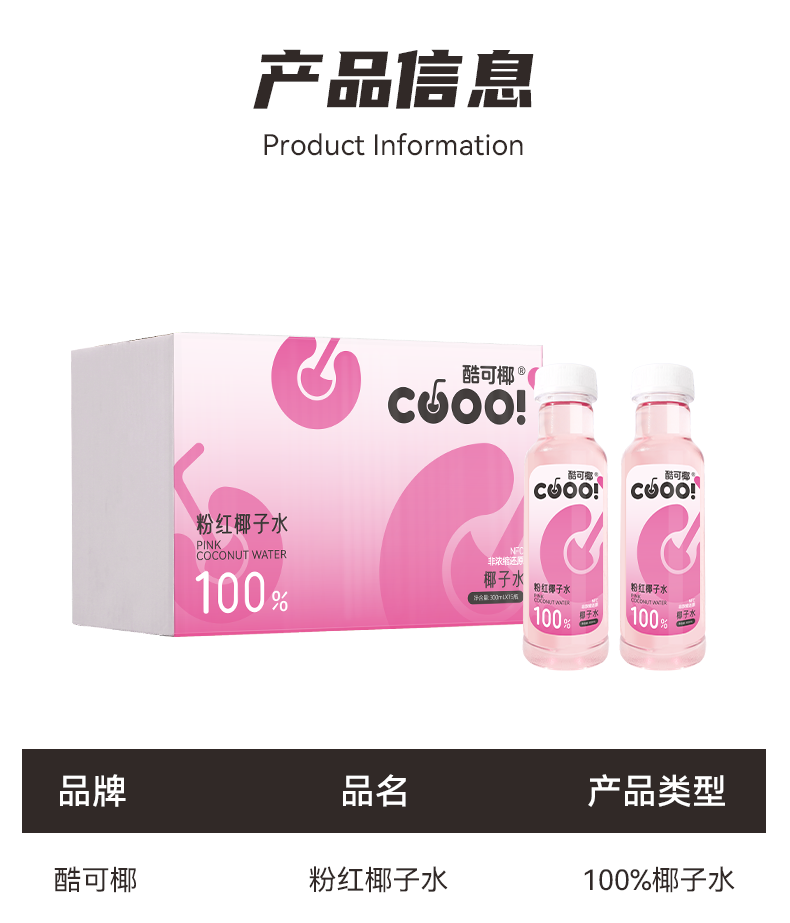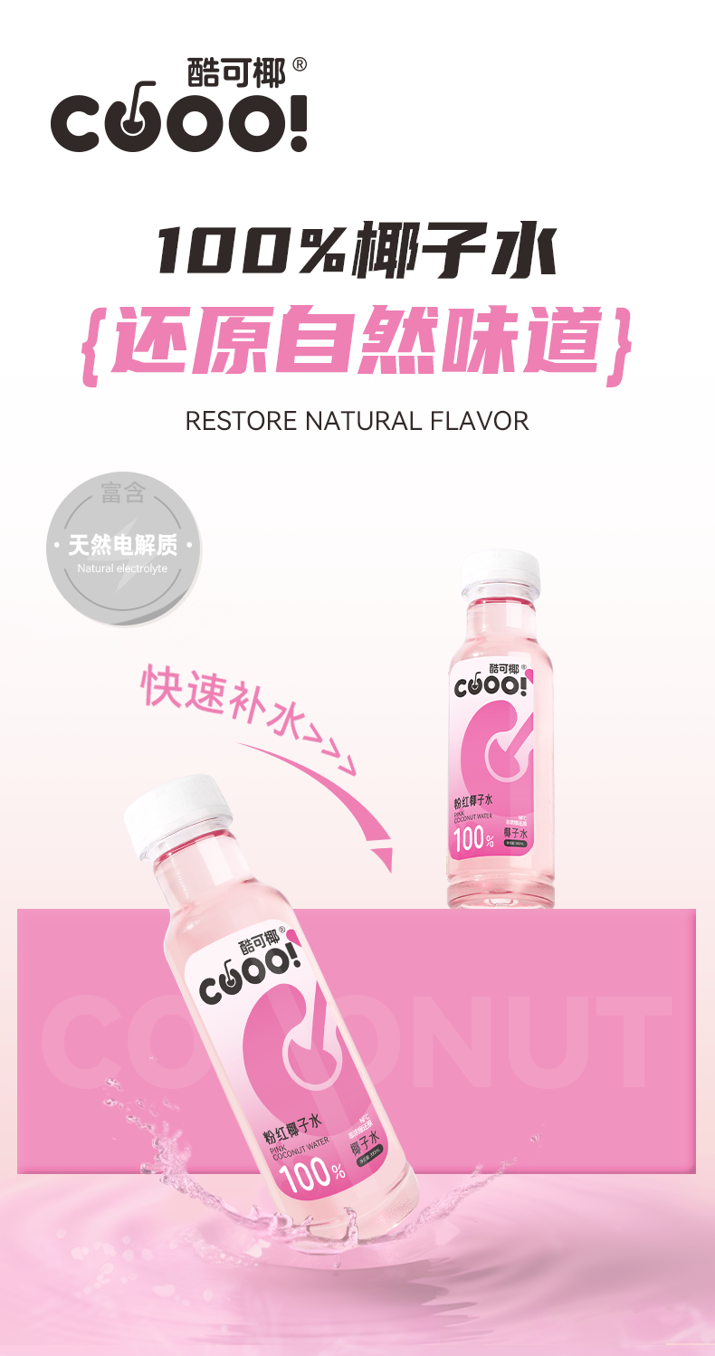 【酷可椰】粉红椰子水(瓶装)300ml(8瓶装/15瓶装可选)