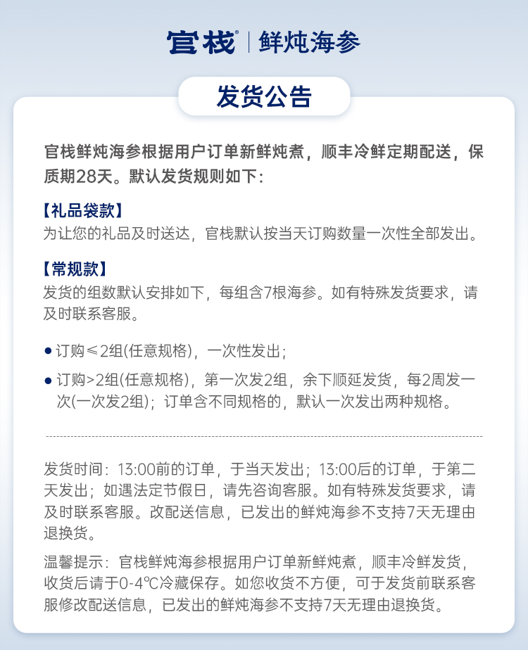 【限时特惠】季套餐-官栈鲜炖海参即食大连海参辽参滋补 顺丰包邮