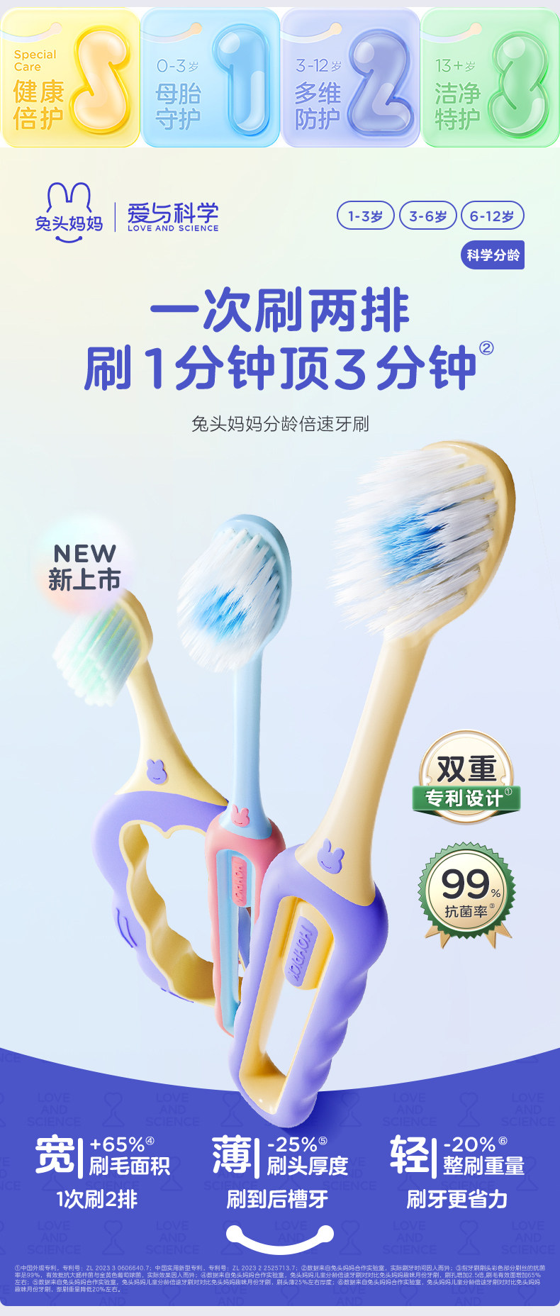 兔头妈妈儿童分龄深度清洁牙刷3-6岁