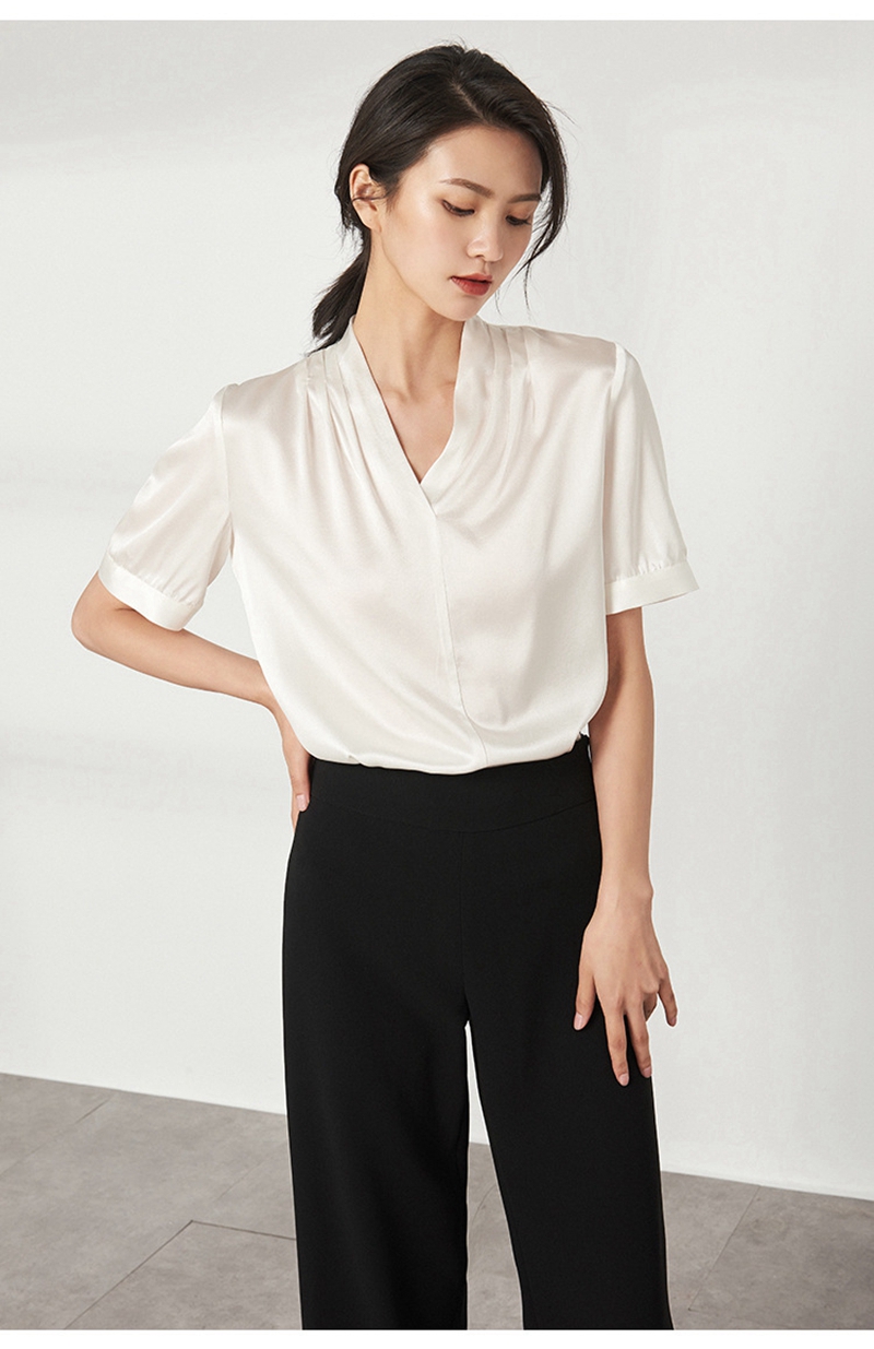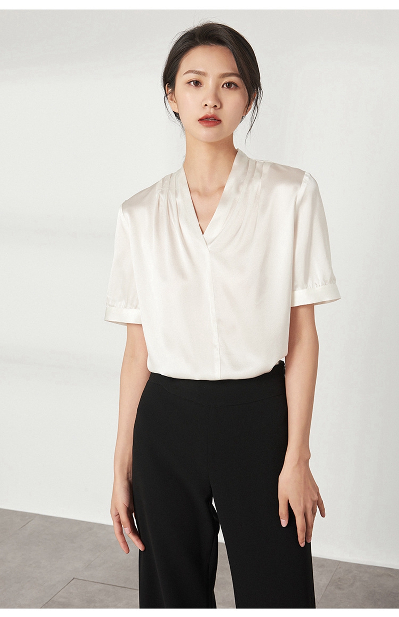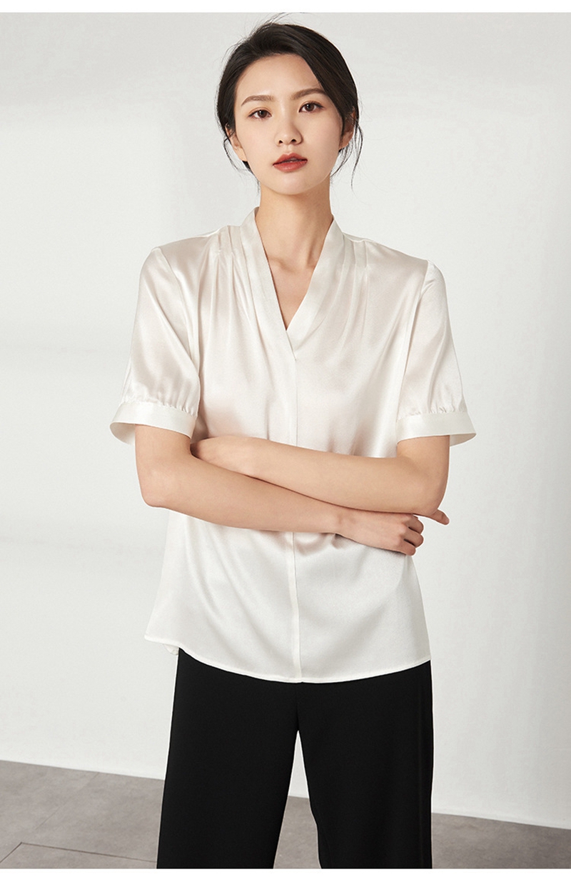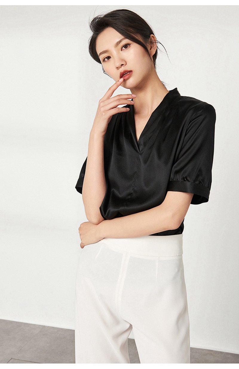 重磅真丝V领短袖套头上衣
