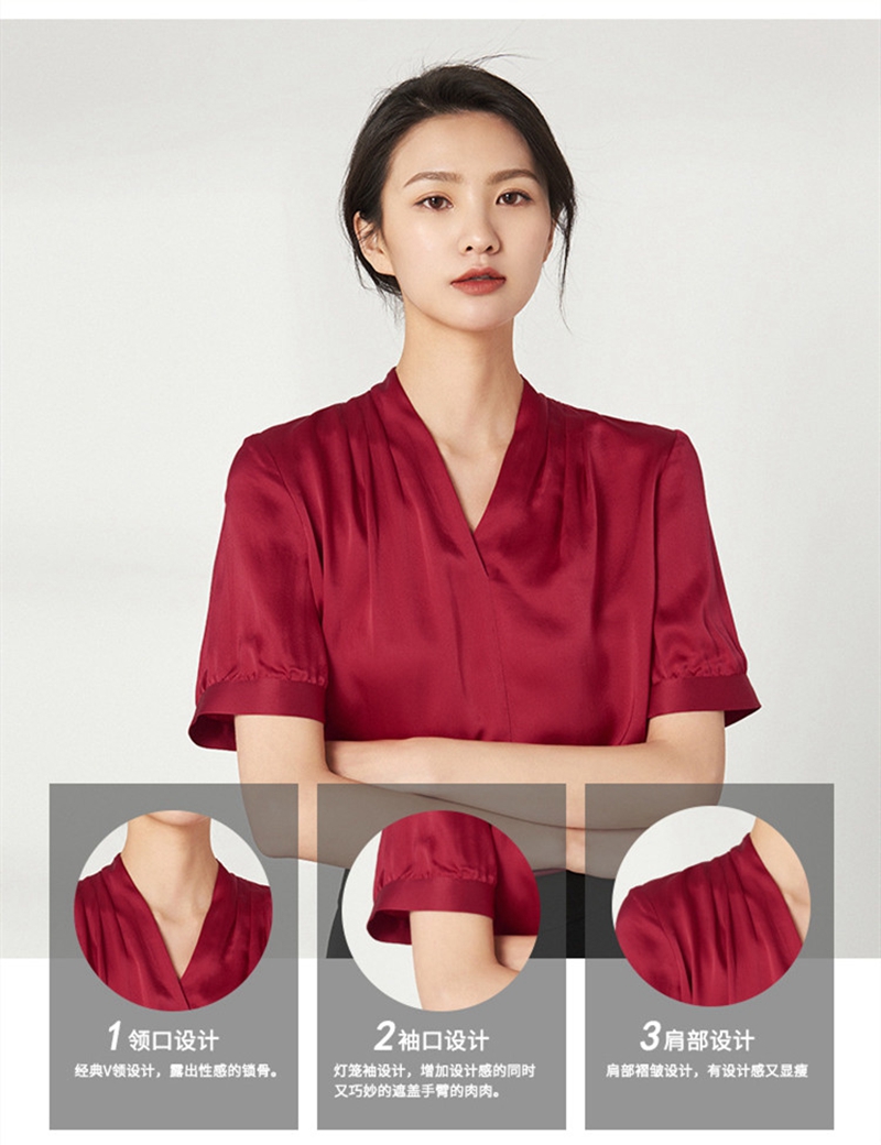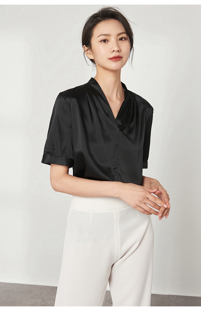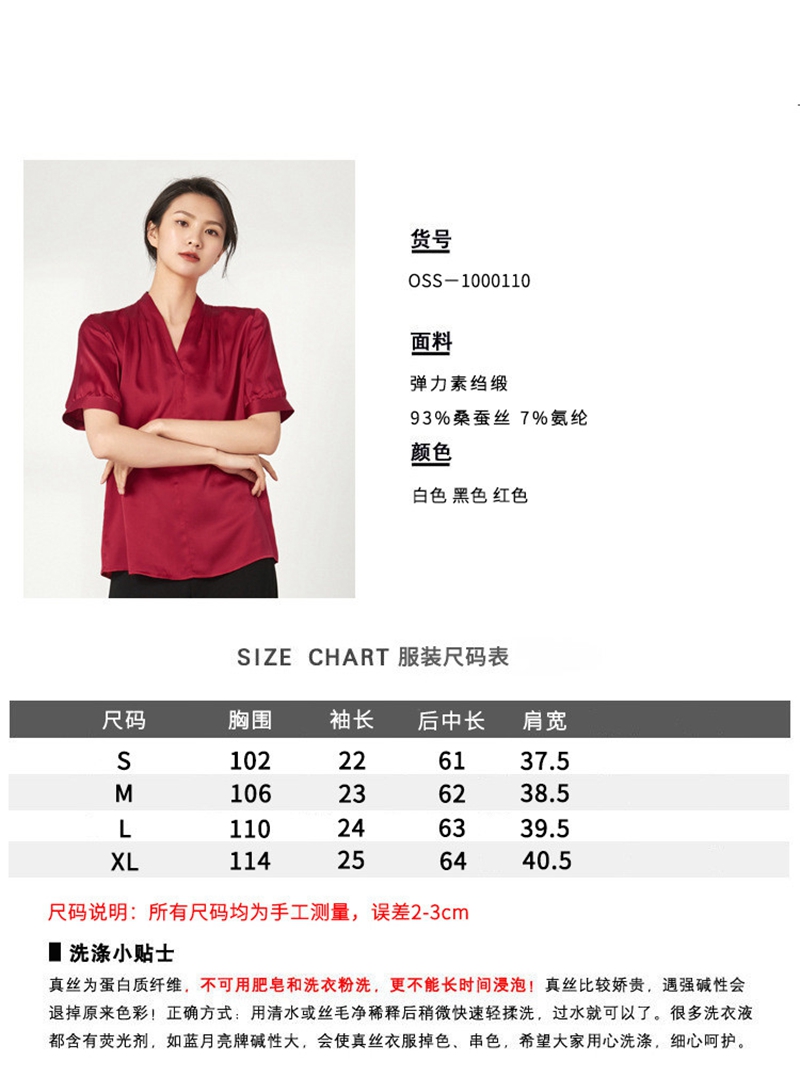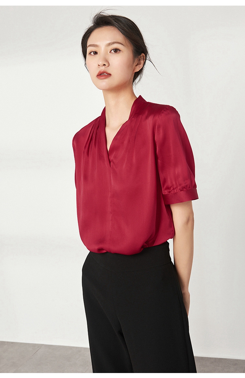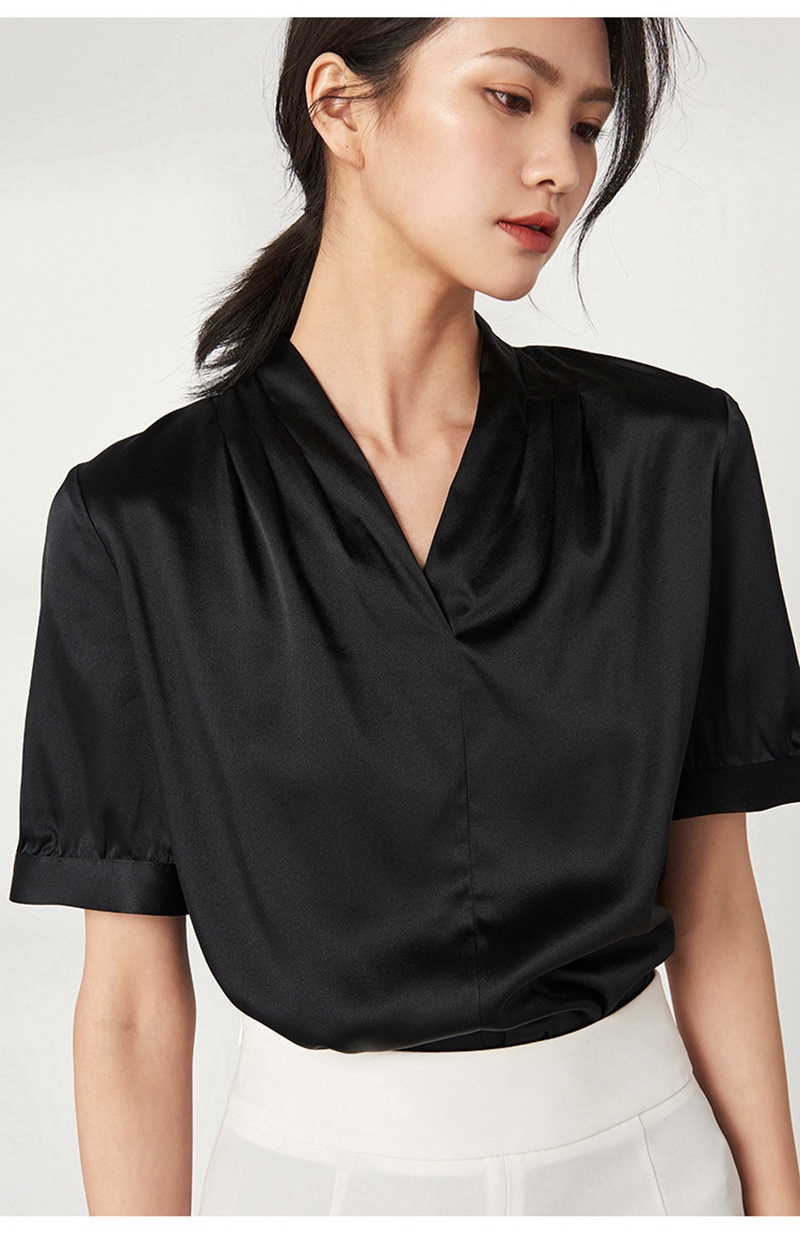 重磅真丝V领短袖套头上衣