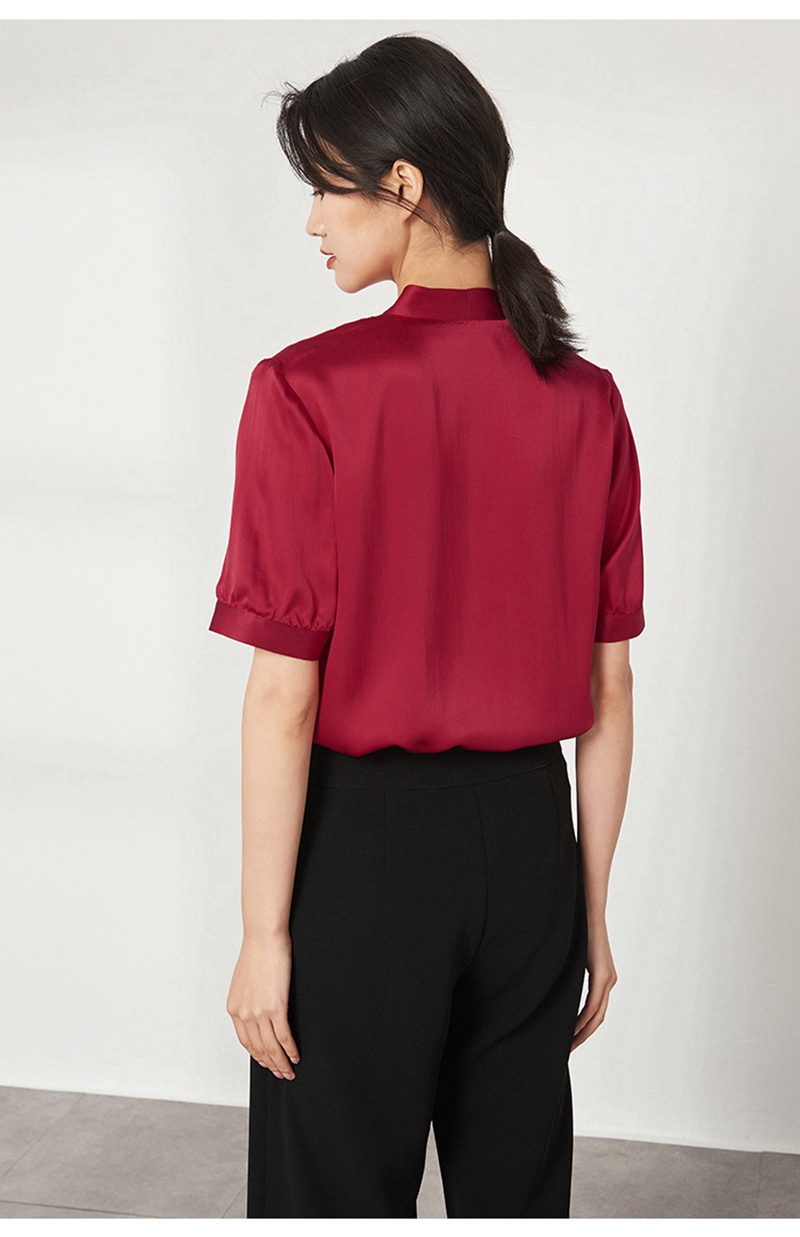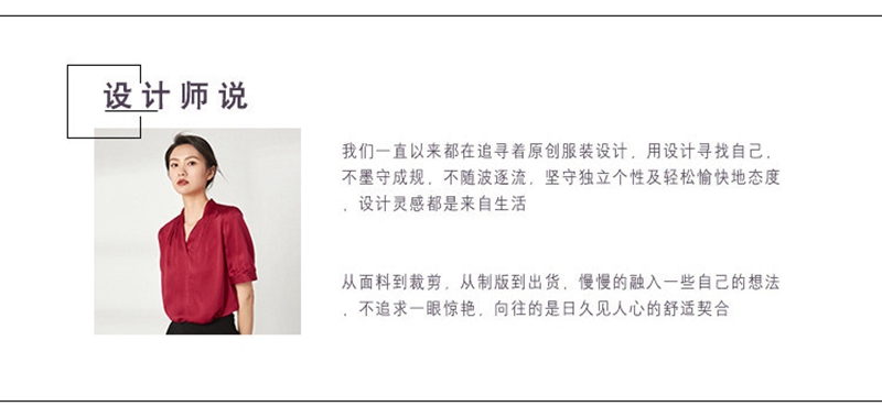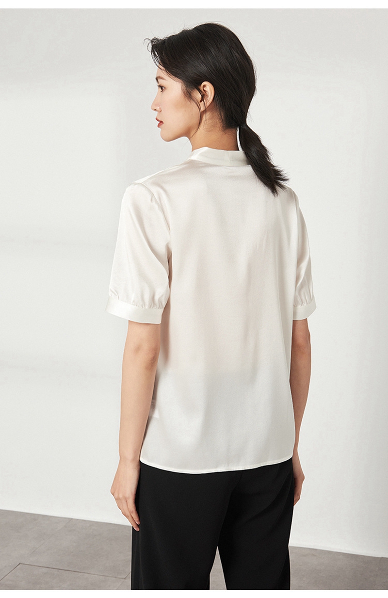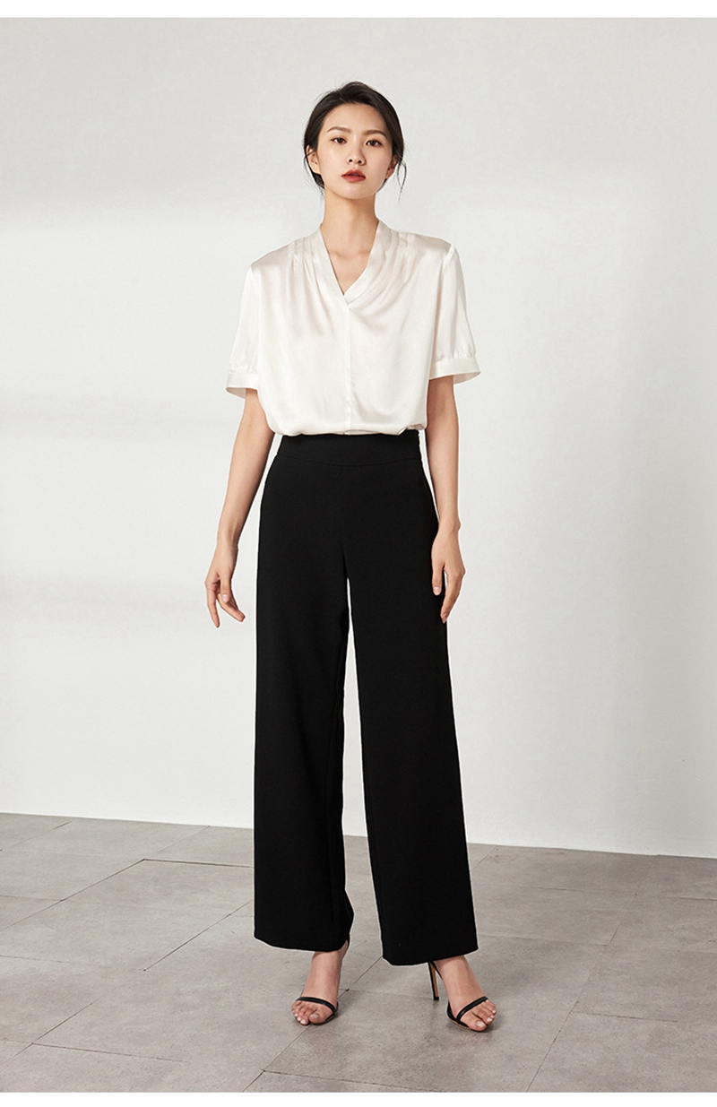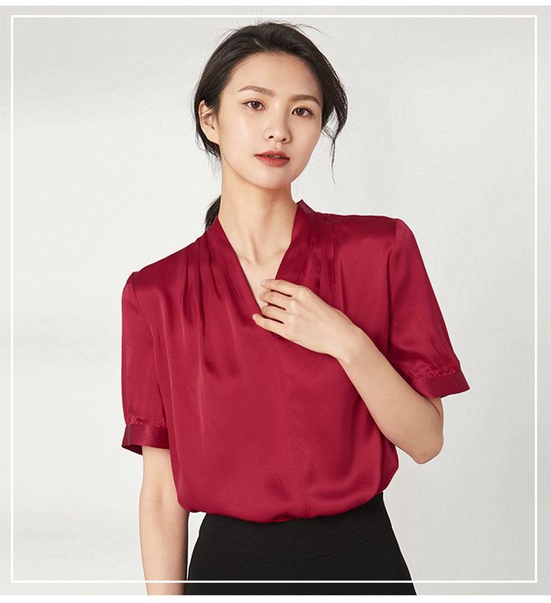 重磅真丝V领短袖套头上衣