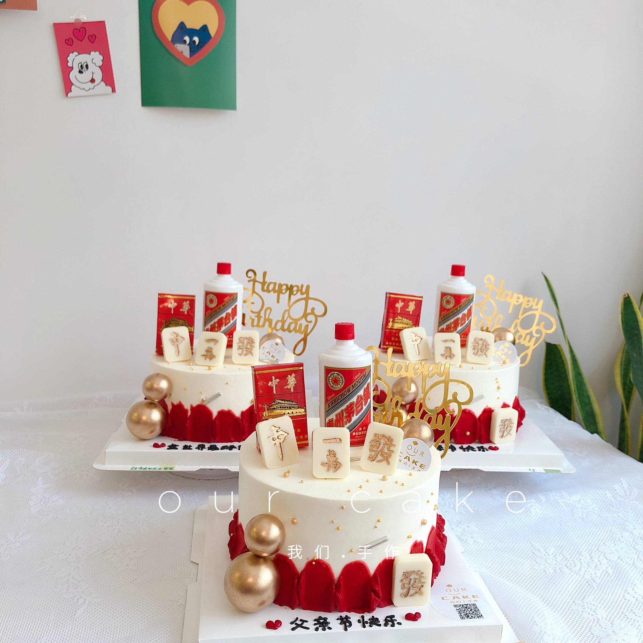 中华茅台麻将送爸爸/父亲蛋糕(配件都是装饰)-低糖处理无添加