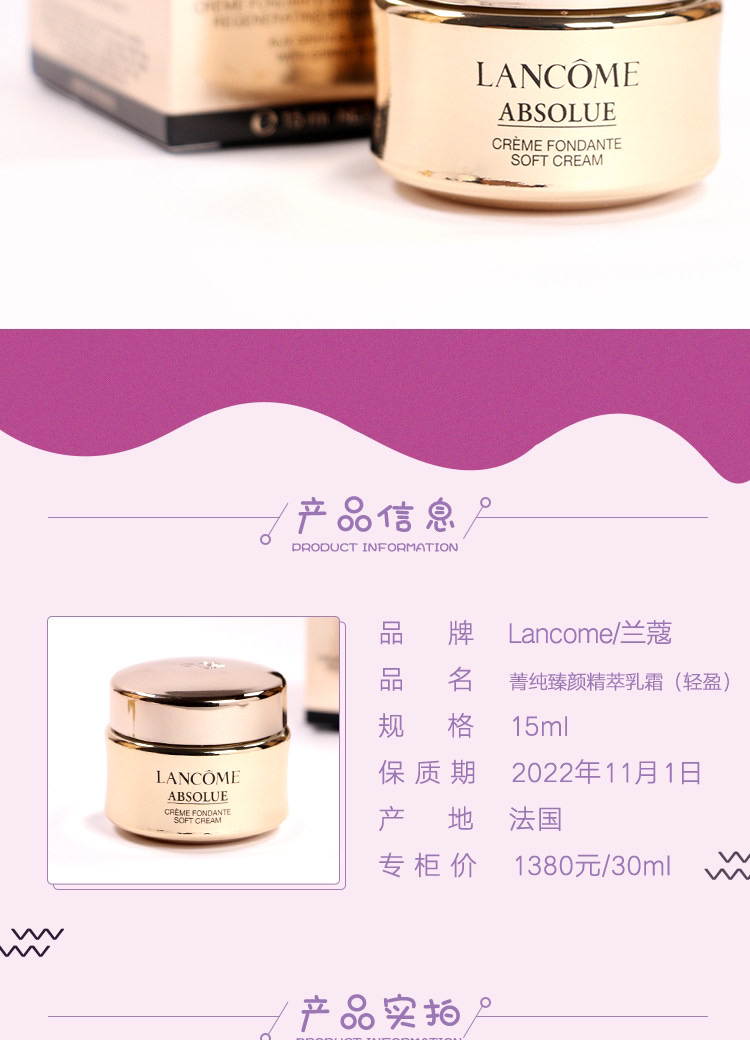 法国兰蔻菁纯面霜15ml