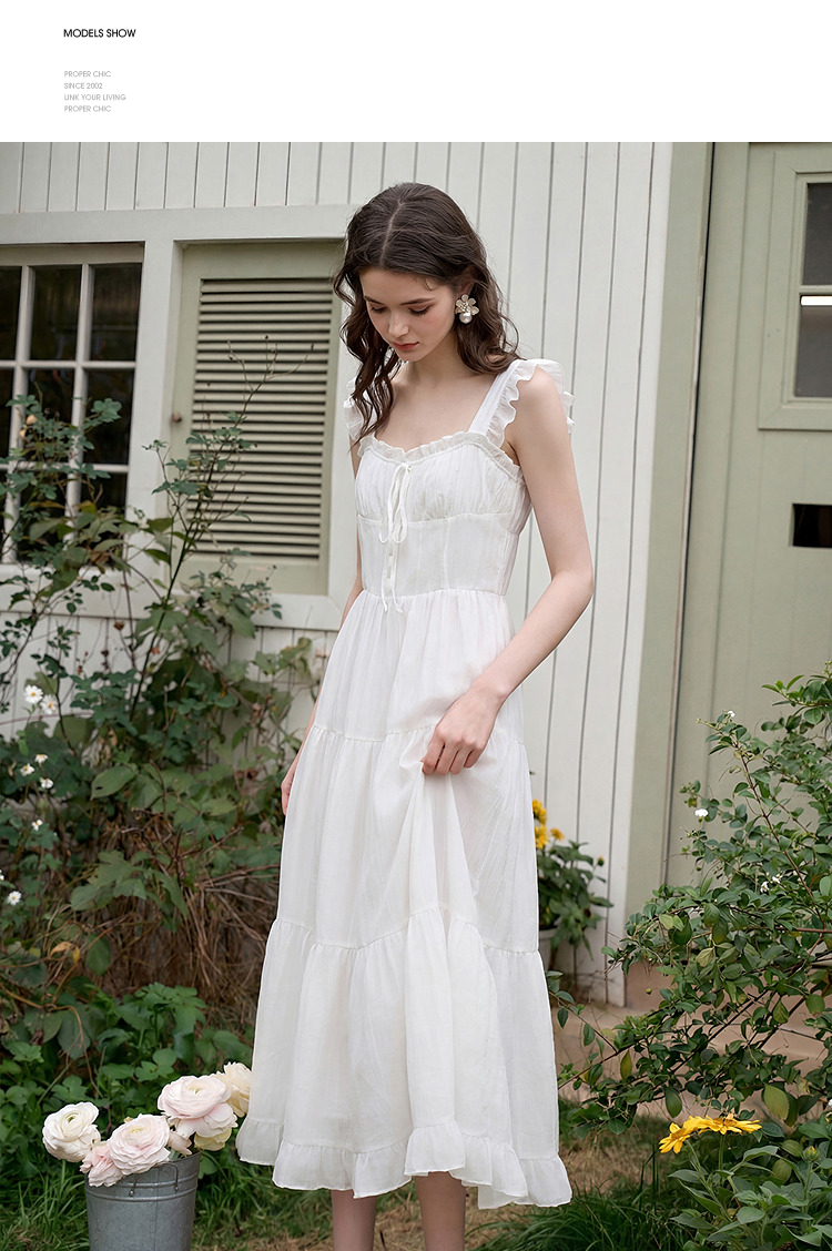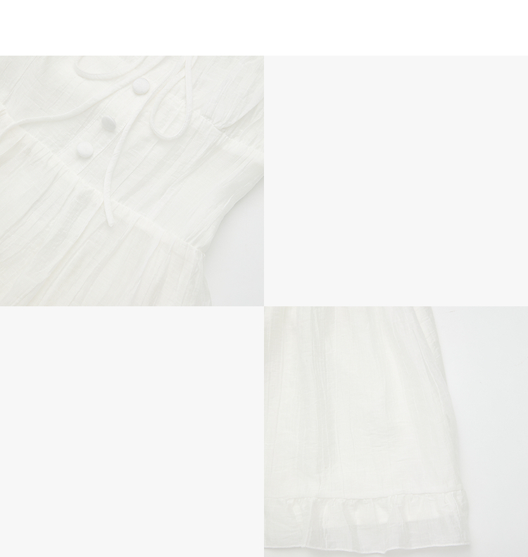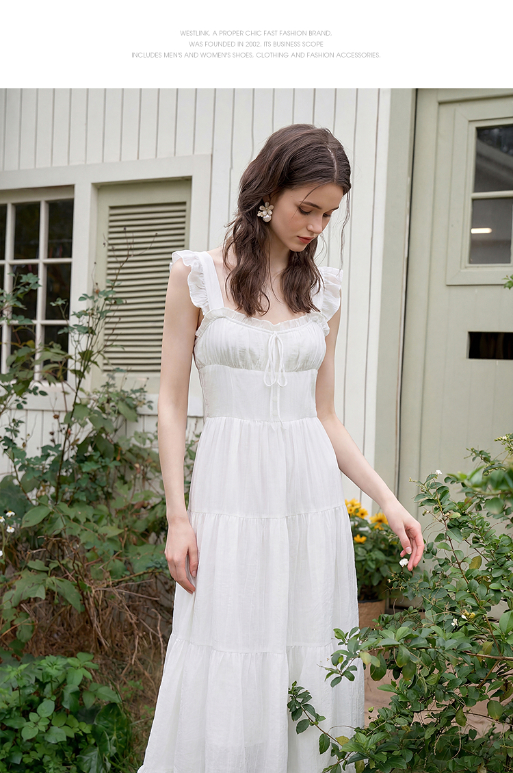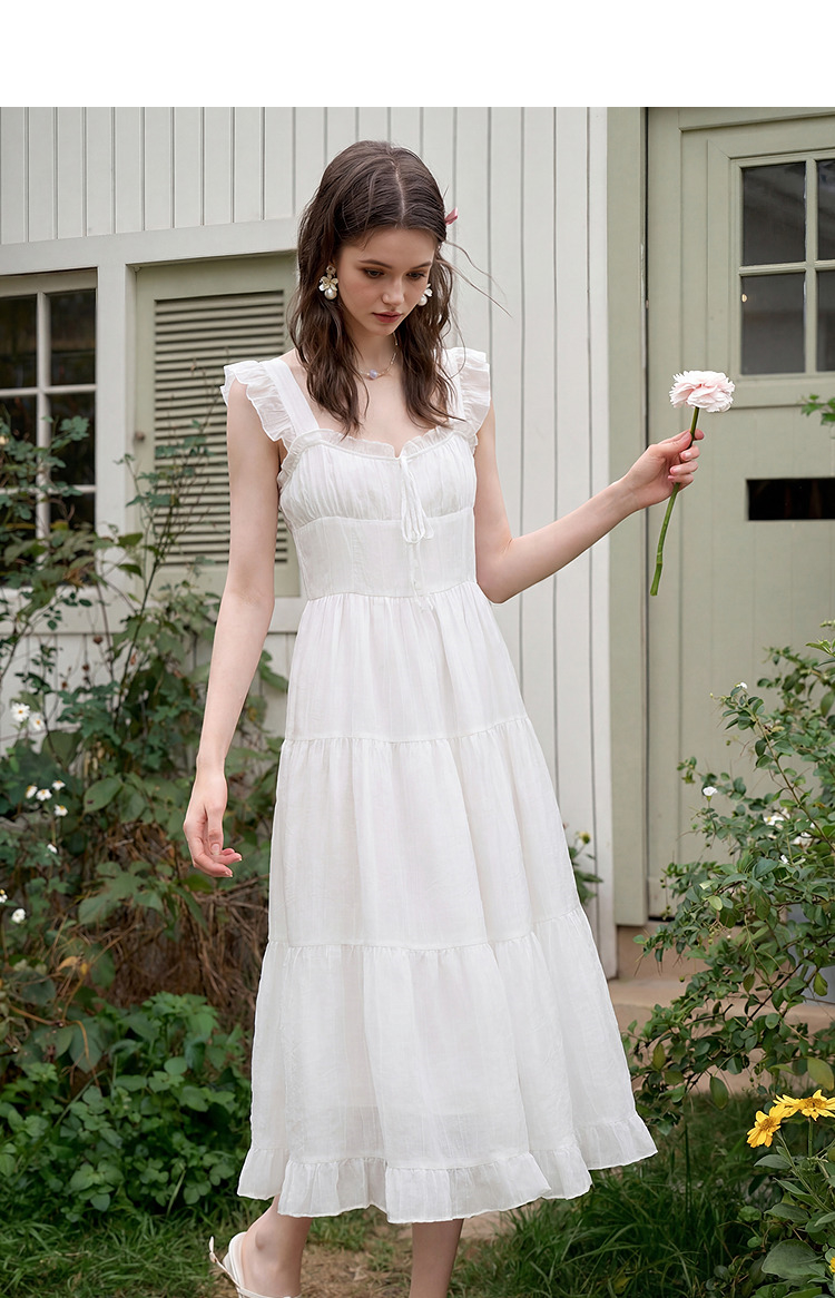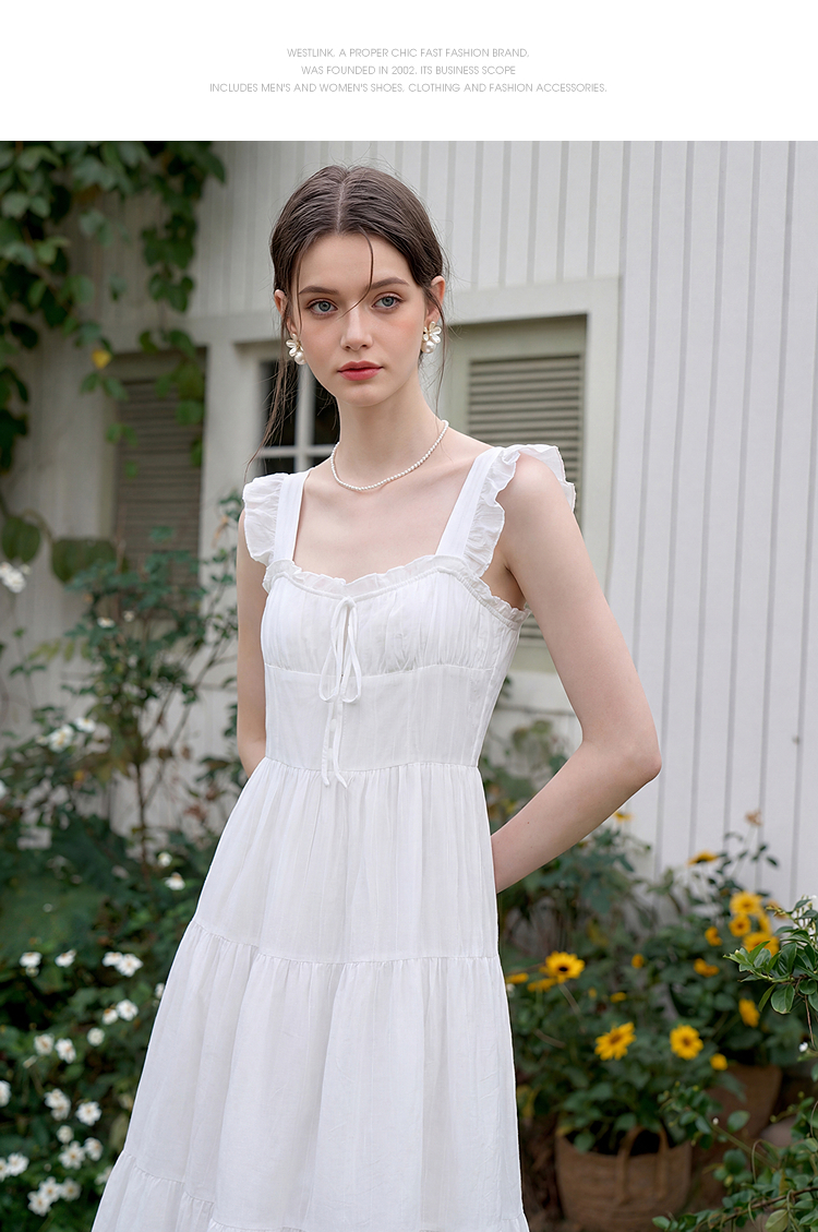 西遇法式飞飞袖排扣2026春夏方领蝴蝶结系带连衣裙气质露背长裙女H0060256