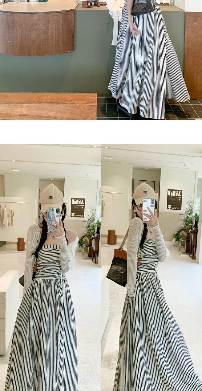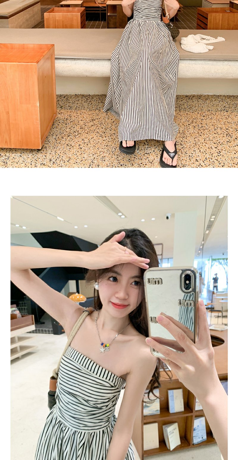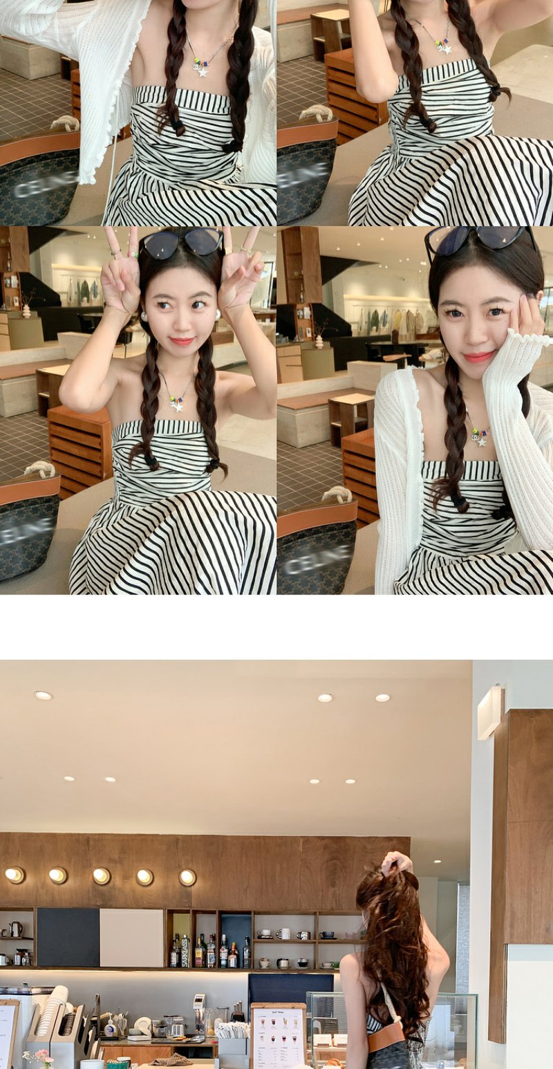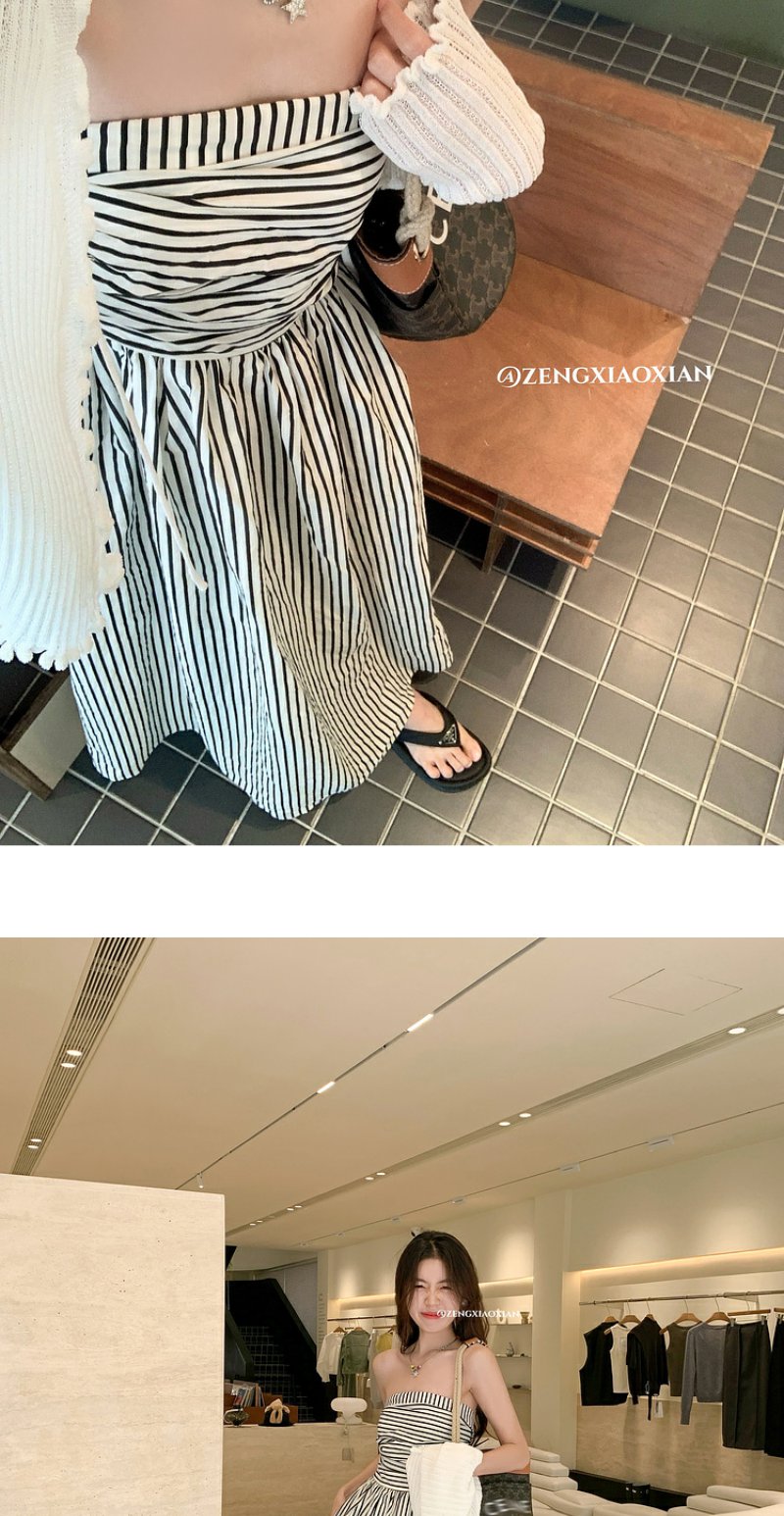 <曾小咸推荐> 【海岛落日】条纹抹胸连衣裙