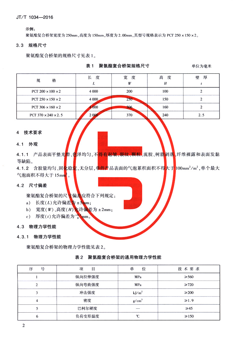 书名:公路用聚氨酯复合电缆桥架 (JT/T 1034—2016)