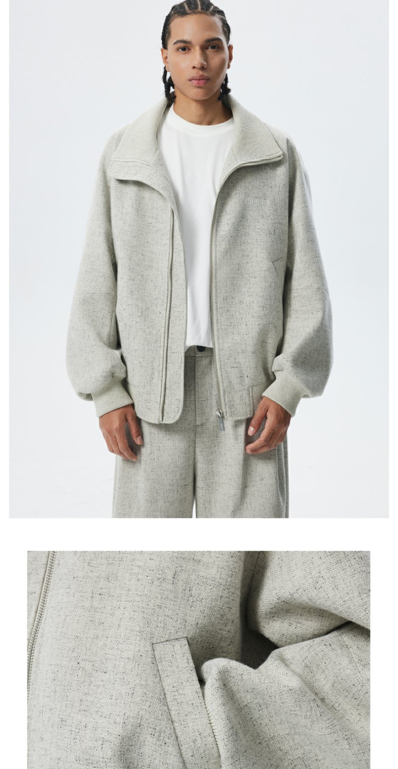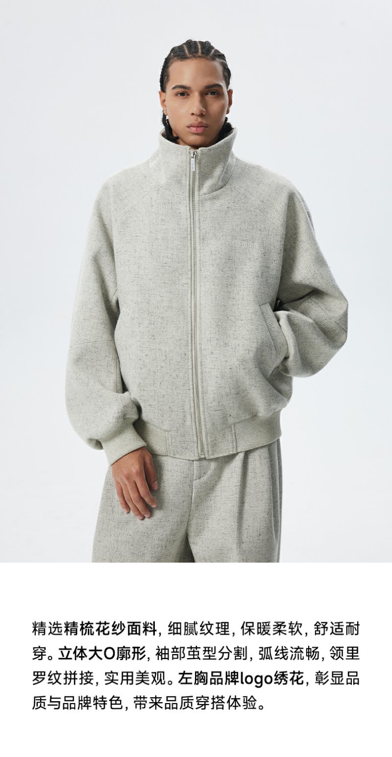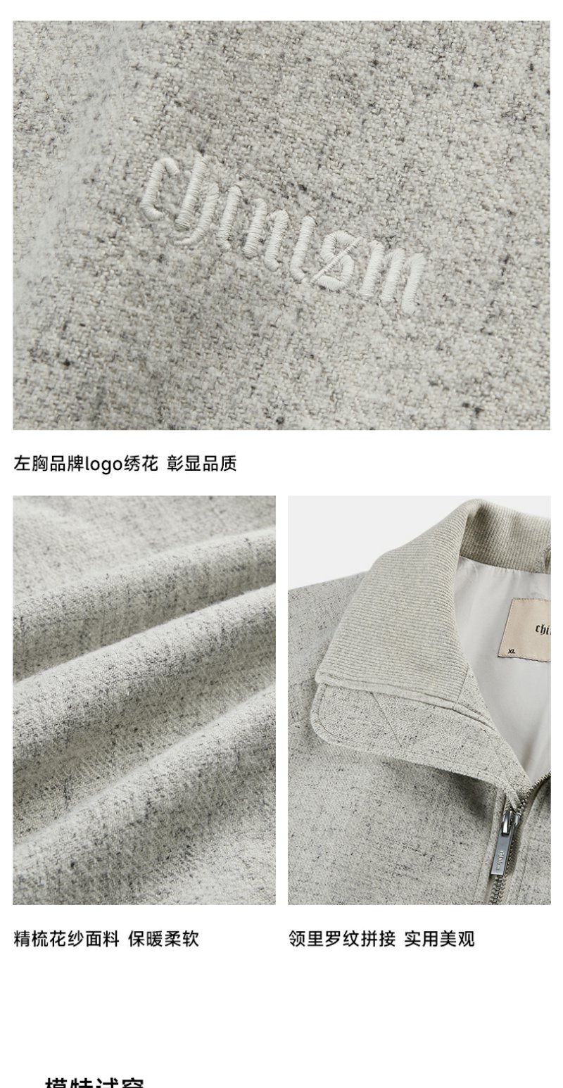 CHINISM折扣季 花灰色精梳花纱纹理立领夹克男冬季休闲简约外套
