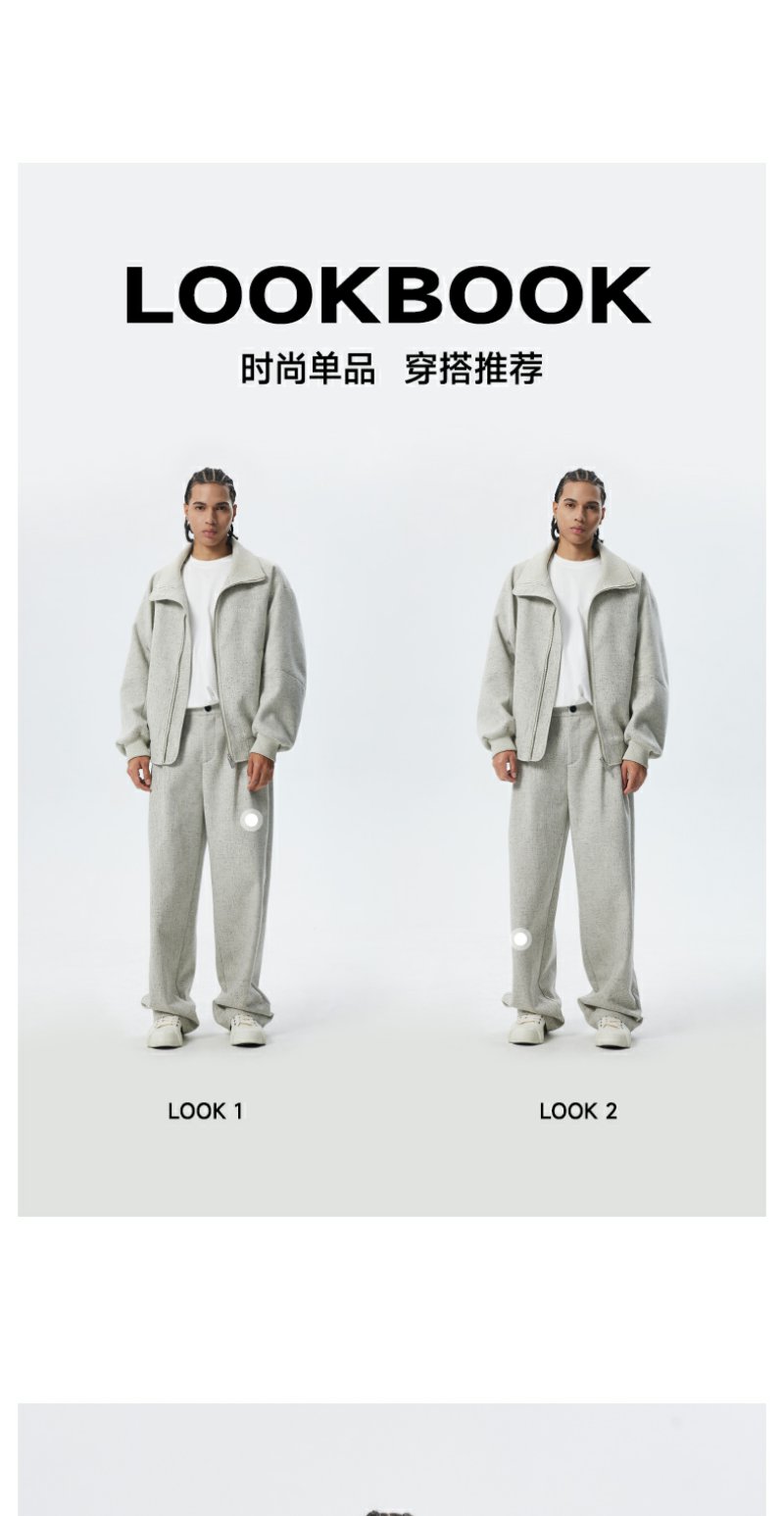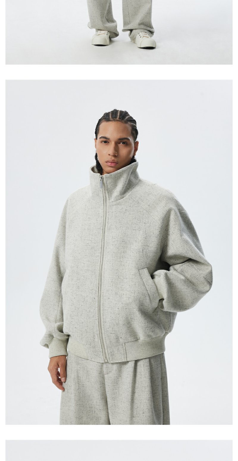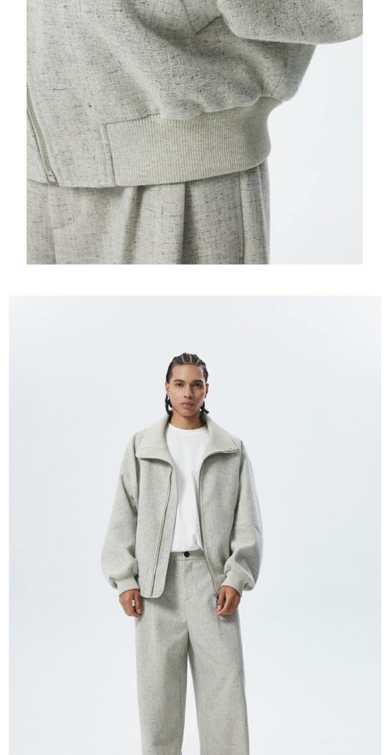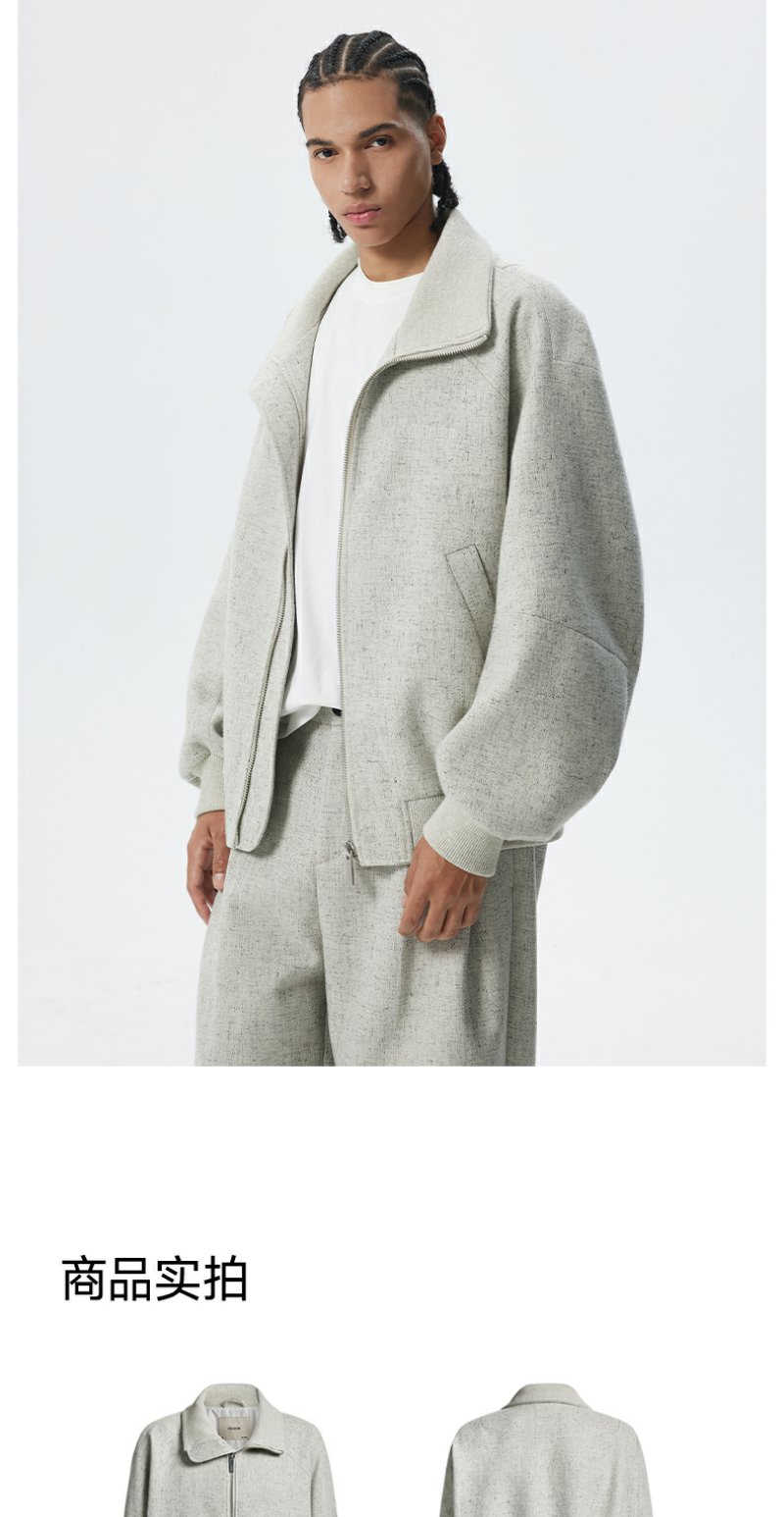 CHINISM折扣季 花灰色精梳花纱纹理立领夹克男冬季休闲简约外套