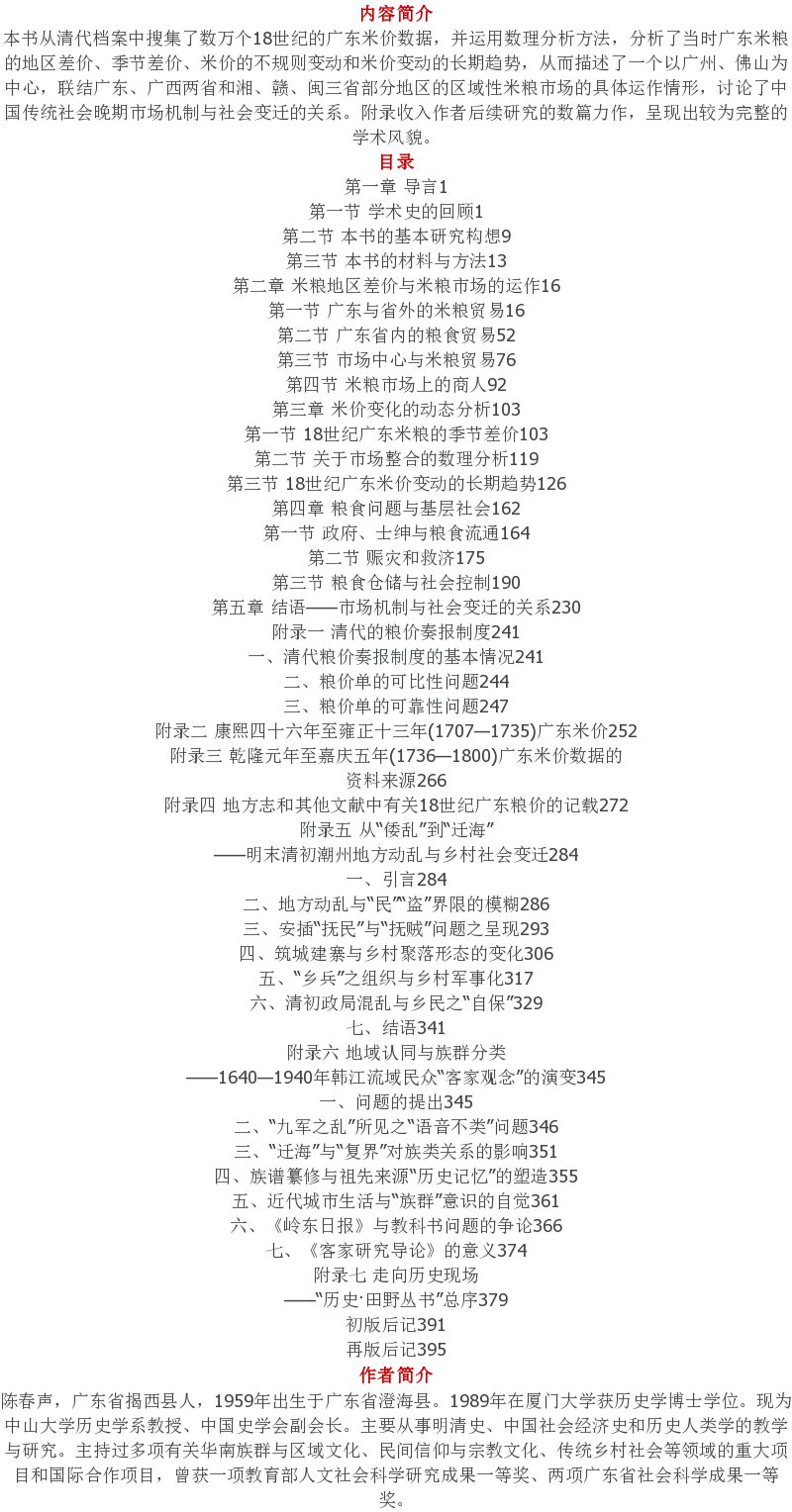 市场制与社会变迁 18世纪广东米价分析(增订本)9787303255344 陈春声 著 新史学&多元对话系列 北京师范大学出版社