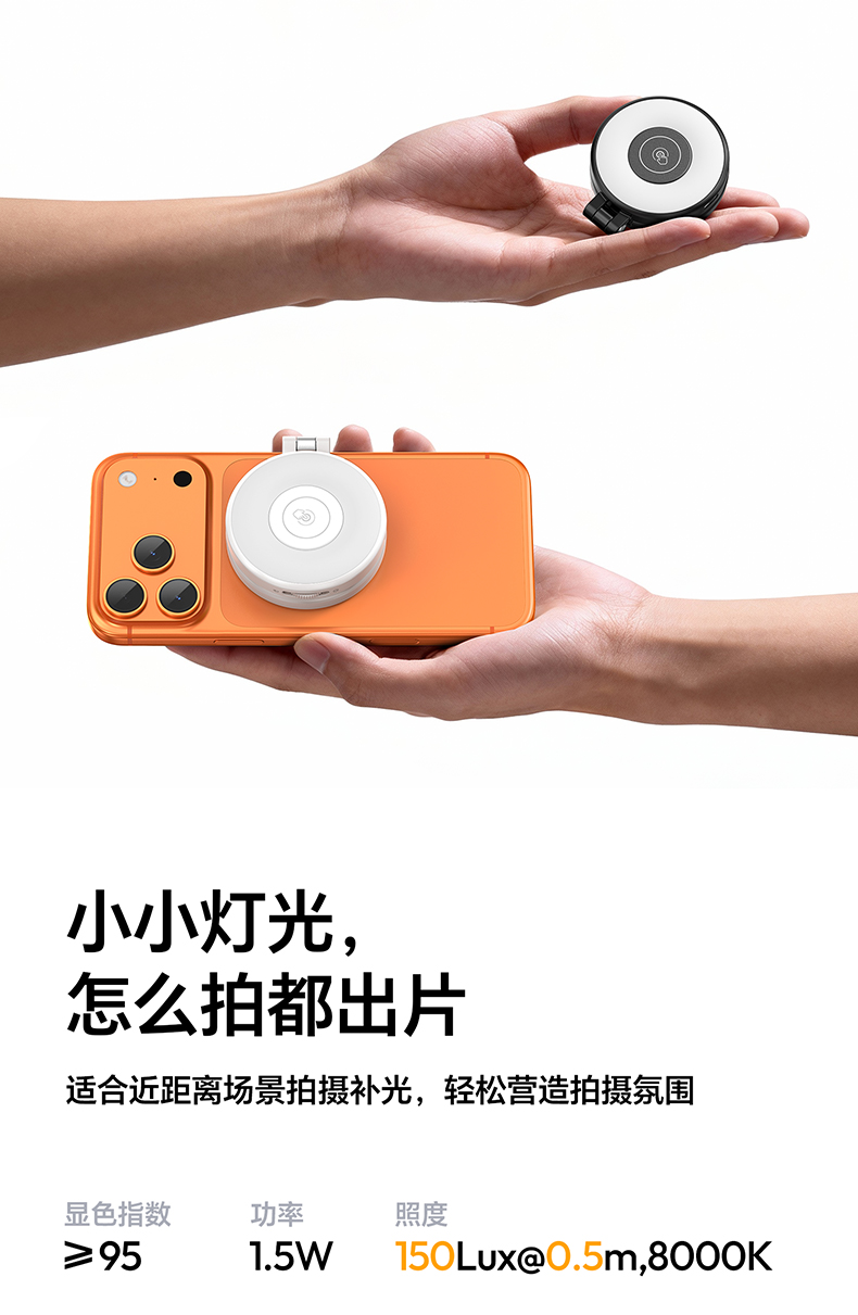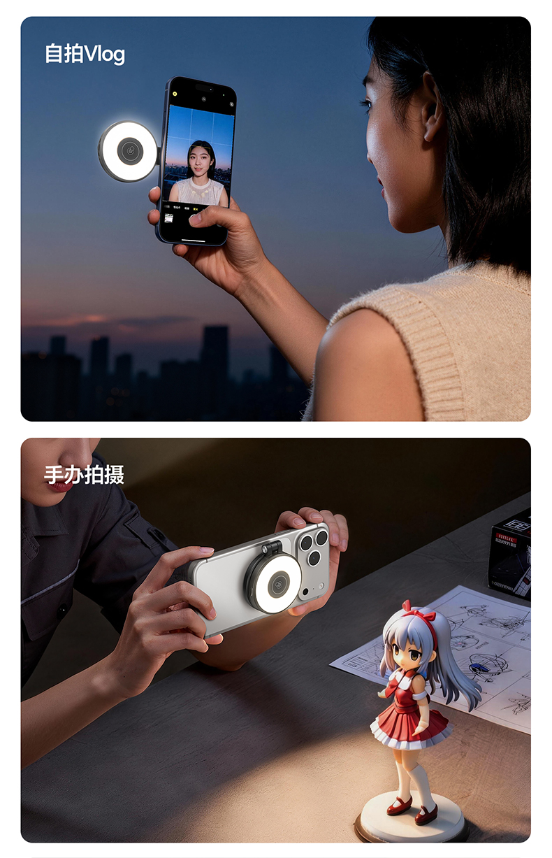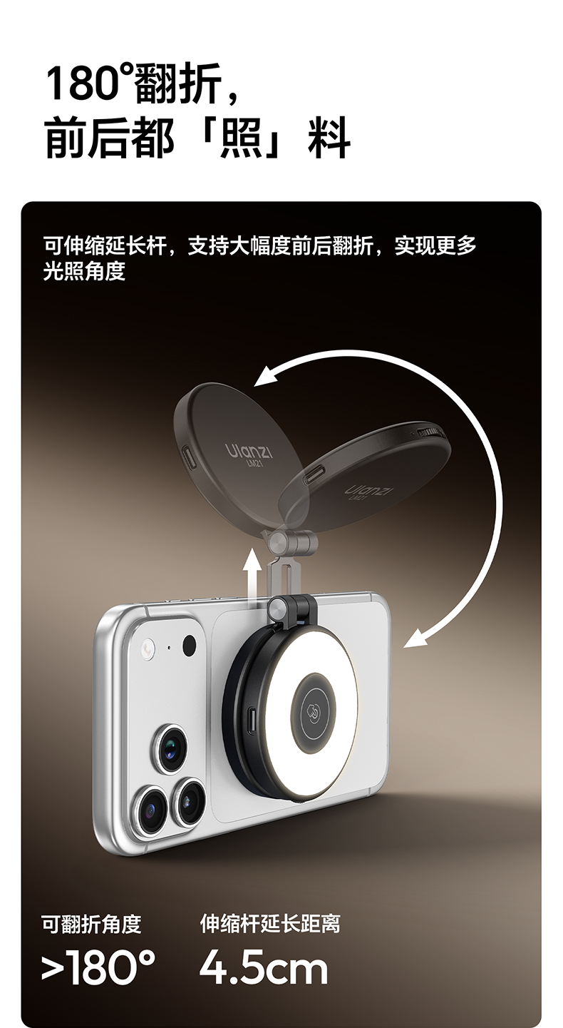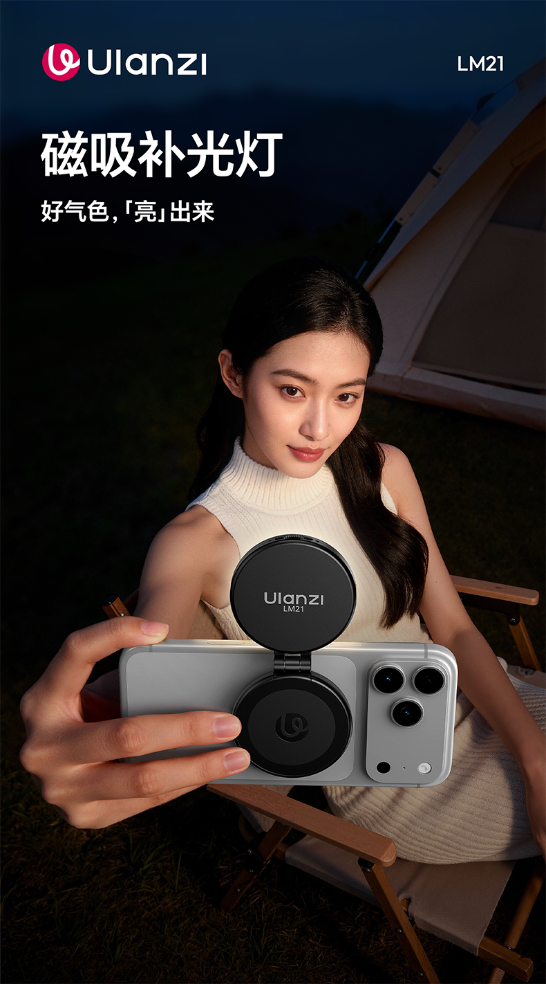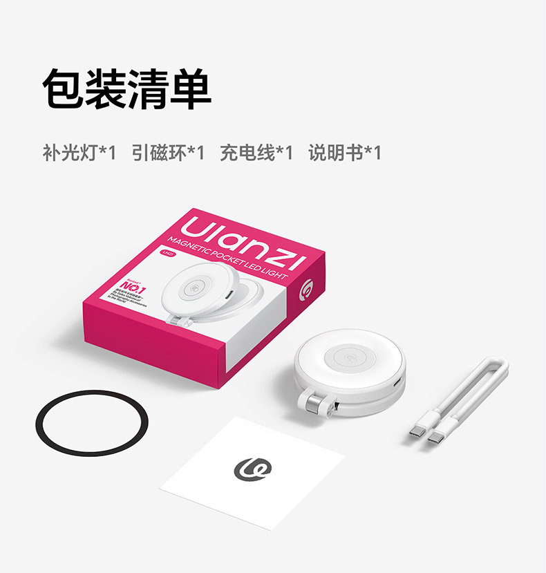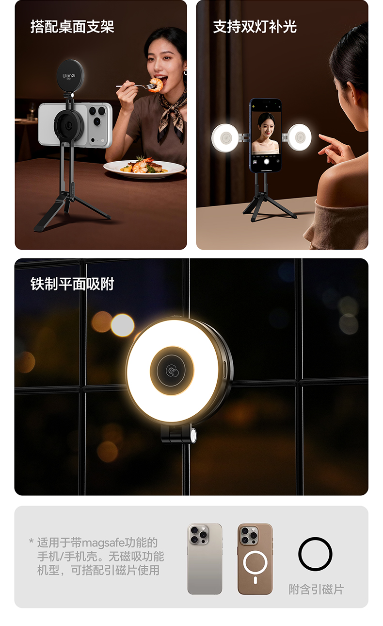 Ulanzi优篮子Magsafe磁吸手机补光灯迷你自拍环形灯便携美颜三色温打光拍照适用苹果iPhone17/16/15拍摄神器