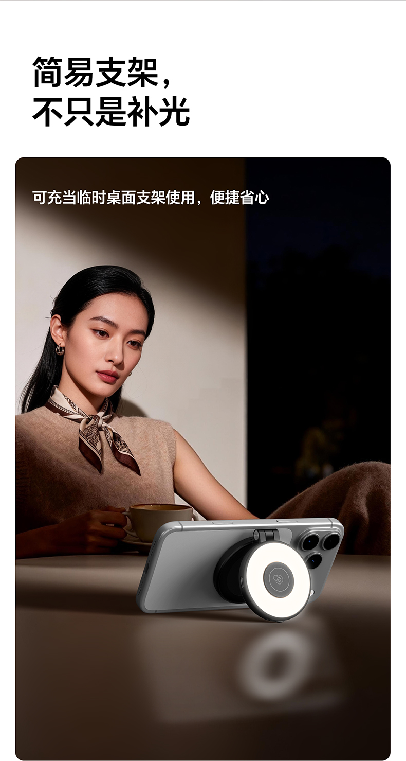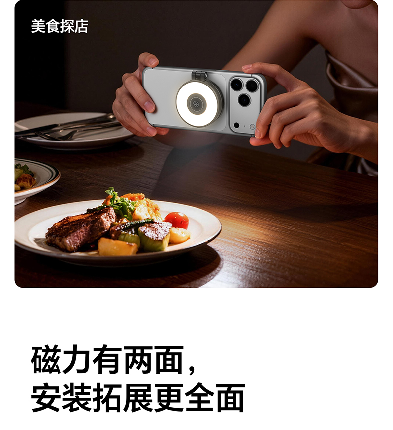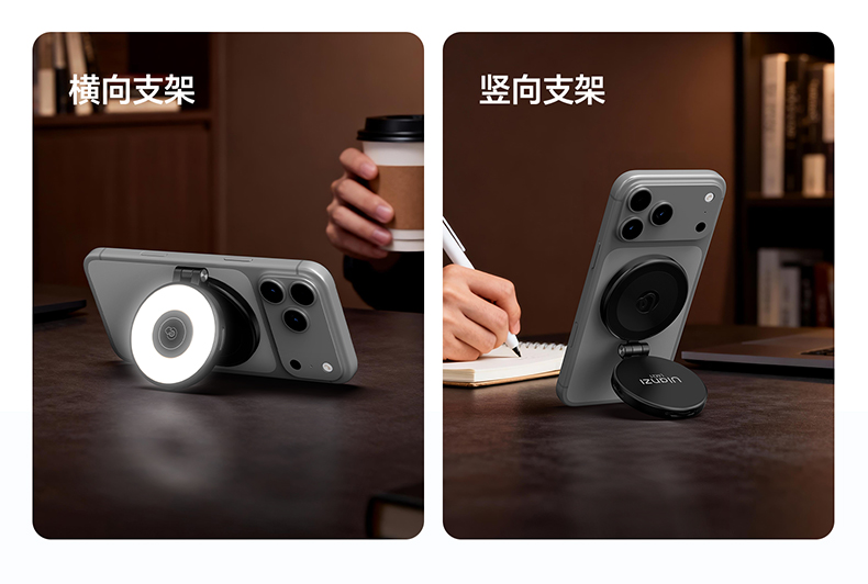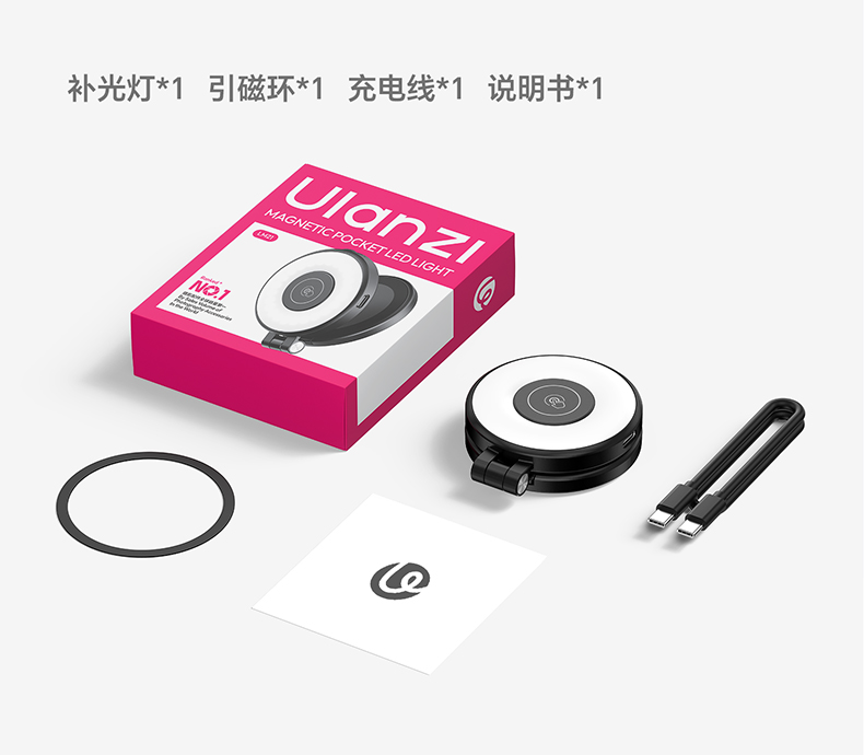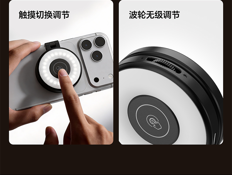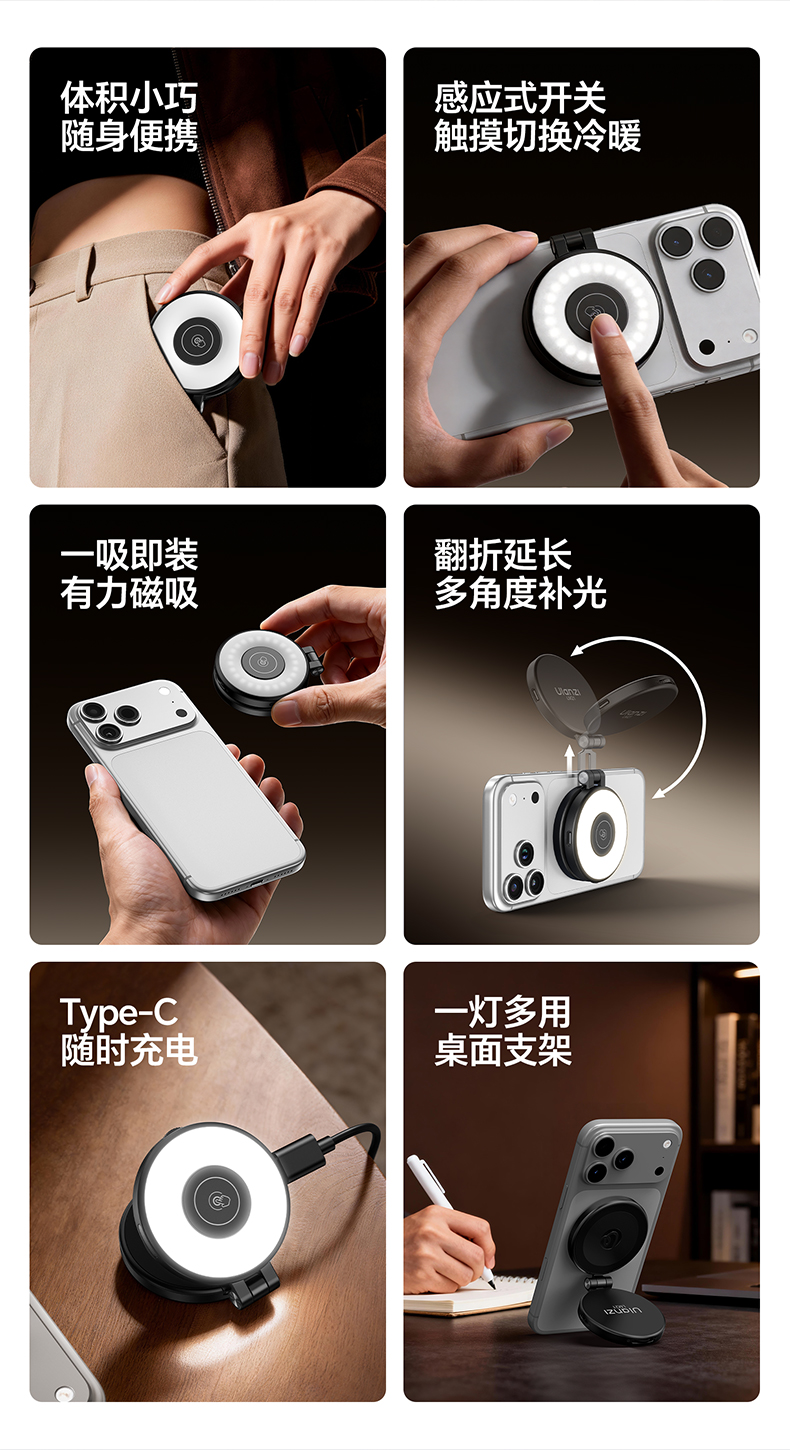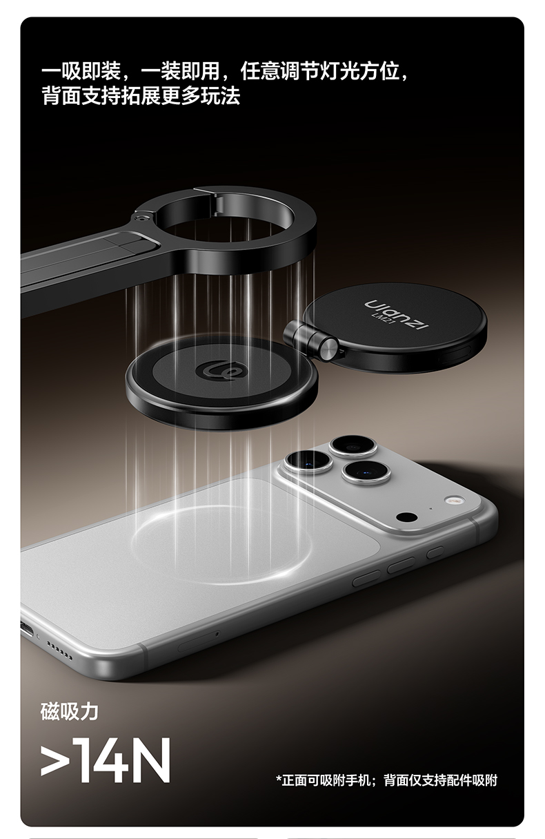 Ulanzi优篮子Magsafe磁吸手机补光灯迷你自拍环形灯便携美颜三色温打光拍照适用苹果iPhone17/16/15拍摄神器