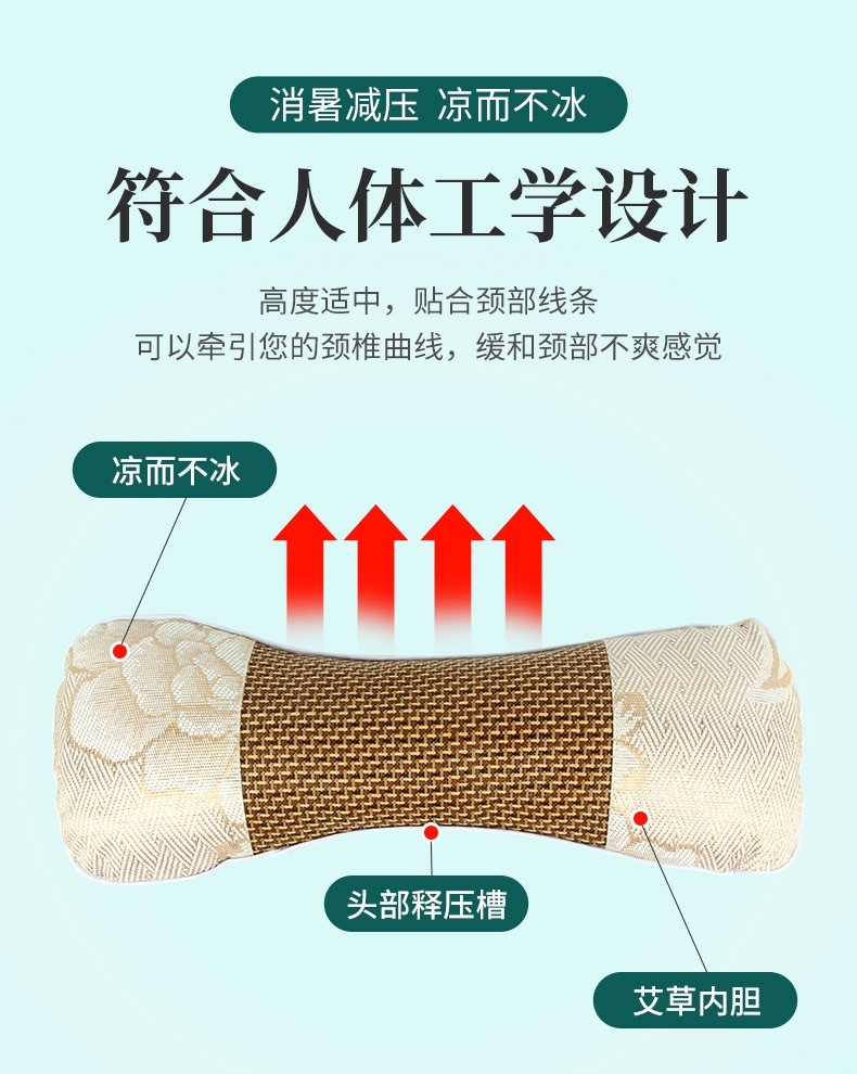 【家居百货】【艾草冰丝骨头枕】 人体工学设计、 牵引颈椎曲线!让你的颈部肌肉得到舒缓和缓解,枕头+靠腰,一枕多用,呵护腰颈!