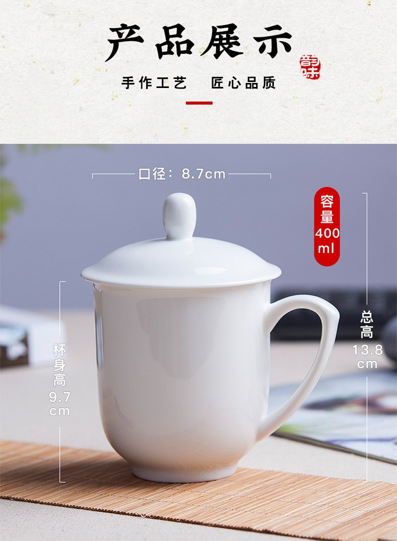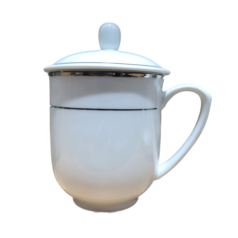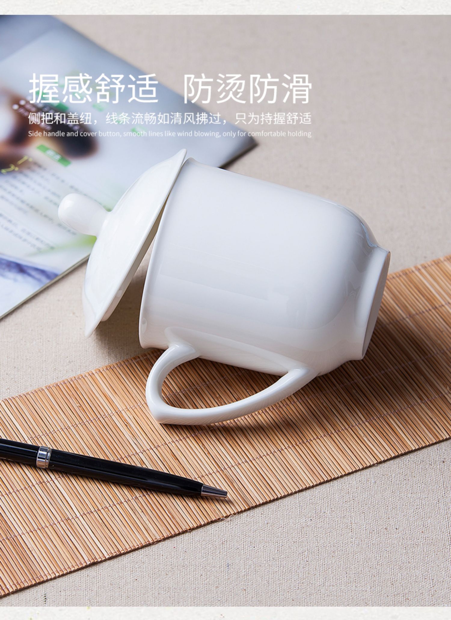 凡瑞斯纯白会议杯唐山骨瓷水杯茶杯带盖办公室个人专用
