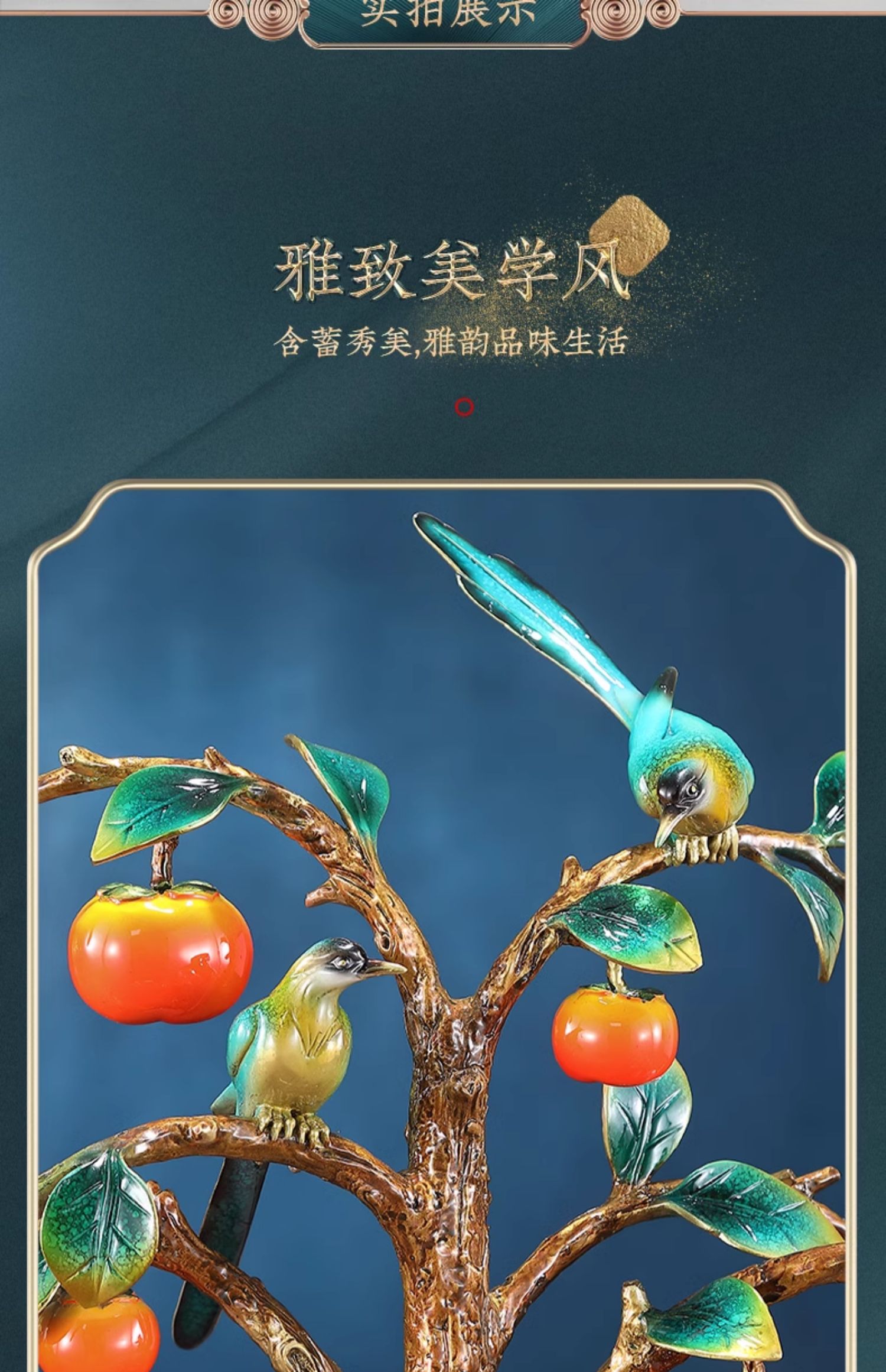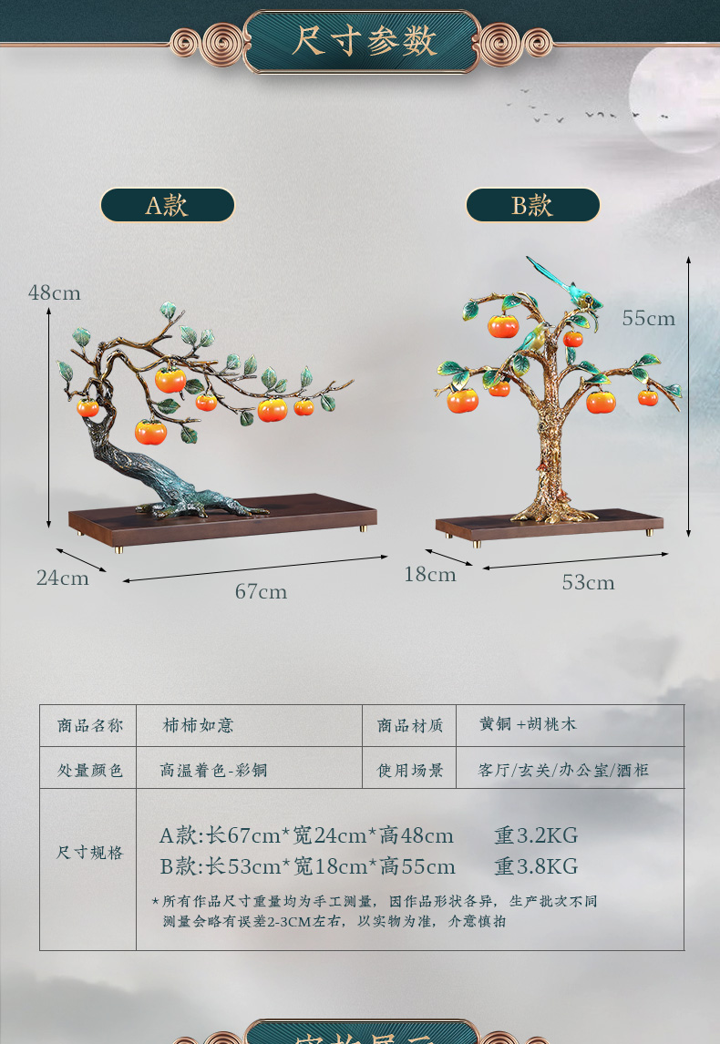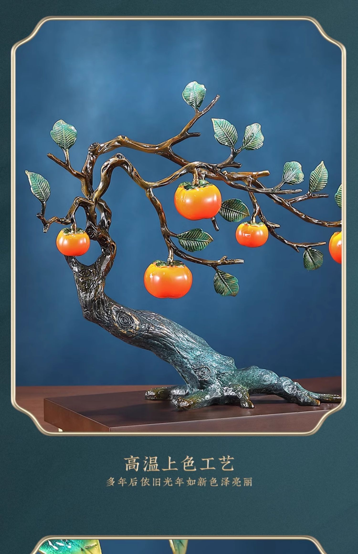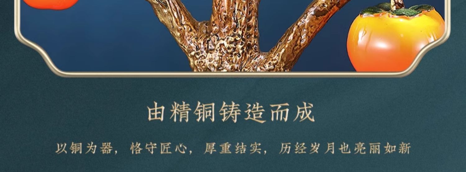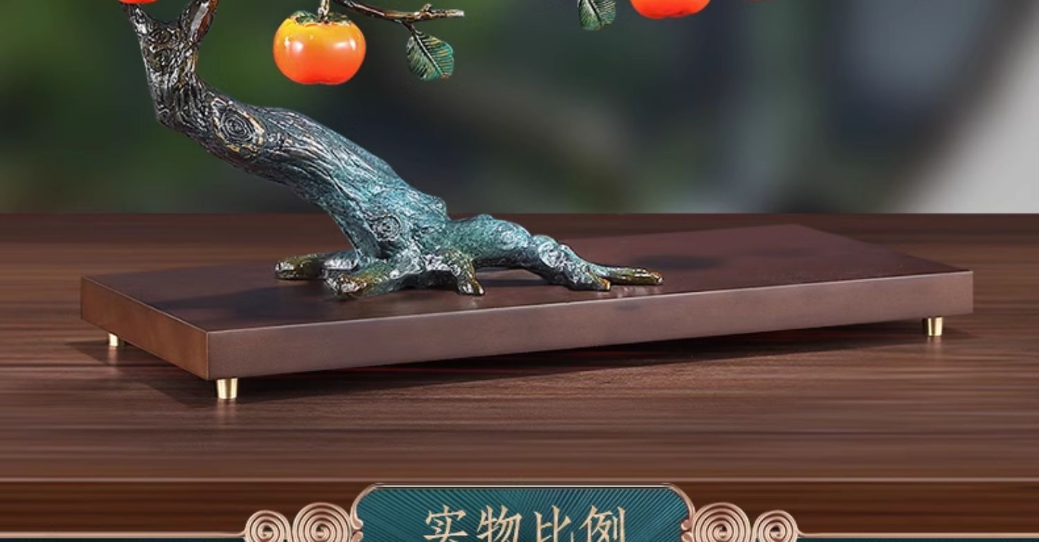 事事如意彩铜柿子摆件招财家居客厅玄关酒柜高端轻奢装饰乔迁礼品京铜柿业长青黄铜摆件
