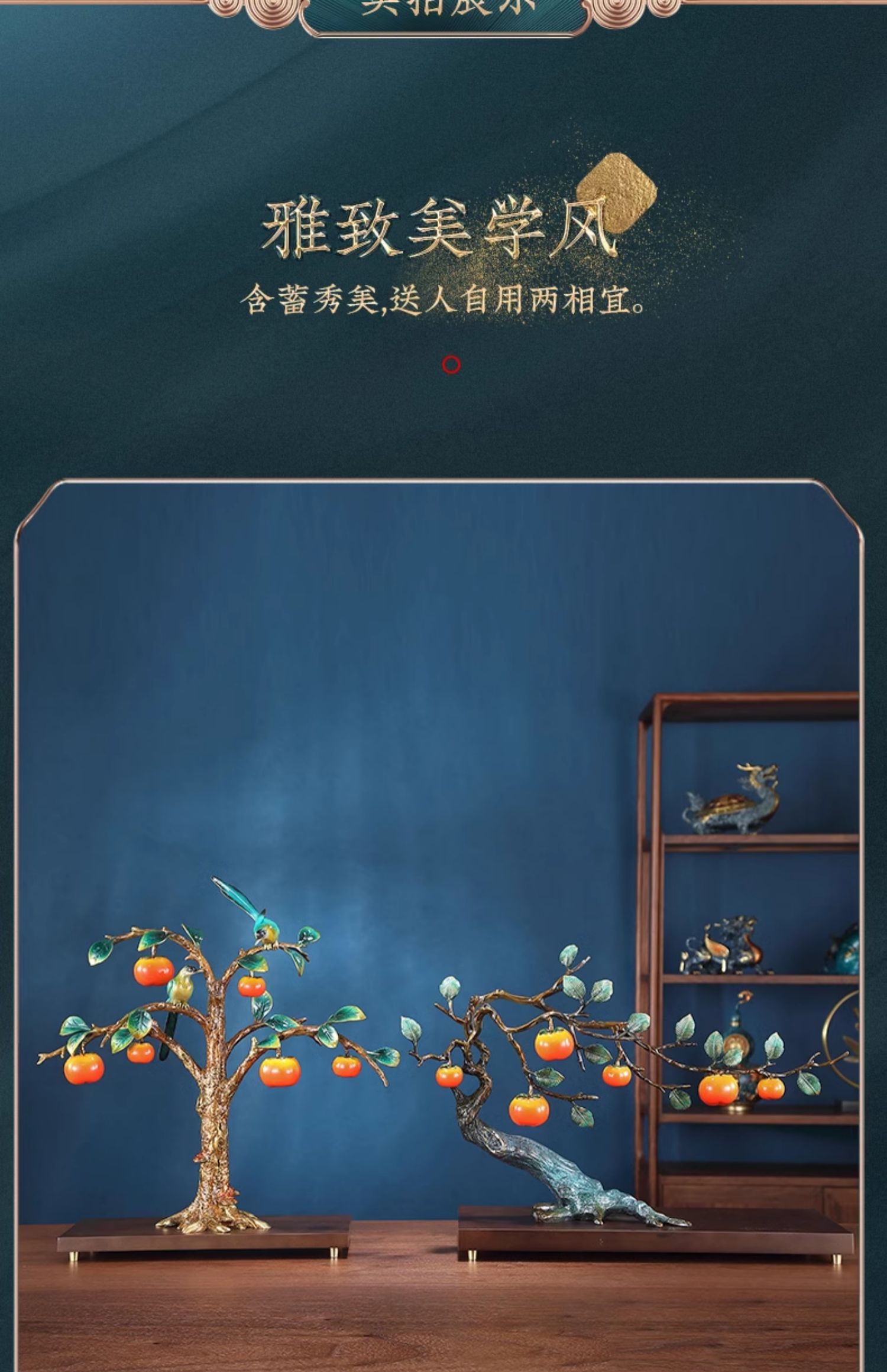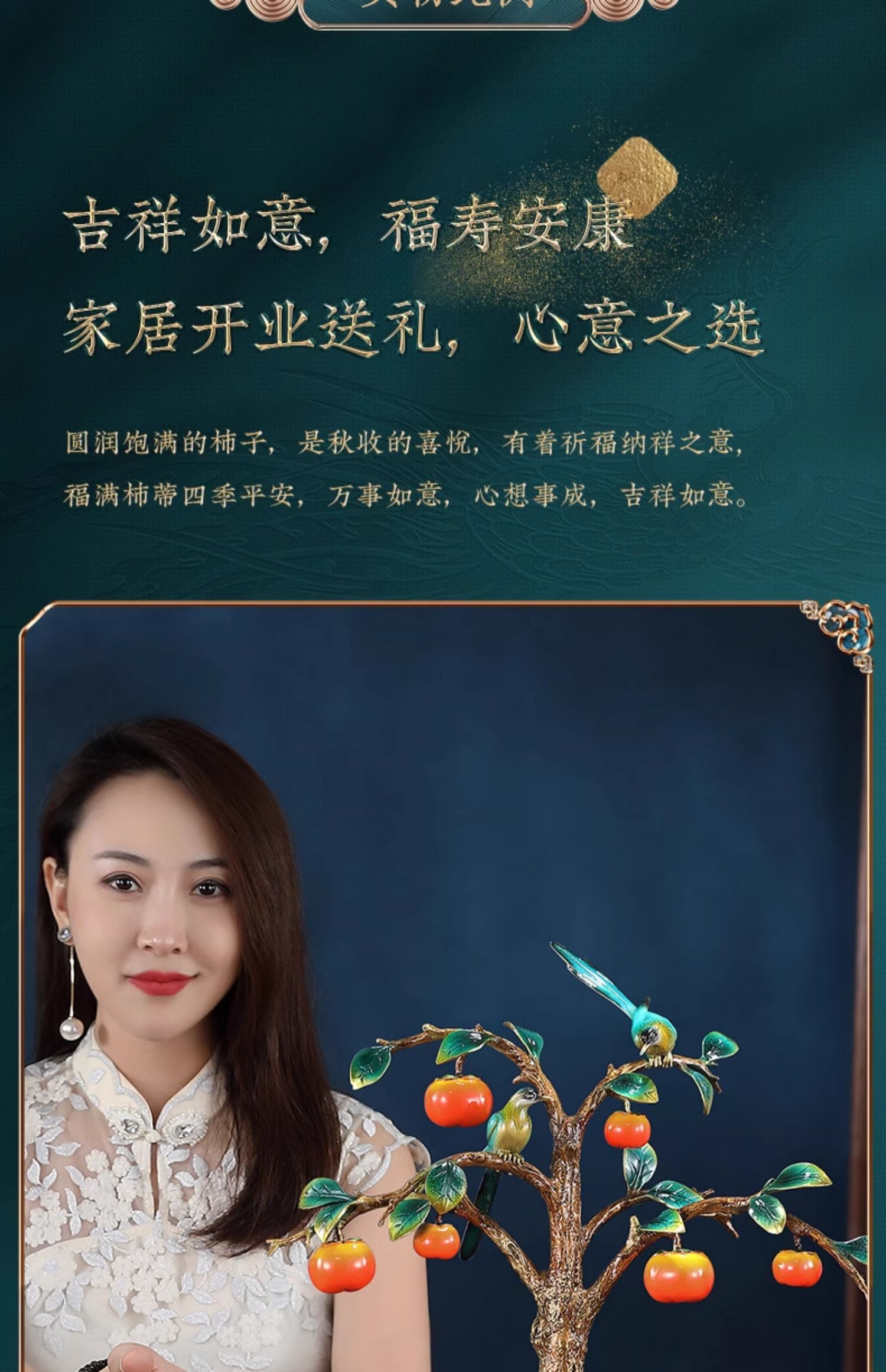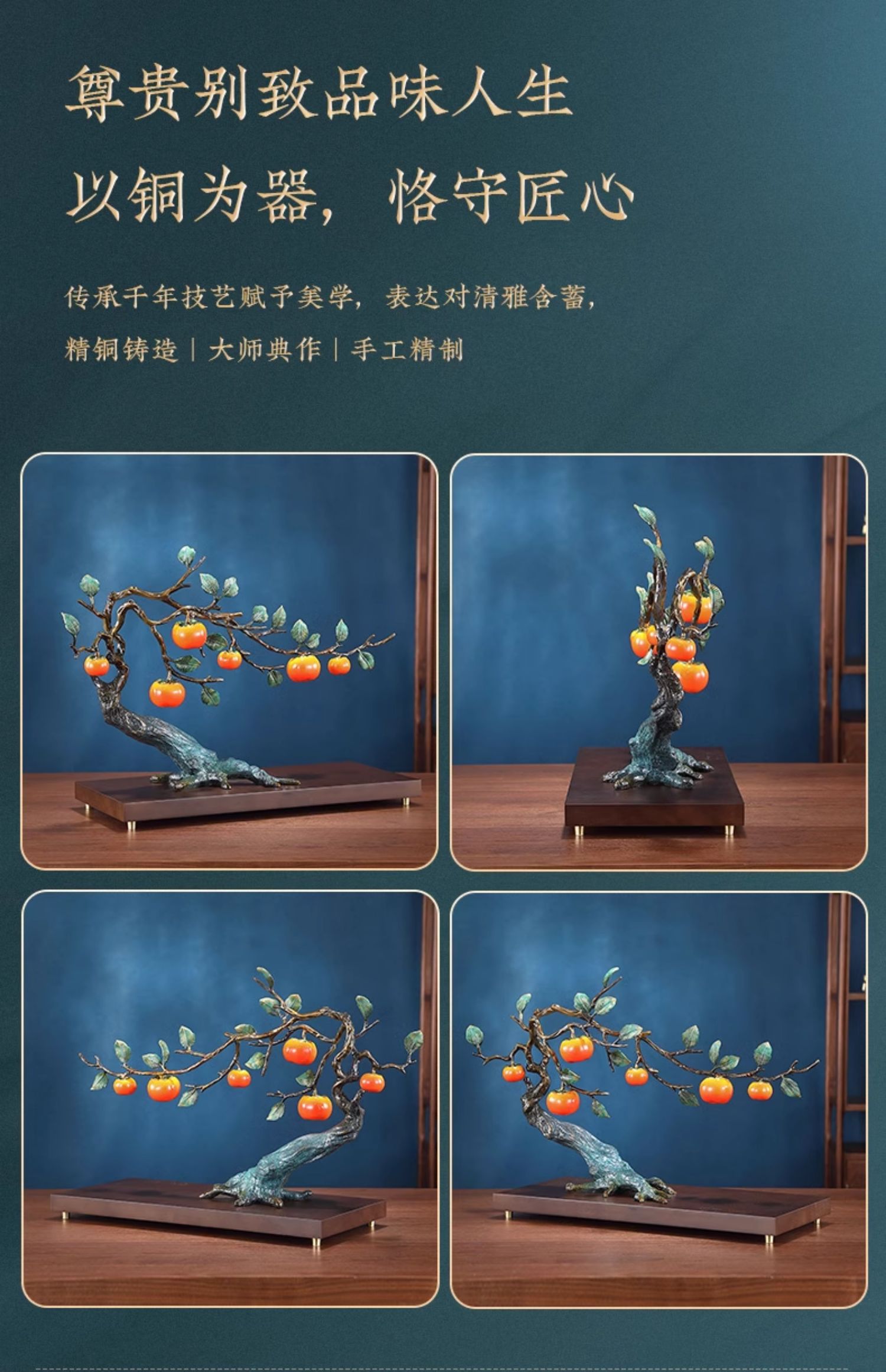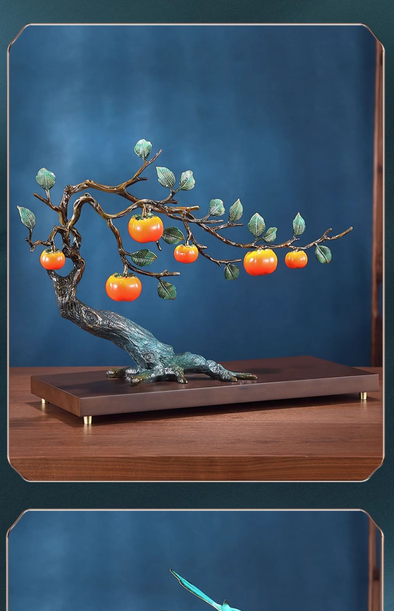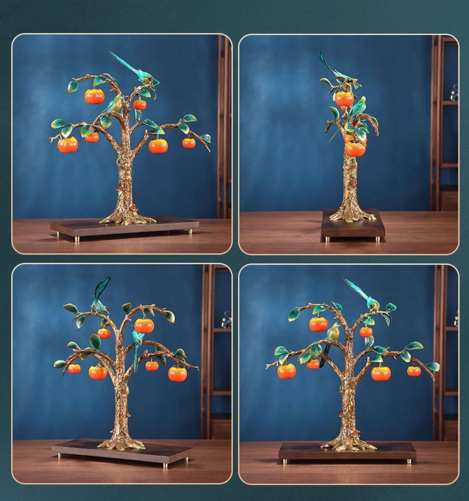事事如意彩铜柿子摆件招财家居客厅玄关酒柜高端轻奢装饰乔迁礼品京铜柿业长青黄铜摆件