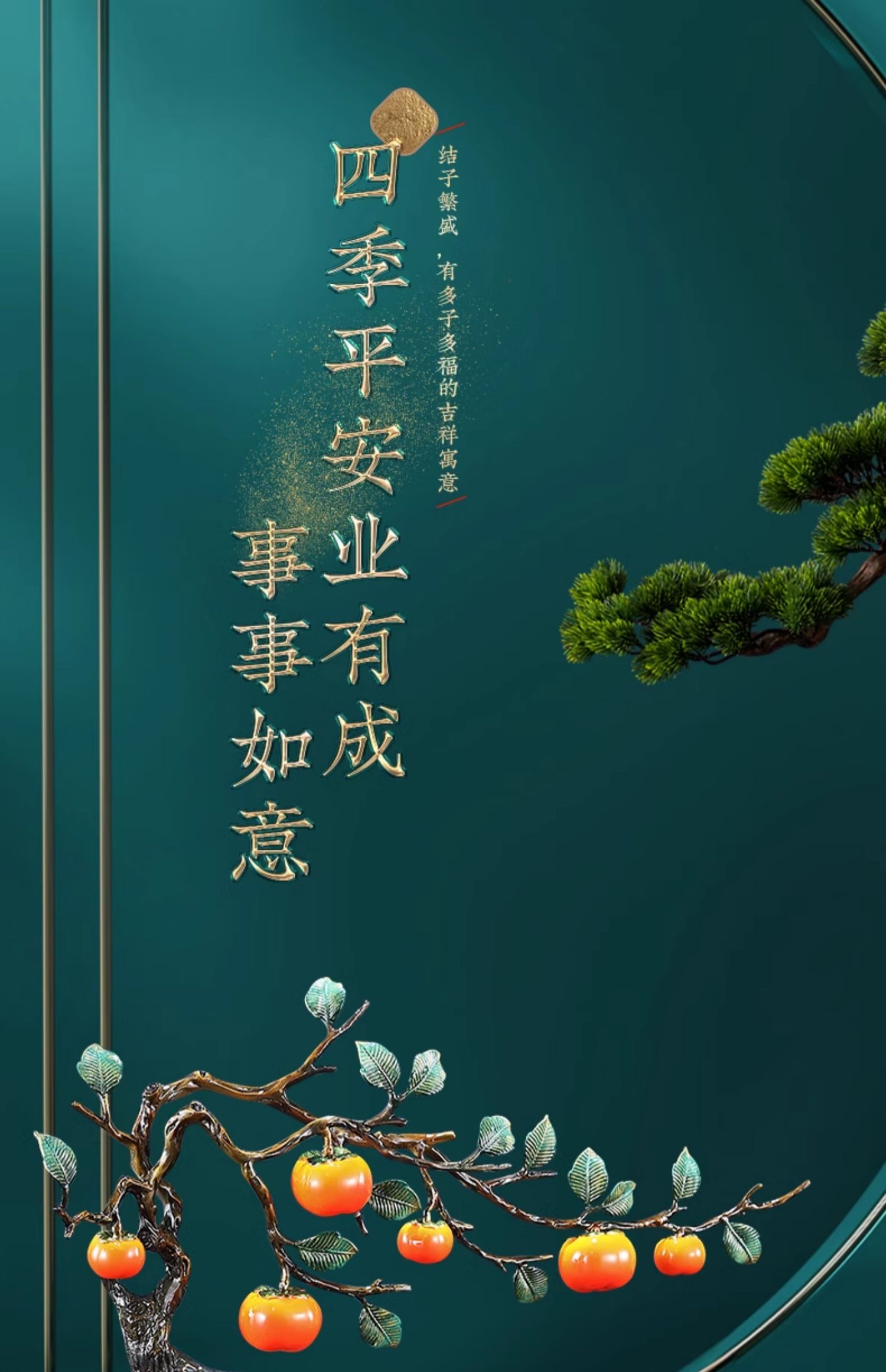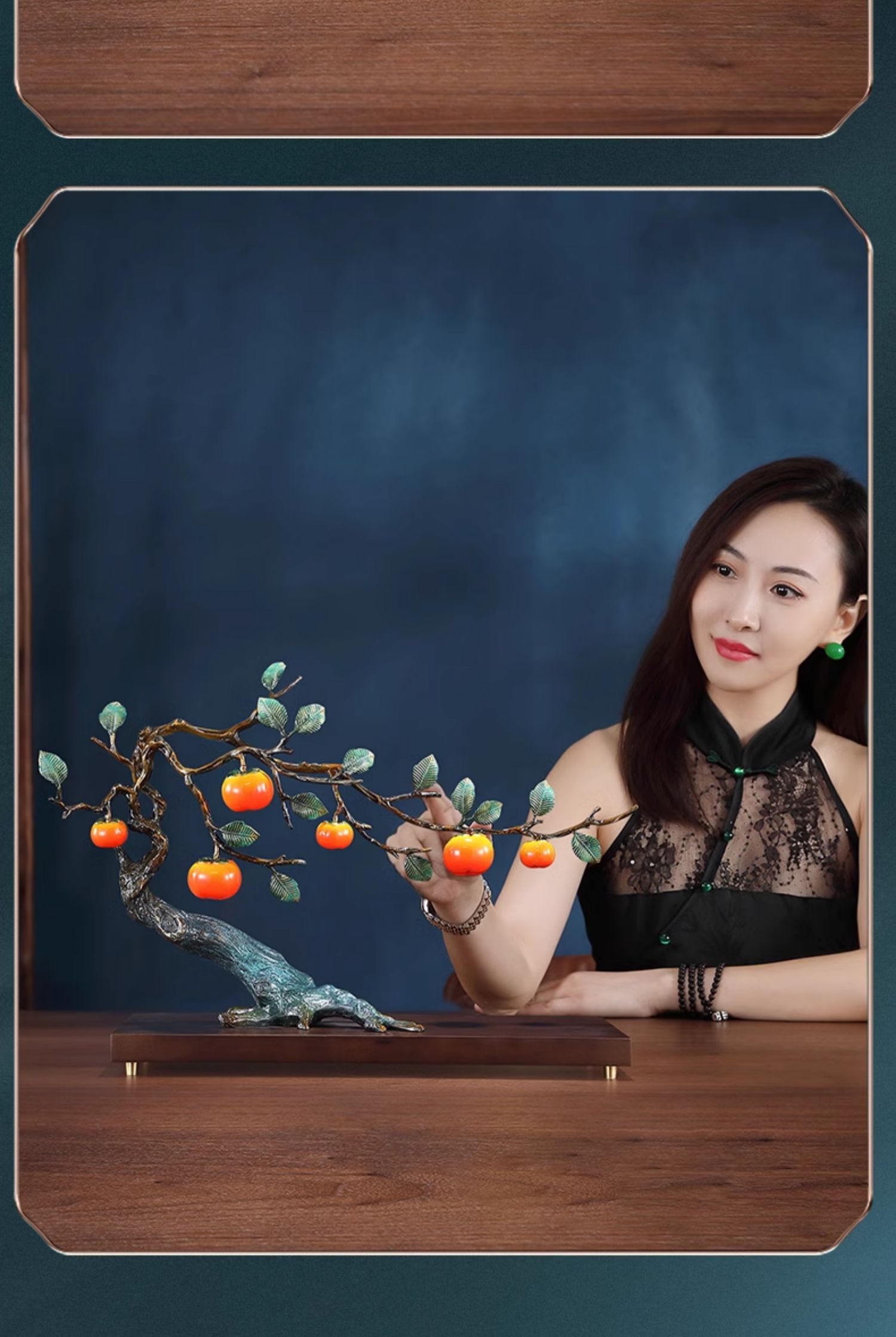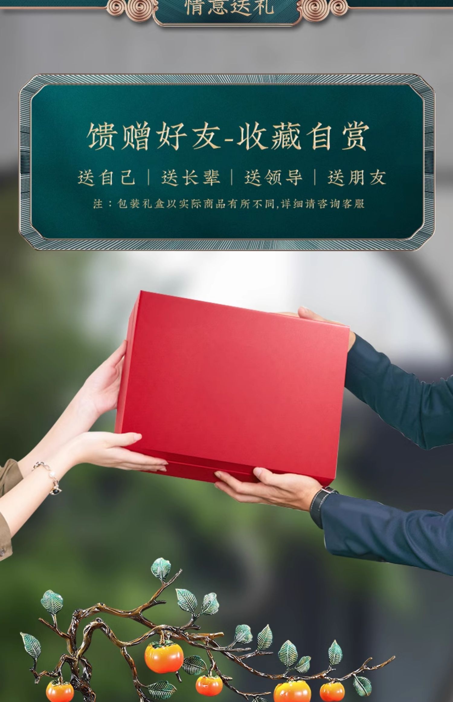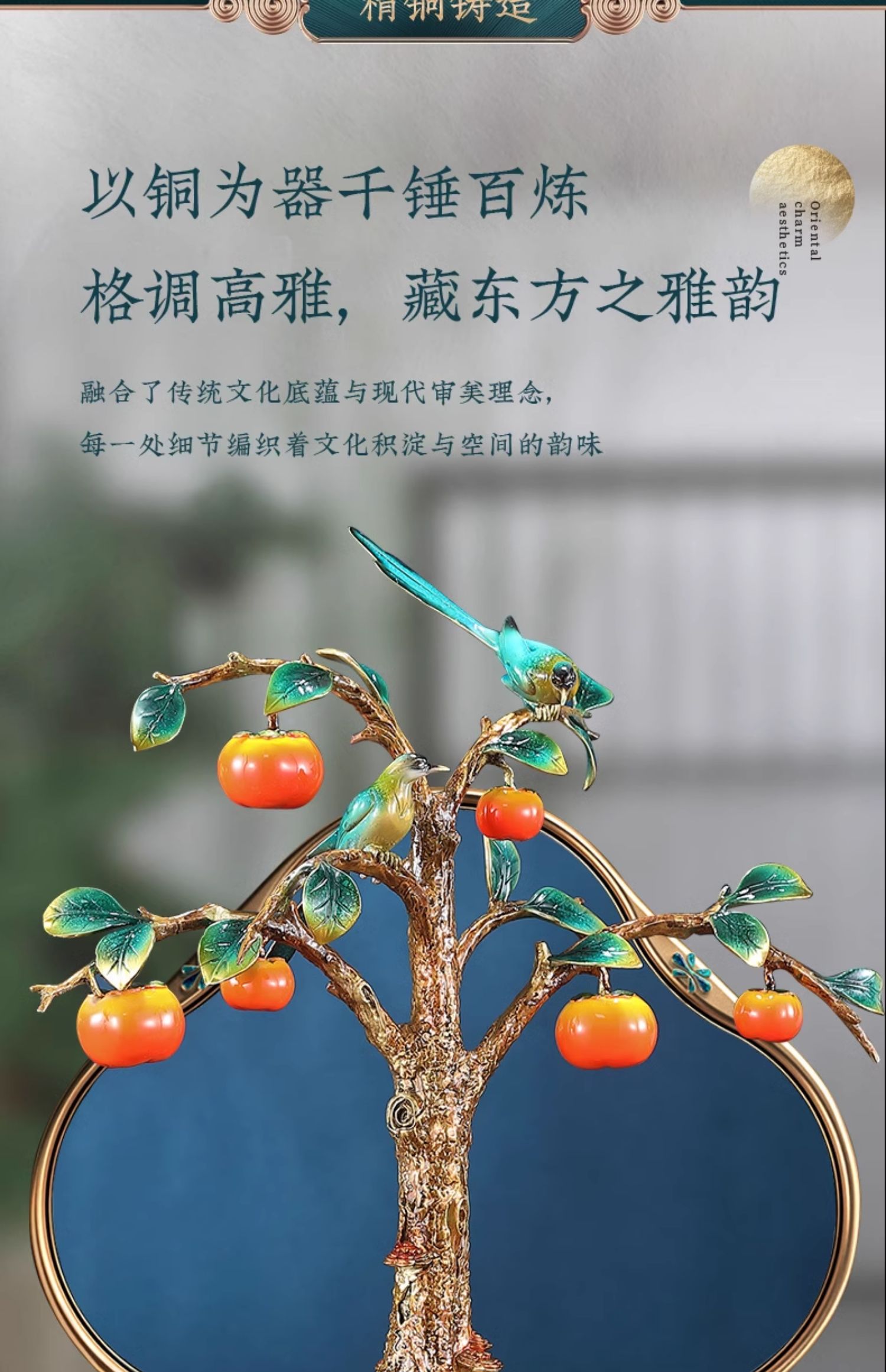 事事如意彩铜柿子摆件招财家居客厅玄关酒柜高端轻奢装饰乔迁礼品京铜柿业长青黄铜摆件