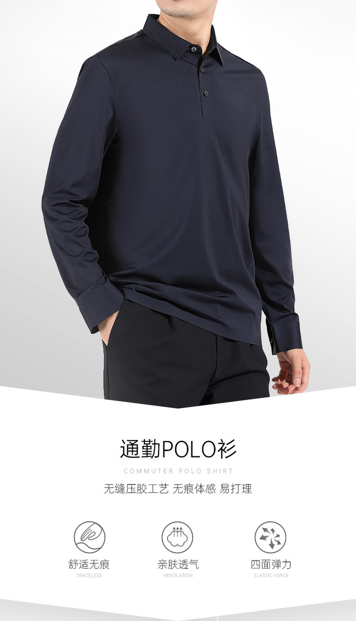 【无缝压胶高弹长袖polo衫】无痕打底衫 通勤长袖T恤