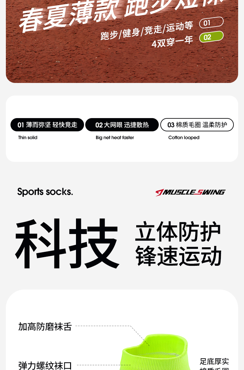 737肌动锋速跑步短袜春夏毛巾底运动袜男女专业马拉松袜低帮防滑袜子