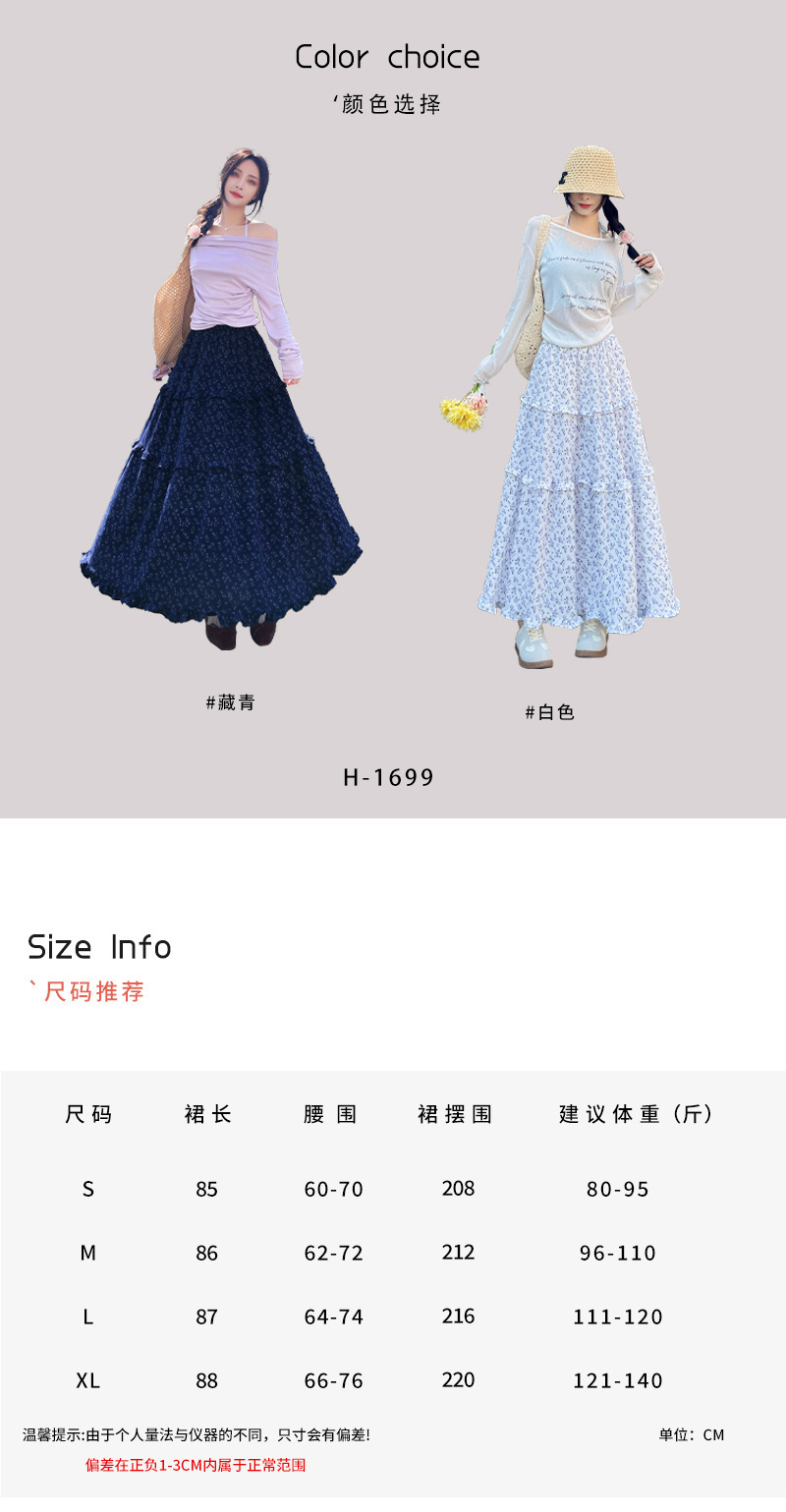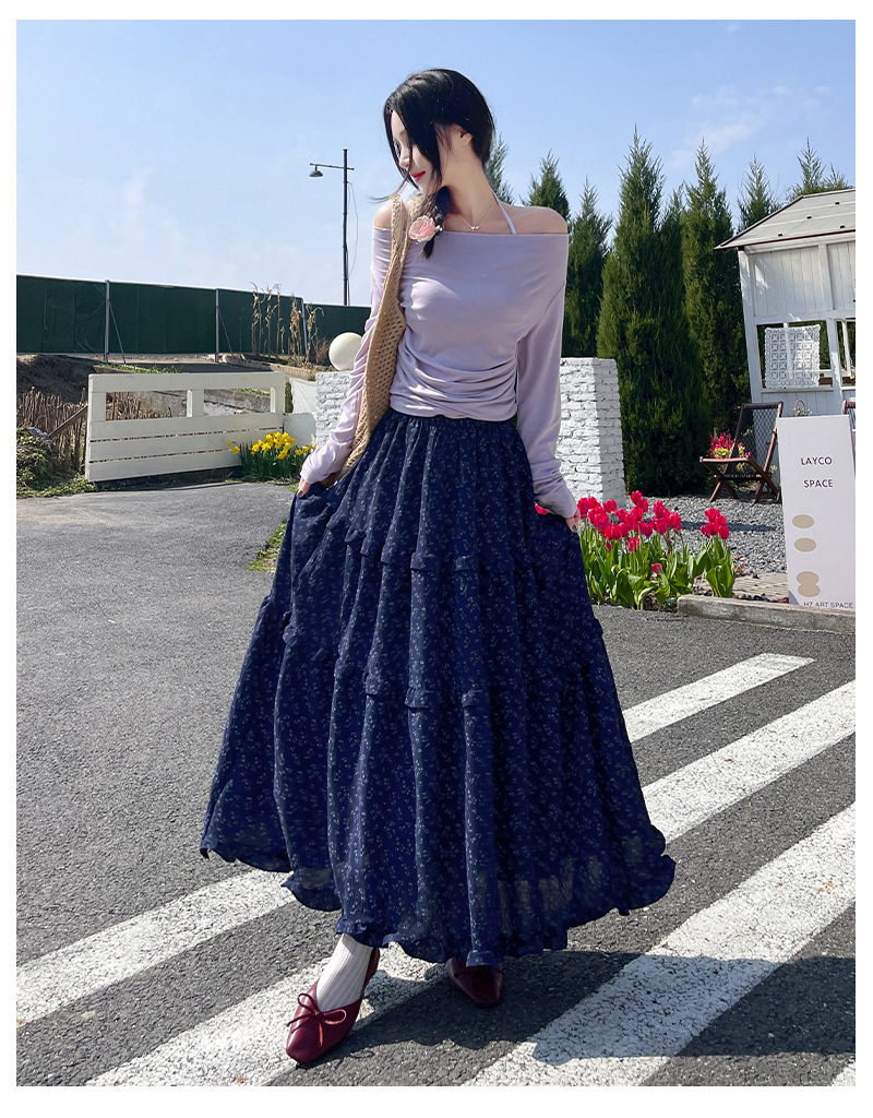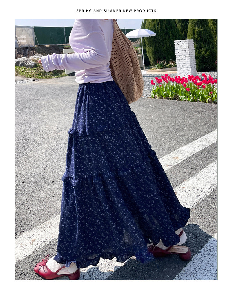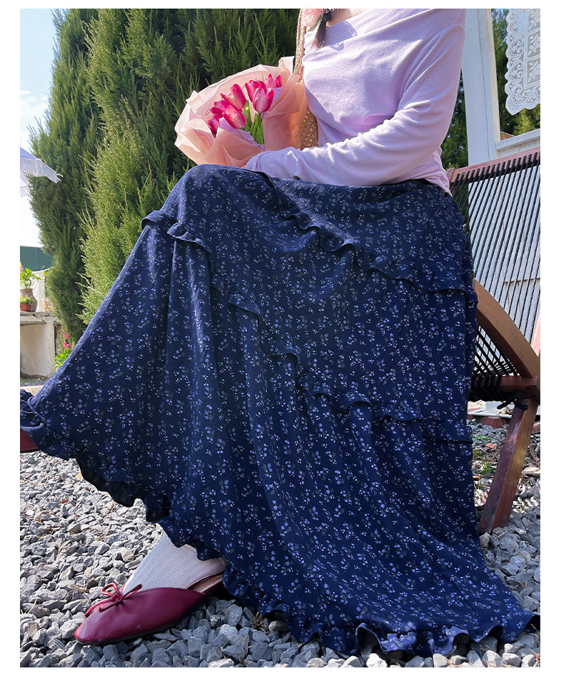 「气质款!碎花·蛋糕裙」半身裙女春秋冬新款韩式复古蓝色碎花闲慵懒风长裙子高腰a字裙