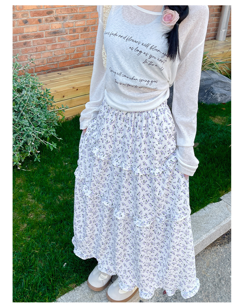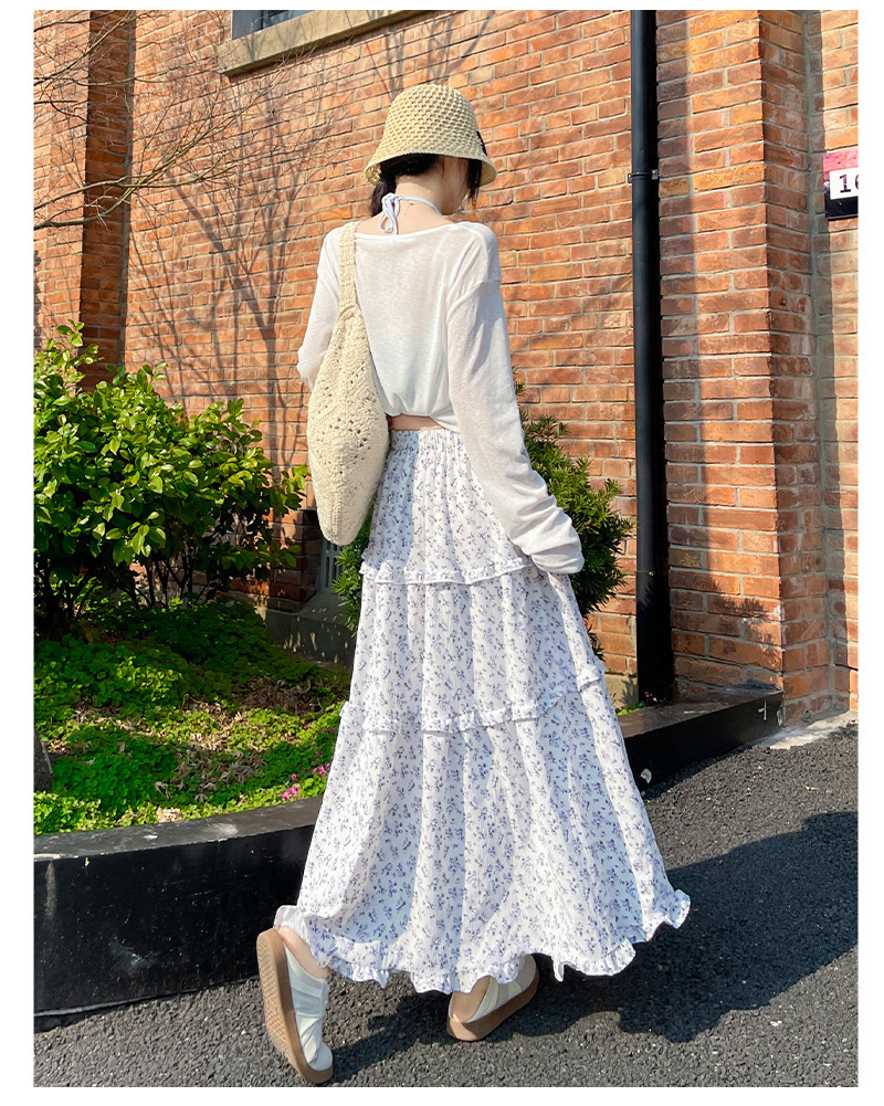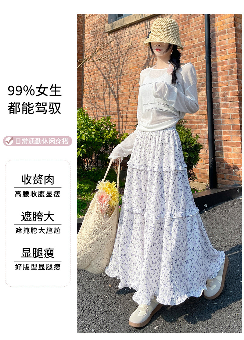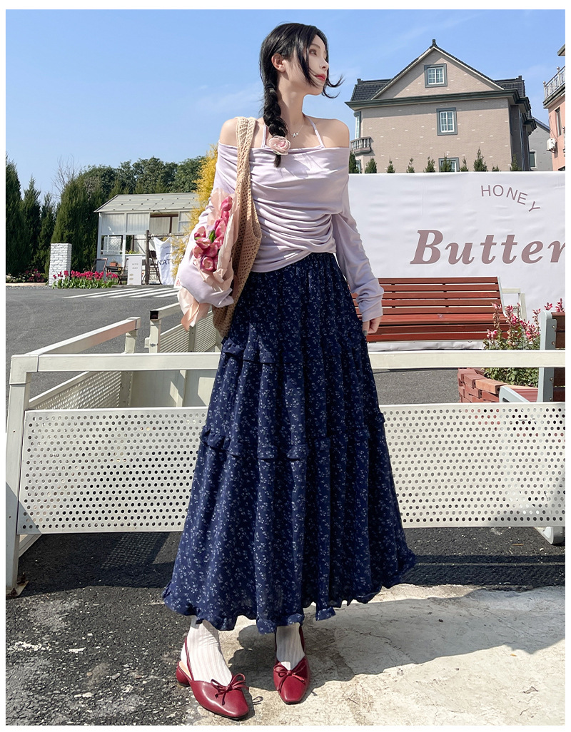 「气质款!碎花·蛋糕裙」半身裙女春秋冬新款韩式复古蓝色碎花闲慵懒风长裙子高腰a字裙