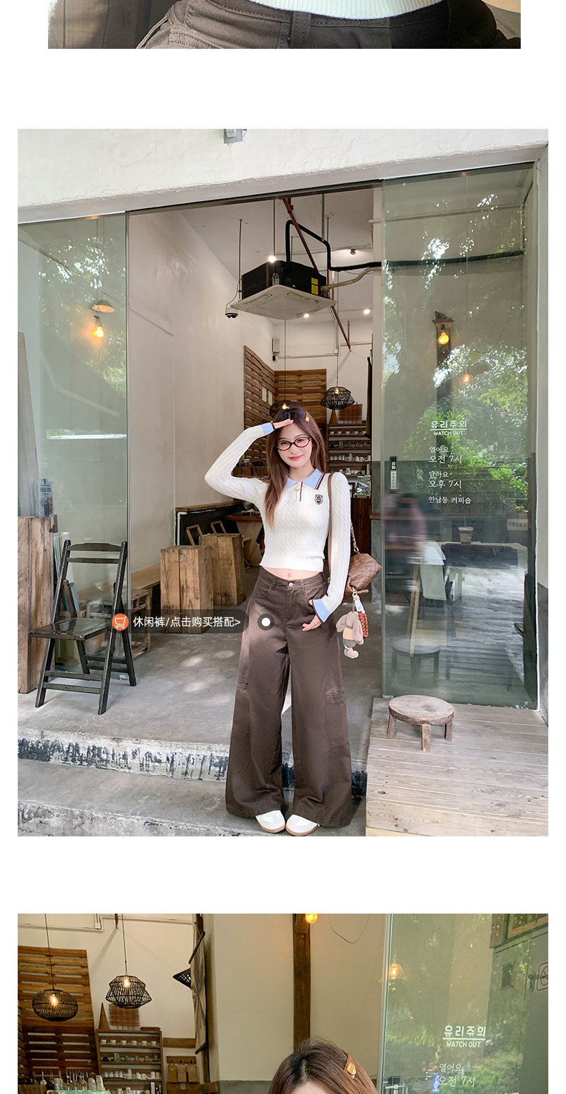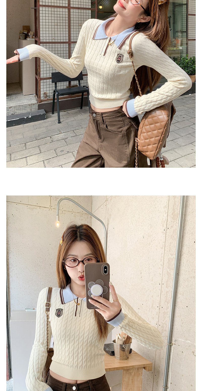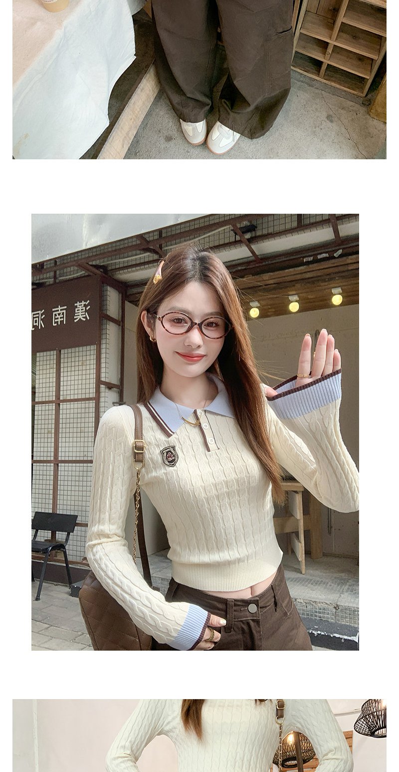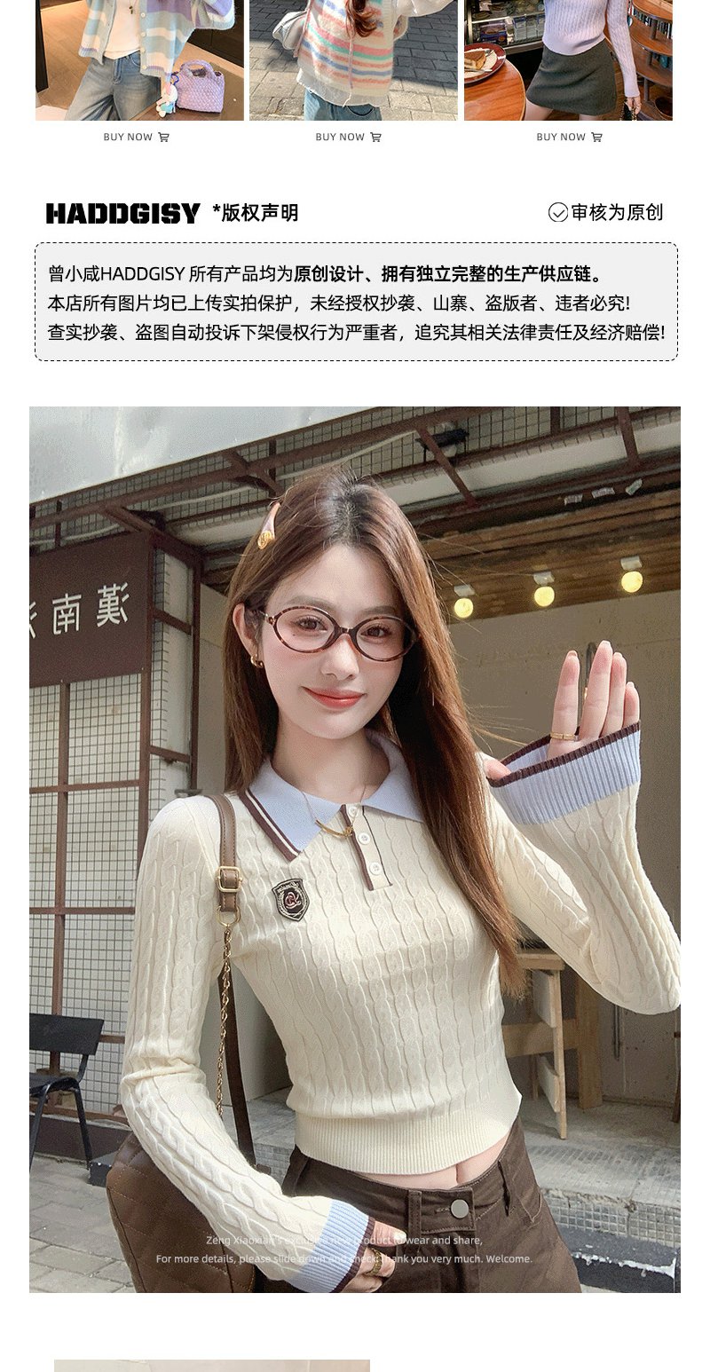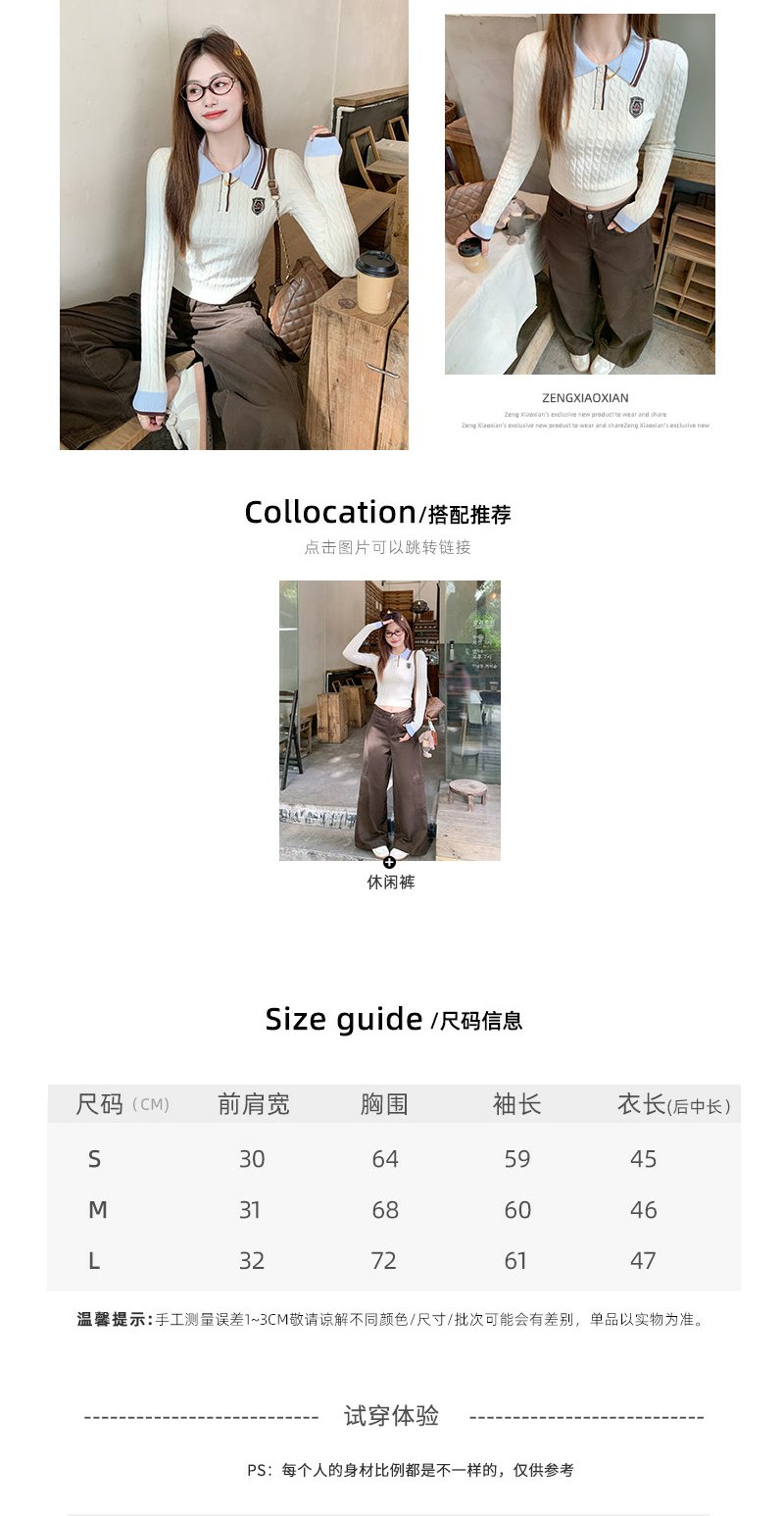 <曾小咸推荐>韩系米杏色polo领修身长袖t恤