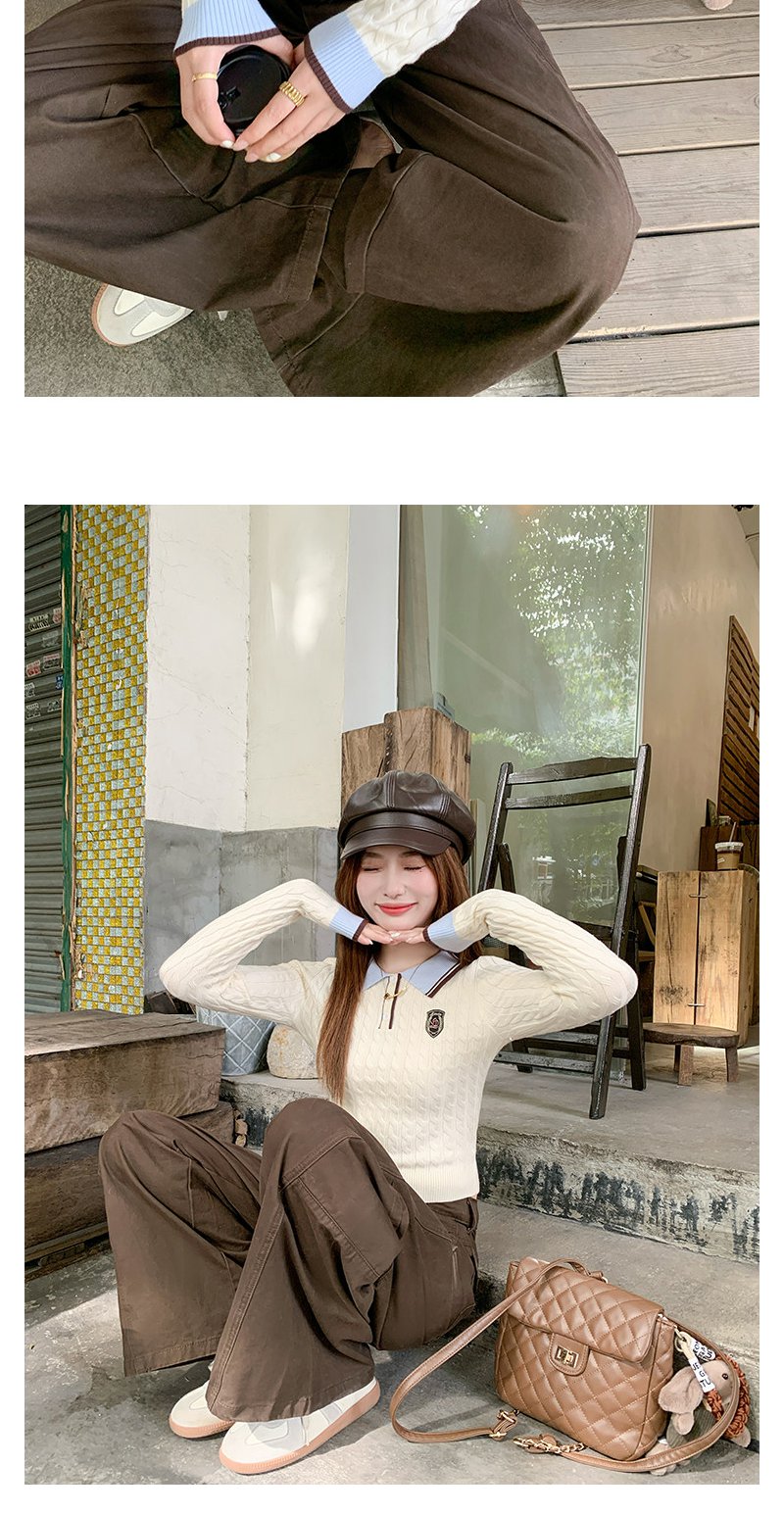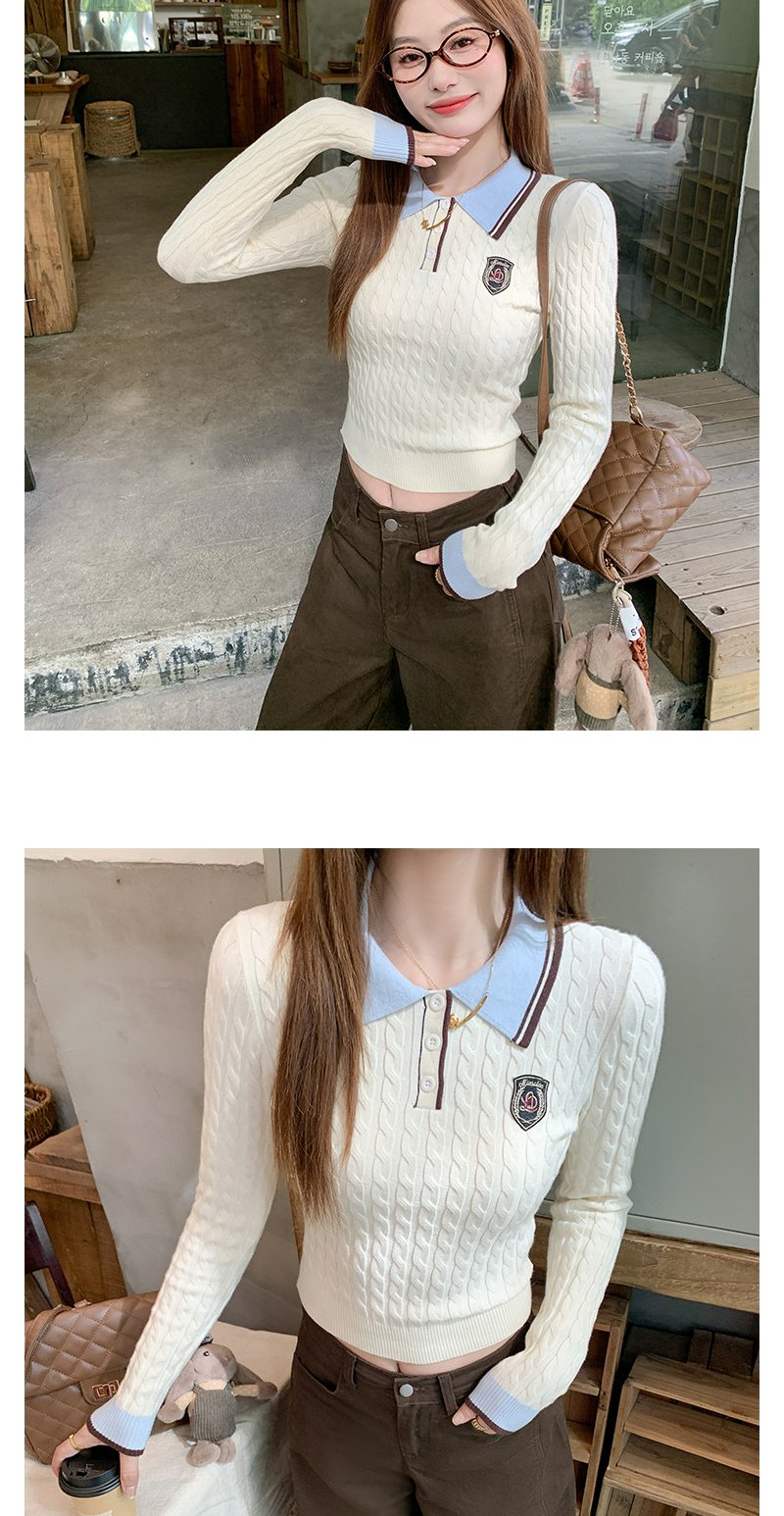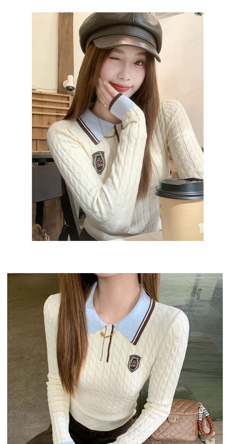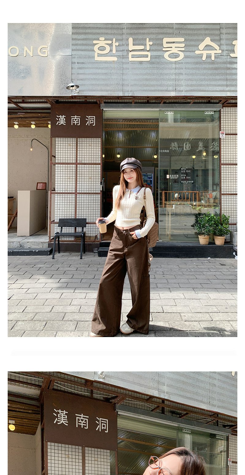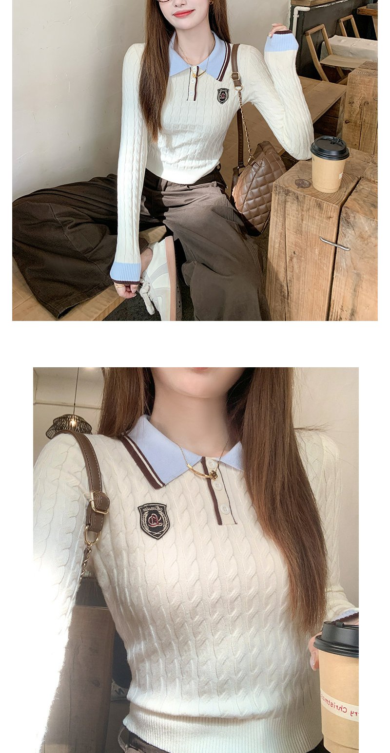 <曾小咸推荐>韩系米杏色polo领修身长袖t恤