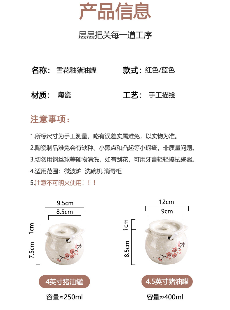 【雪花釉猪油罐】耐高温猪油罐陶瓷手绘釉下彩一件代发油泼辣子辣椒罐盐罐调味罐