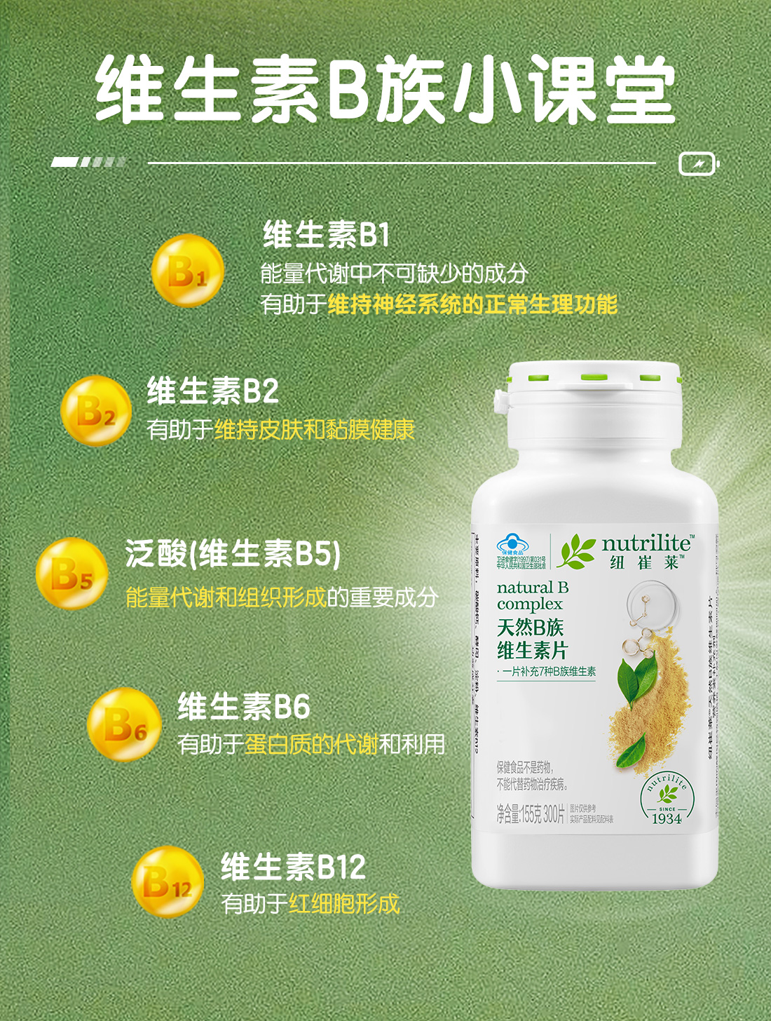 安利纽崔莱®天然B 族维生素片300片[7种B族维生素]