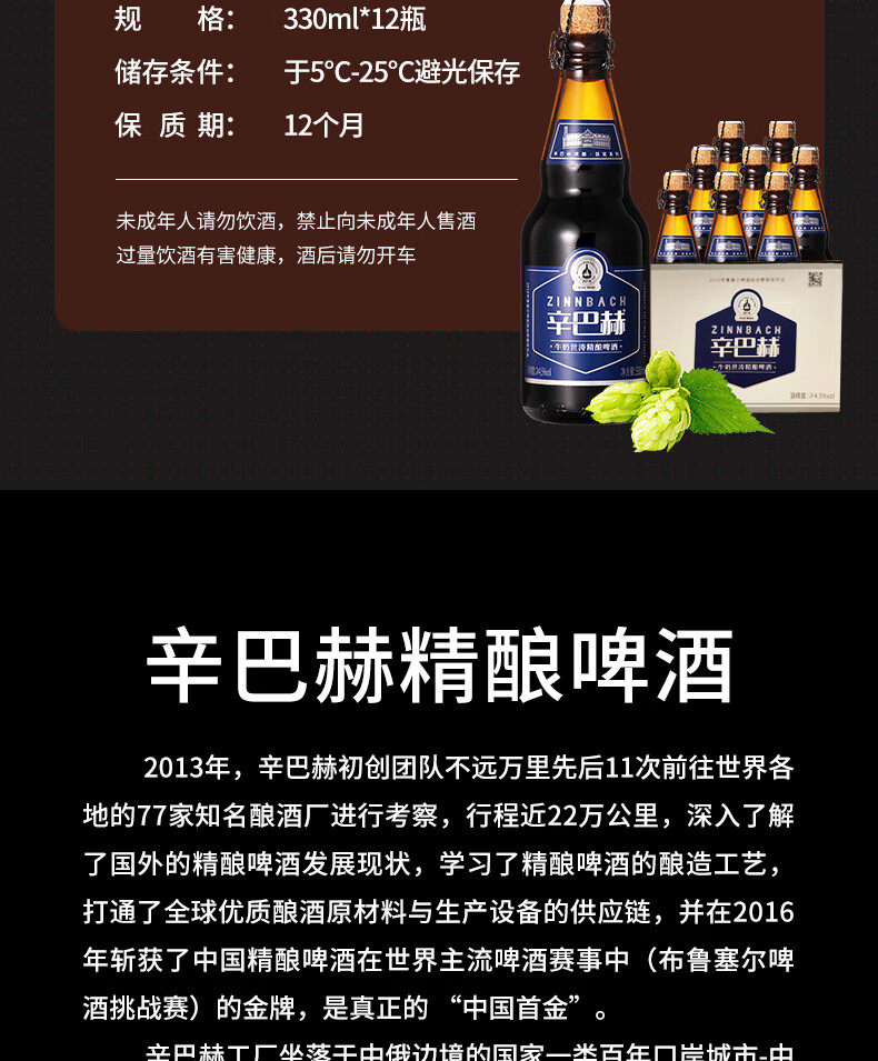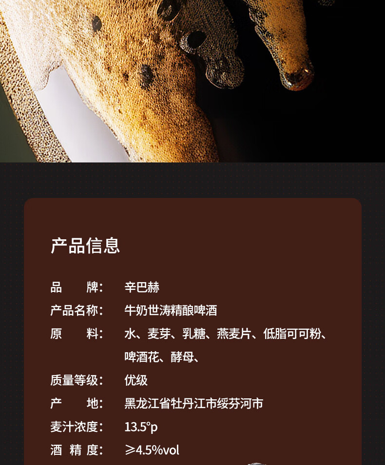 辛巴赫精酿【牛奶世涛】精酿啤酒巧克力咖啡风味啤酒酒精度4.5度整箱 【咖啡醇香】 330mL 12瓶 整箱装