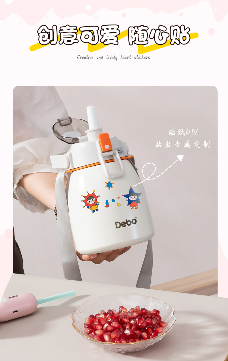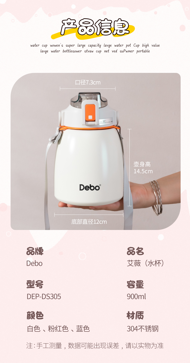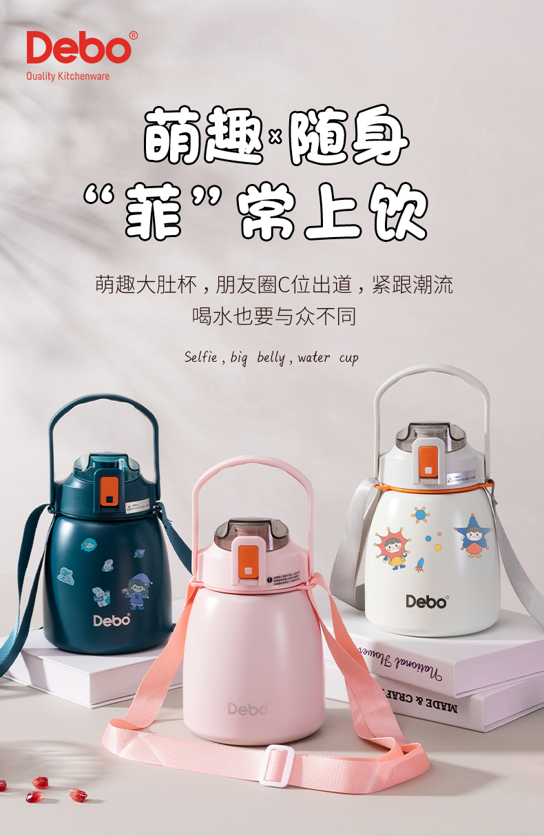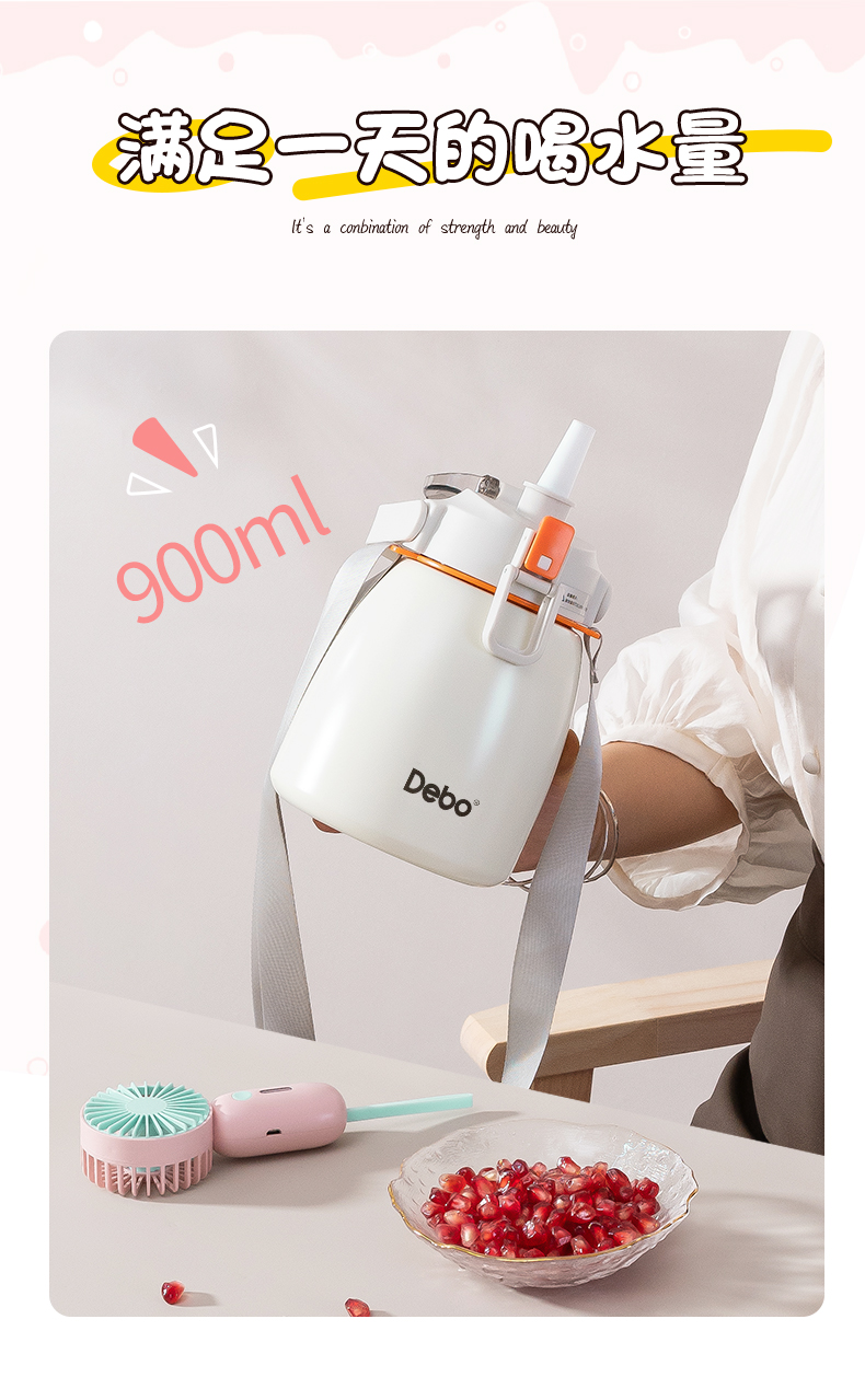 Debo德铂-艾薇水杯900ml 超大容量一杯能量加满 可提可背方便携带(赠贴纸)