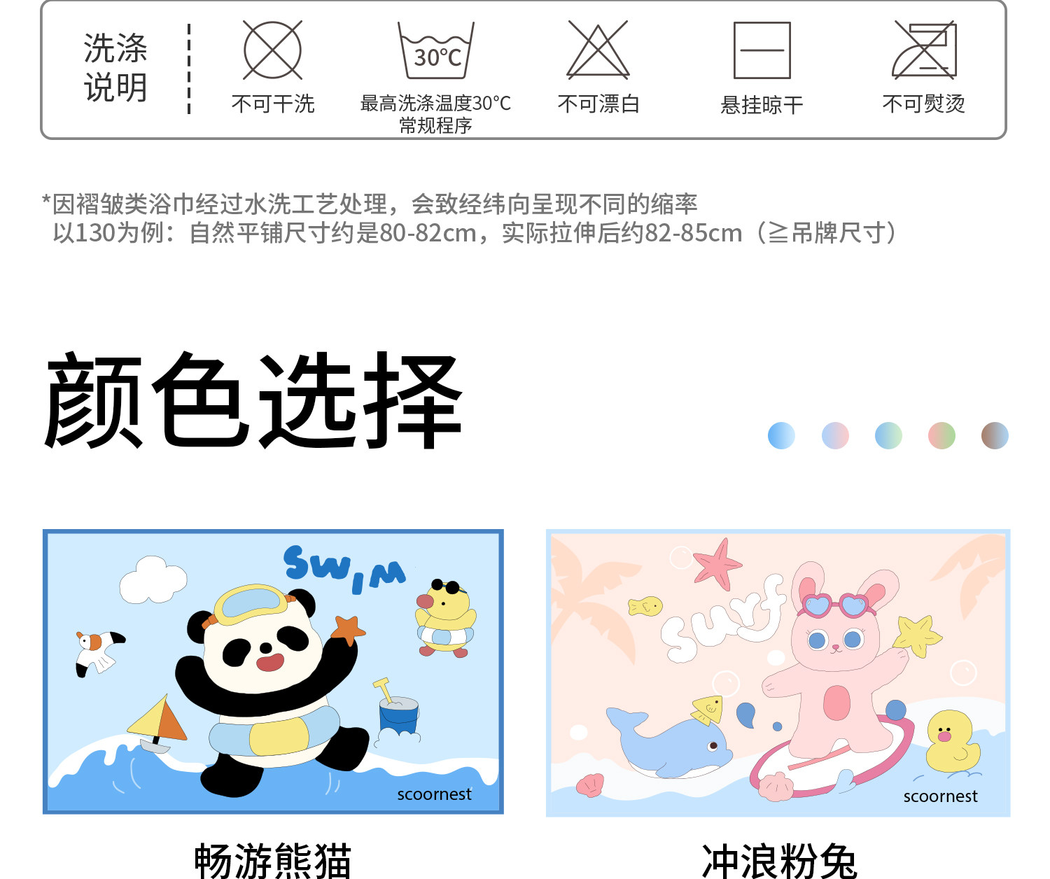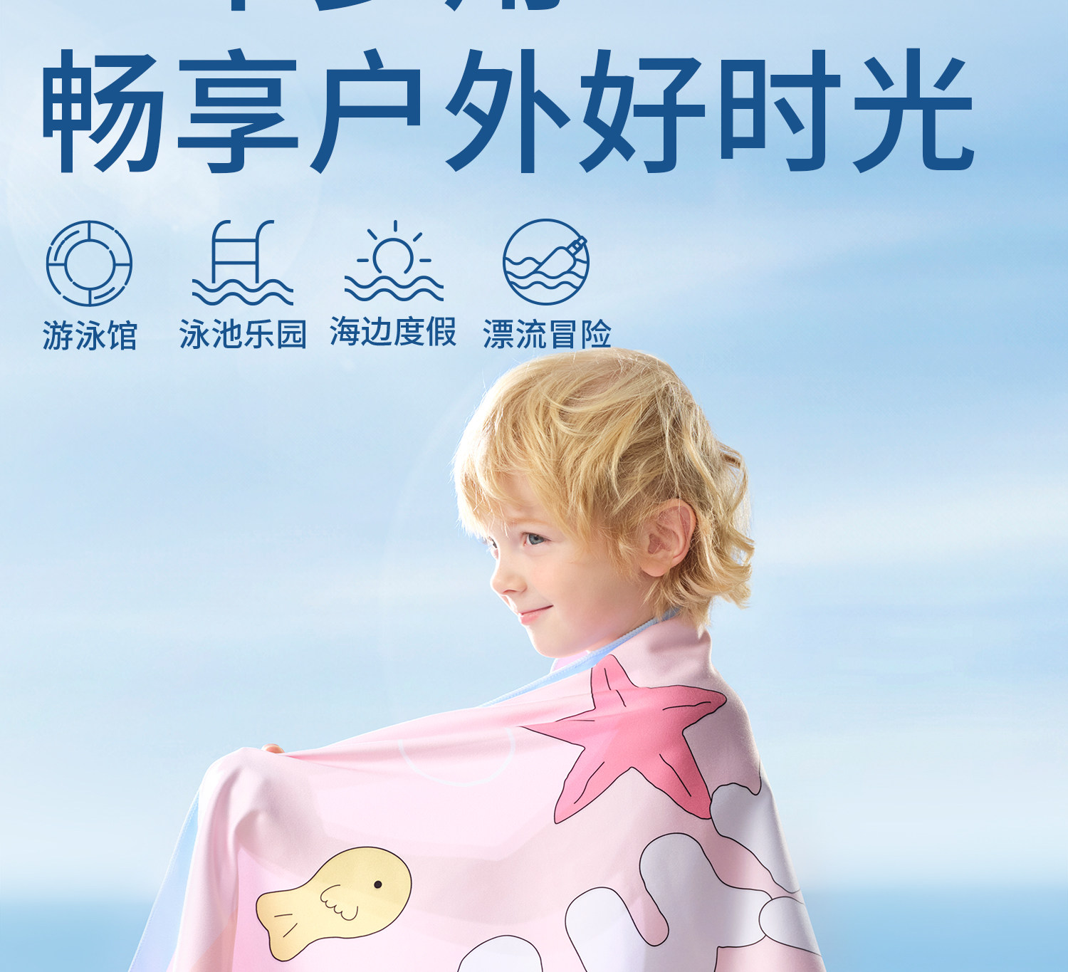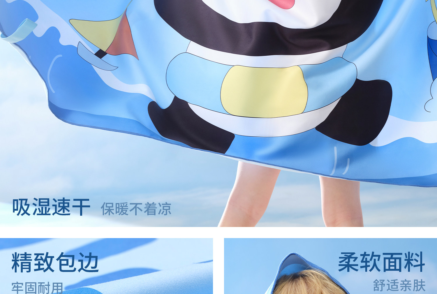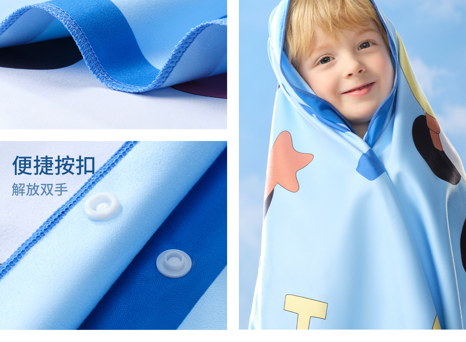 科巢儿童游泳速干浴巾女童斗篷男童吸水便携带扣运动毛巾温泉浴袍洗澡